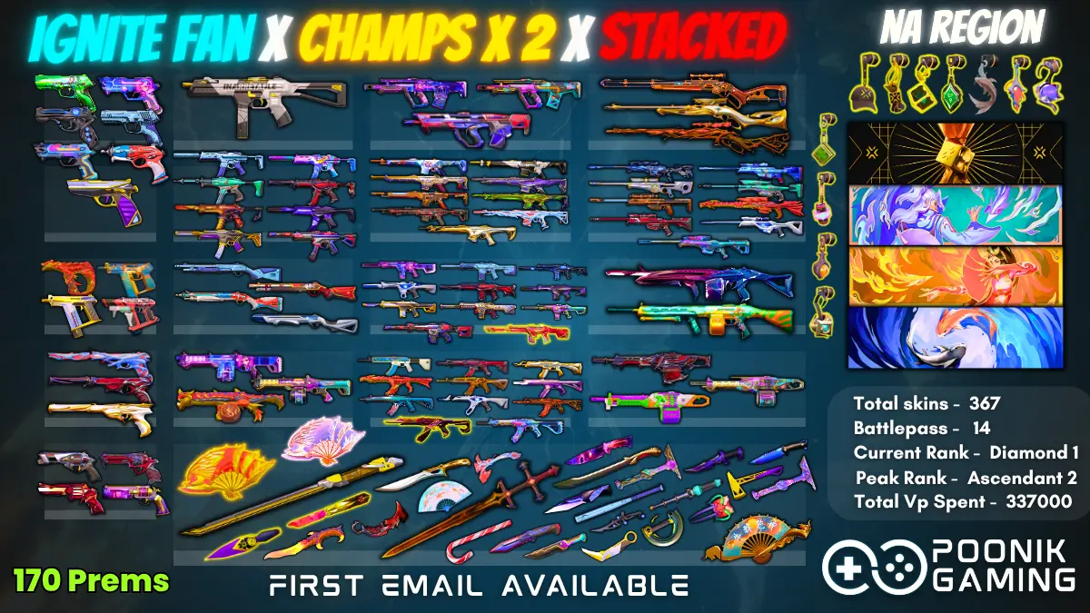 3550 US$ SPENT ⸱ NA REGION | WITH FIRST EMAIL | IGNITE FAN, CHAMPIONS 2022, 2023, 14 BATTPEASSES & MORE! [VNA133]