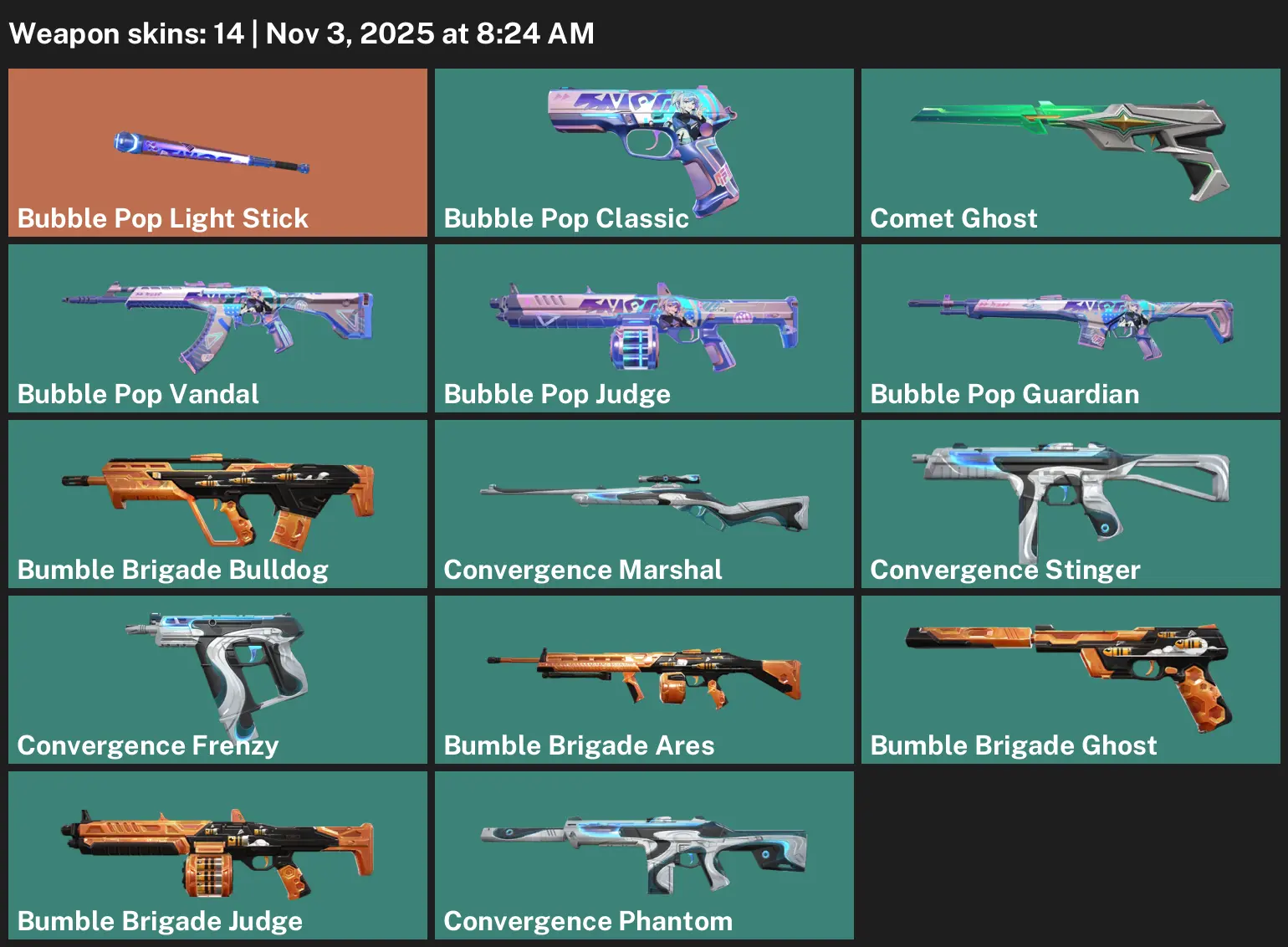 AP | 14 Skins | exp BRONZE 1 | Bubble Pop Light Stick | Bubble Pop Classic | Comet Ghost | Bubble Pop Vandal | Bubble Pop Judge | S4G