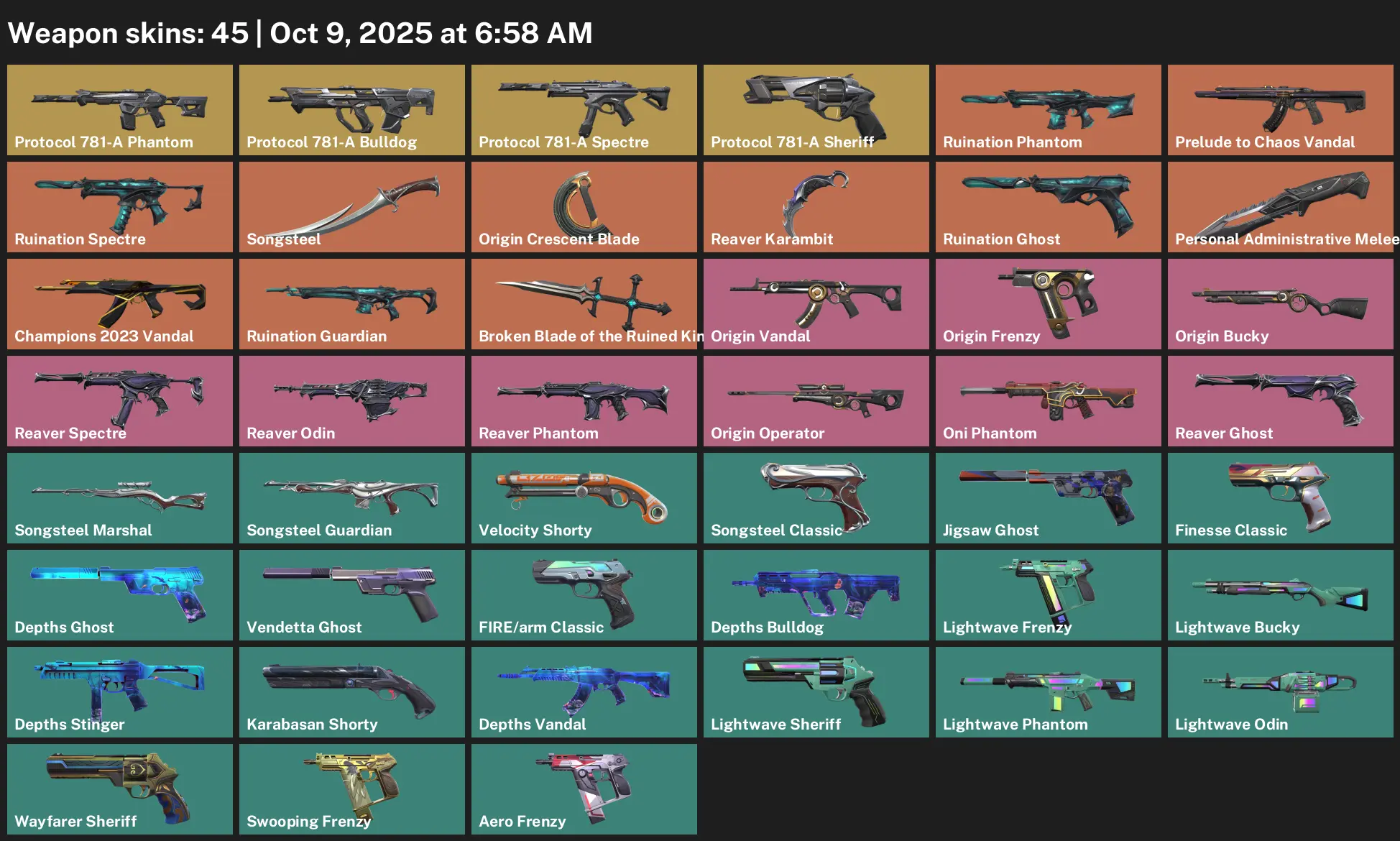 AP | 45 Skins | exp BRONZE 2 | Champions 2023 Vandal | Reaver Karambit | Origin Crescent Blade | Prelude to Chaos Vandal | Origin Vandal | S4G
