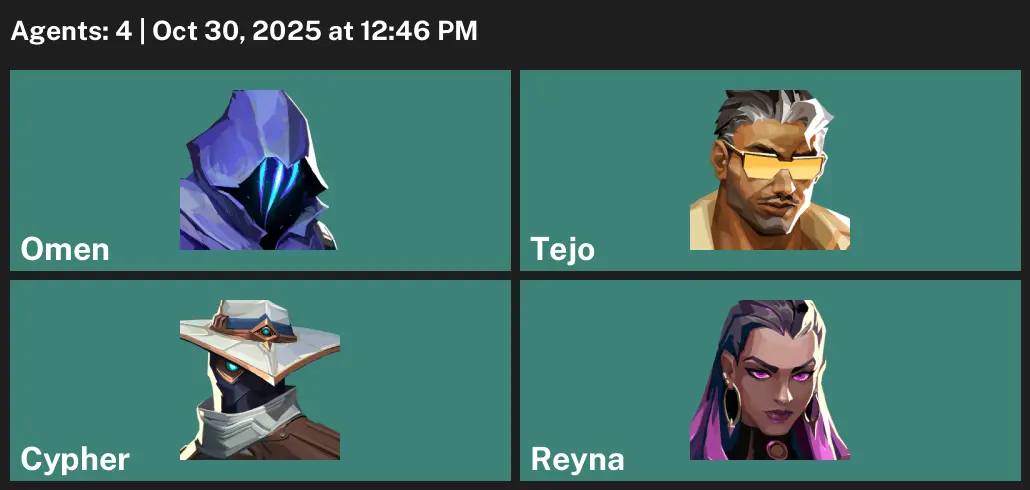 👘 AP 🐀 Bronze 3 🌅 1 Skins ⛹️ 100 VP 🫐 4 Agents 😖 Value: 1775 VP 🦙 Prime Guardian