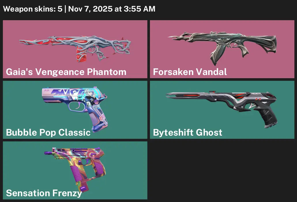 😶 AP 🛷 Unranked 👗 5 Skins 🛎 101 VP 🍻 21 Agents 💣 Value: 4425 VP 🏵 Gaia's Vengeance Phantom 🚏 Forsaken Vandal 🌸 Bubble Pop Classic 🥽 Byteshift Ghost 🫛 Sensation Frenzy