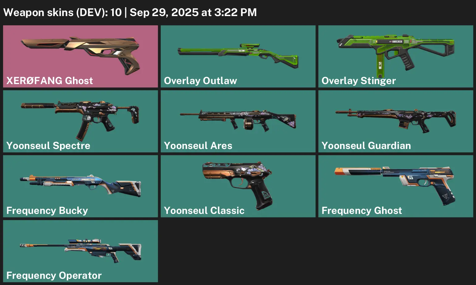 EU | 10 Skins | exp GOLD 1 | XERØFANG Ghost | Overlay Outlaw | Overlay Stinger | Yoonseul Spectre | Yoonseul Ares | #TFG6270 | #MBFN