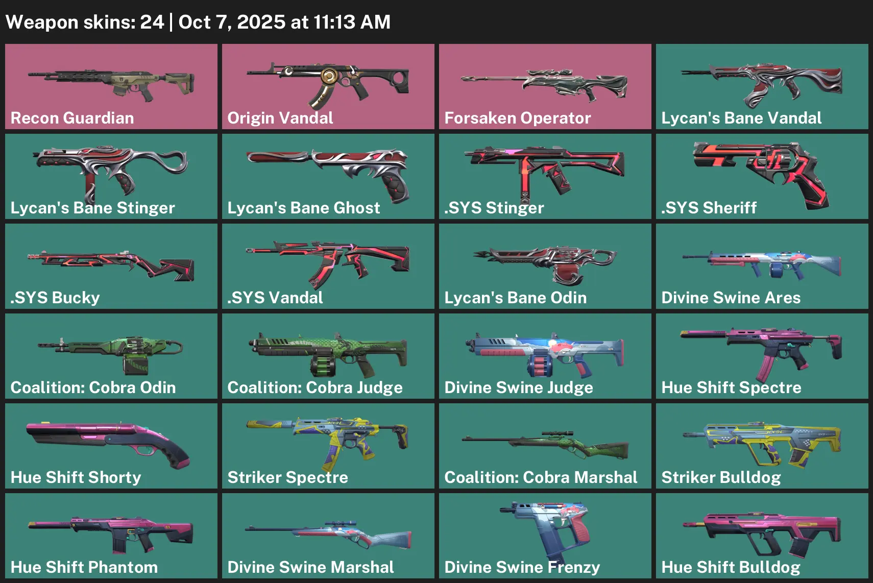 EU | 24 Skins | exp IRON 1 | Origin Vandal | Forsaken Operator | .SYS Vandal | Lycan's Bane Vandal | Divine Swine Frenzy | #IWJ0731 | #MBFN