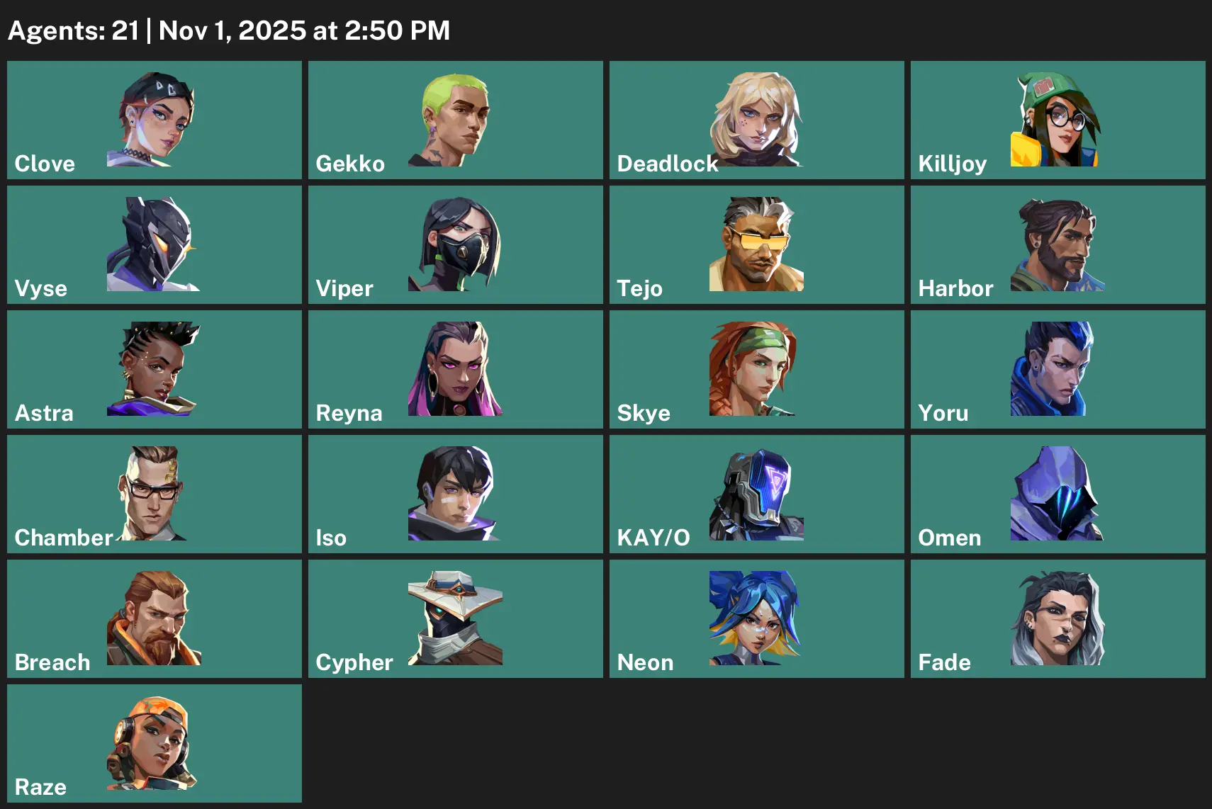 ๐ EU ๐ช Unranked ๐ฉ 40 Skins ๐ฅ 467 VP ๐ก 21 Agents ๐ฐ Value: 17375 VP ๐