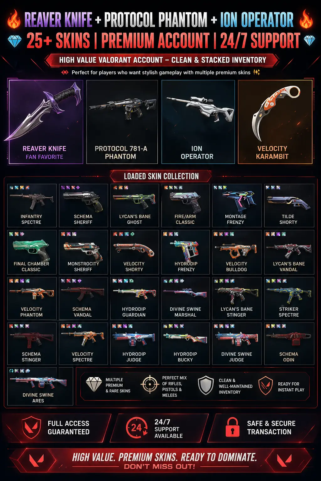 🔥 REAVER KNIFE + PROTOCOL PHANTOM + ION OPERATOR 💎 | 25+ SKINS | PREMIUM ACCOUNT | 24/7 SUPPORT 🔥