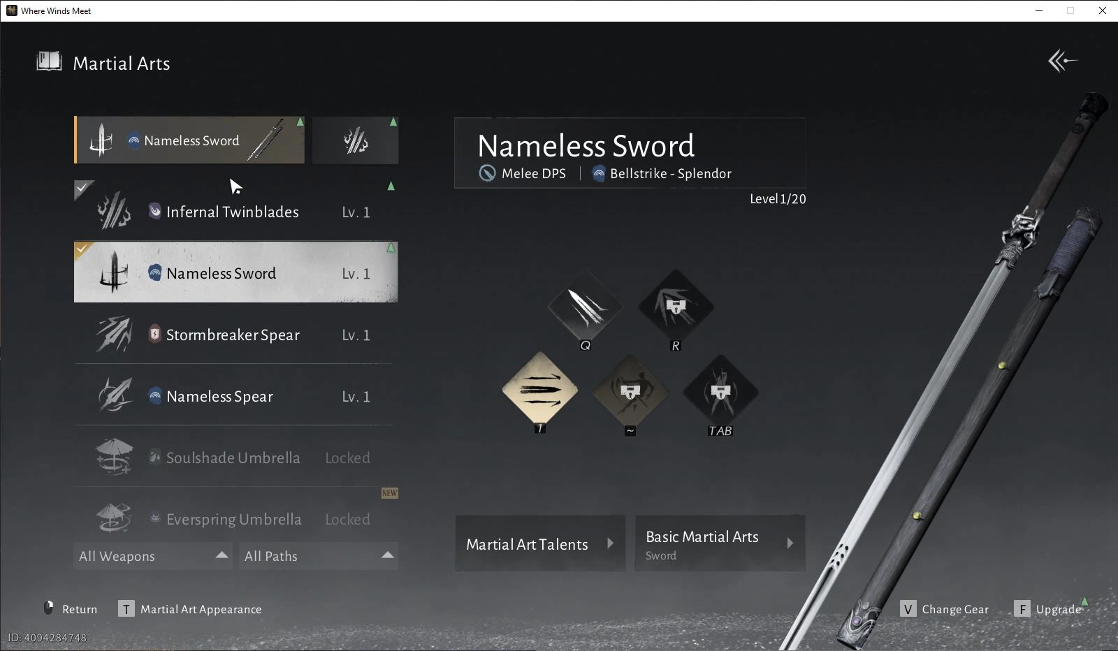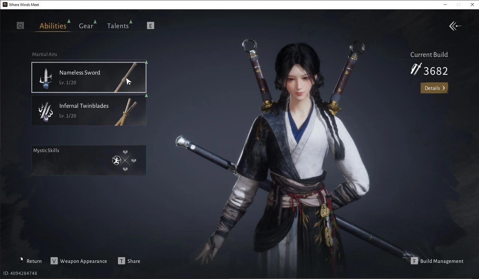 GLOBAL|Lv 6|Fresh Starter|GS 3682|1 Harmonic Core|Anthem of Ages|Nameless Sword+Infernal Twinblades|Female MC|Netease|(WWM983)