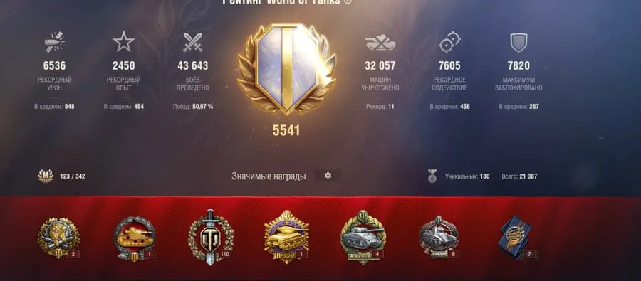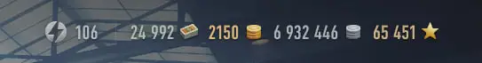WOT10 Server (WG) Account type With battles Battles 43000 Winrate % 51 Personal rating 1 WN8 1 11 Tier X Tanks Premium Tanks 6,900,000 Silver 2,200 Gold 24,900+ Bonds