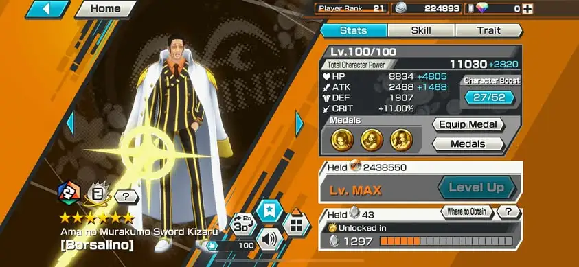 [3328][IOS+ANDROID] 2 EX MAX / Kizaru + Yamato Blue, Support 138%, Good Medal