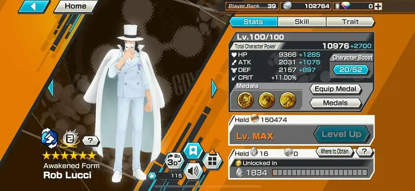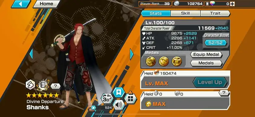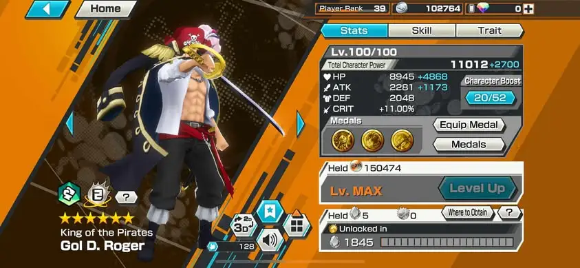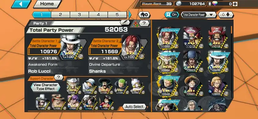 [3342][IOS+ANDROID] 6 EX MAX / HB 18 / Shanks Light + Kuzan + Lucci + Roger Dark + Roger Green + Whitebeard , Support 161% , Good Medal