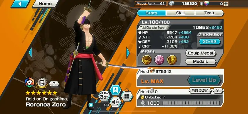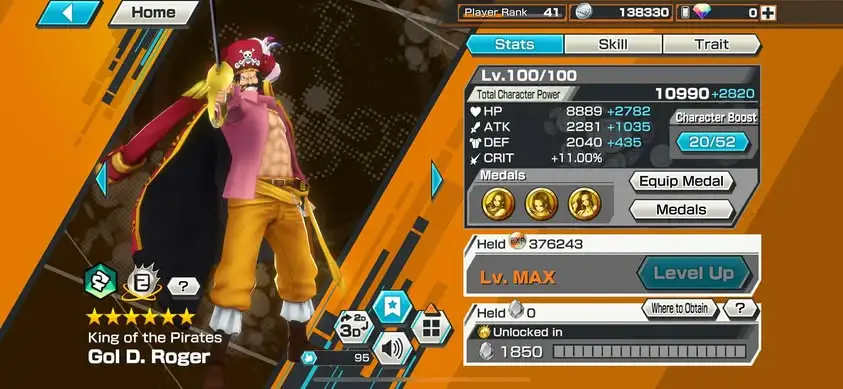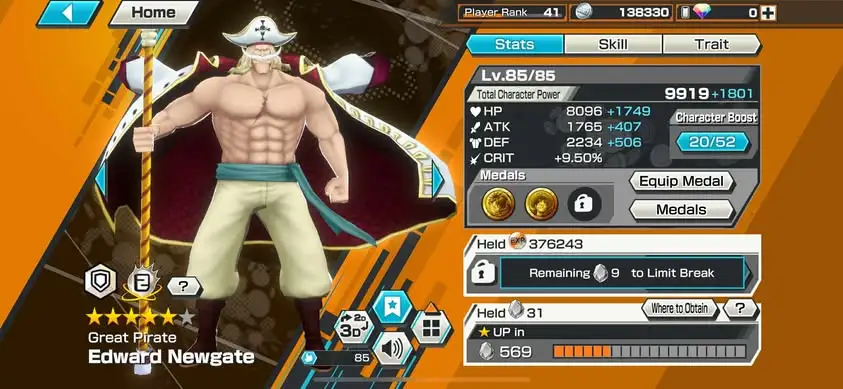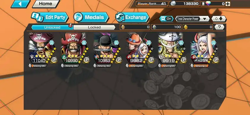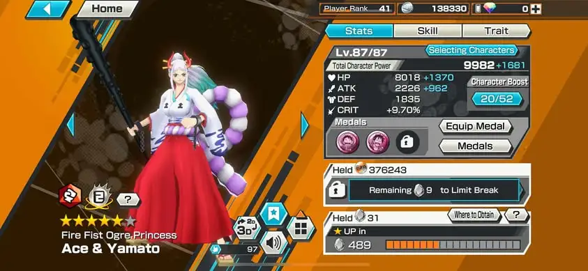 [3391][IOS+ANDROID] 6 EX / 3 MAX / Ace Yamato + 2 rogers + Whitebeard + Red Yamato + Zoro , Support 145% , Good Medal