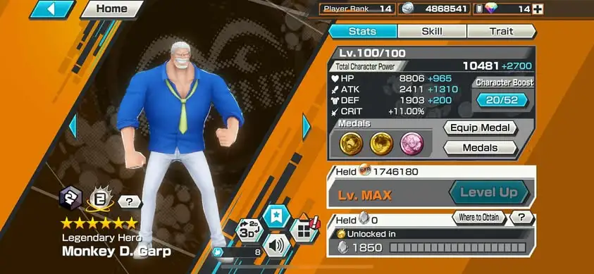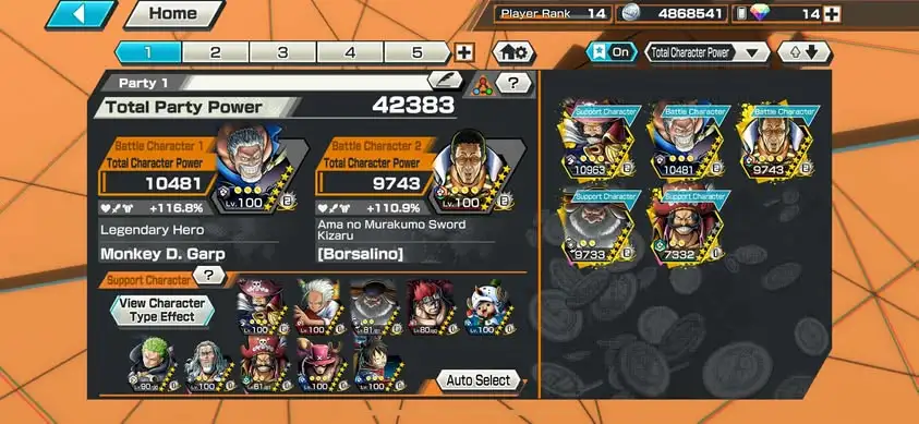 [3398][IOS+ANDROID] 5 EX META / CAN UP MAX 5 / Roger Dark + Garp + Kizaru + Saturn + Roger Green , Support 116% , Good Medal , Solo Fresh