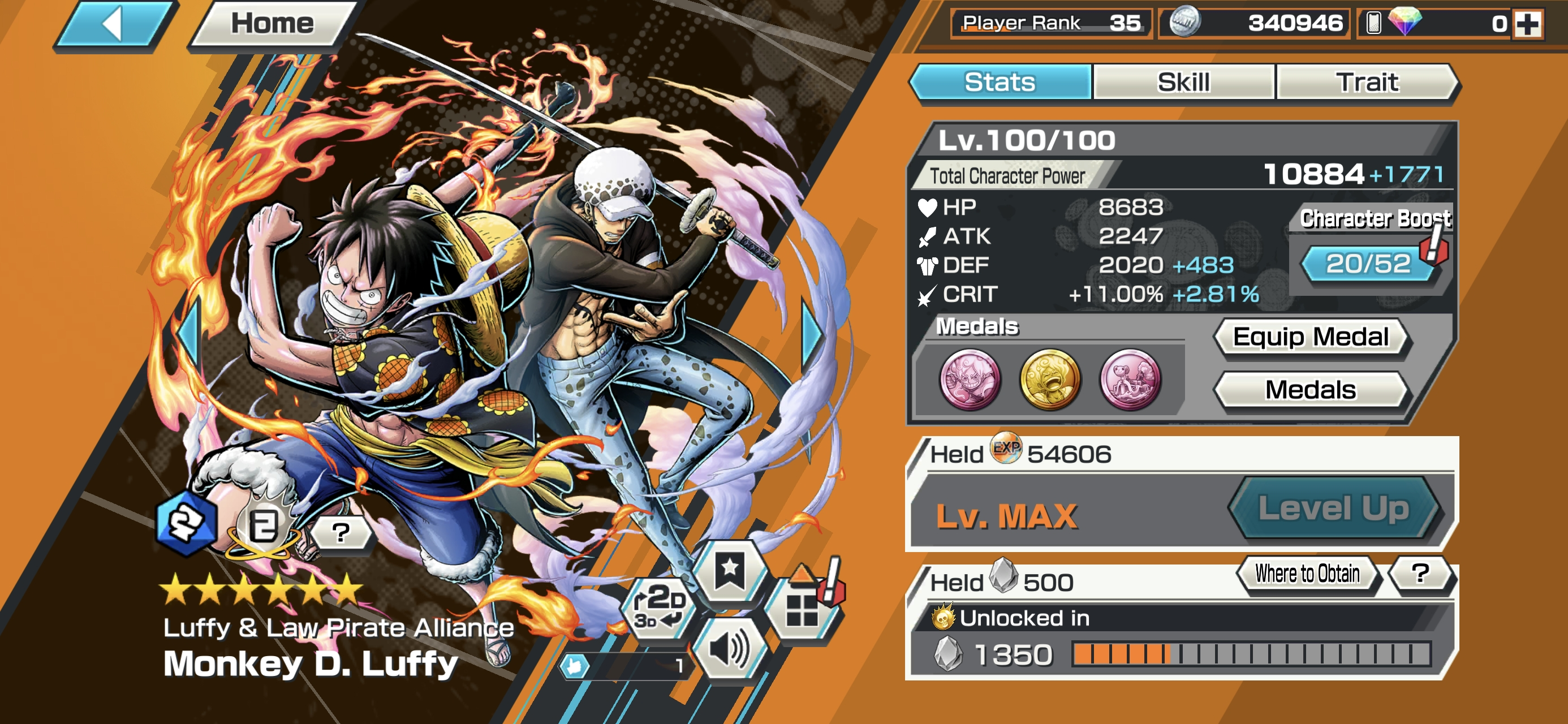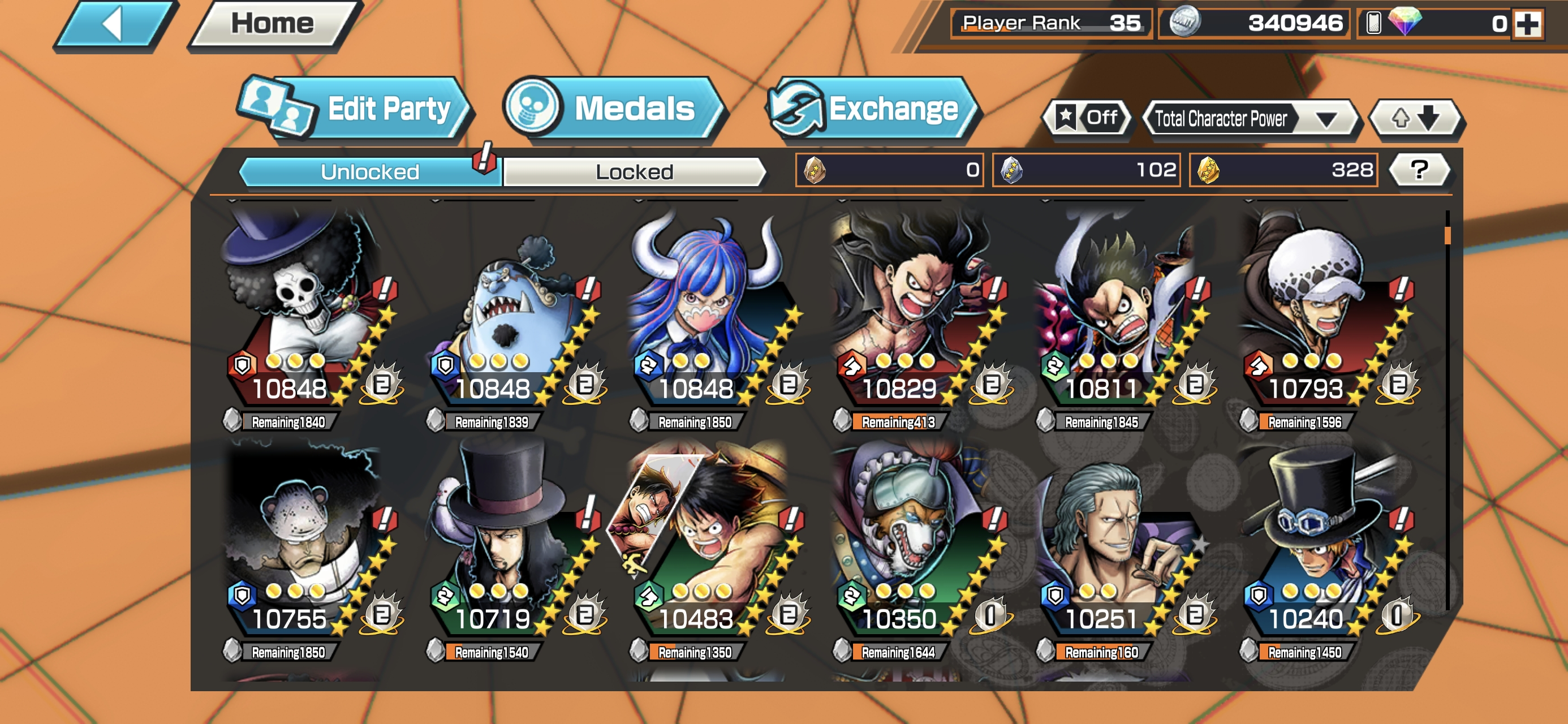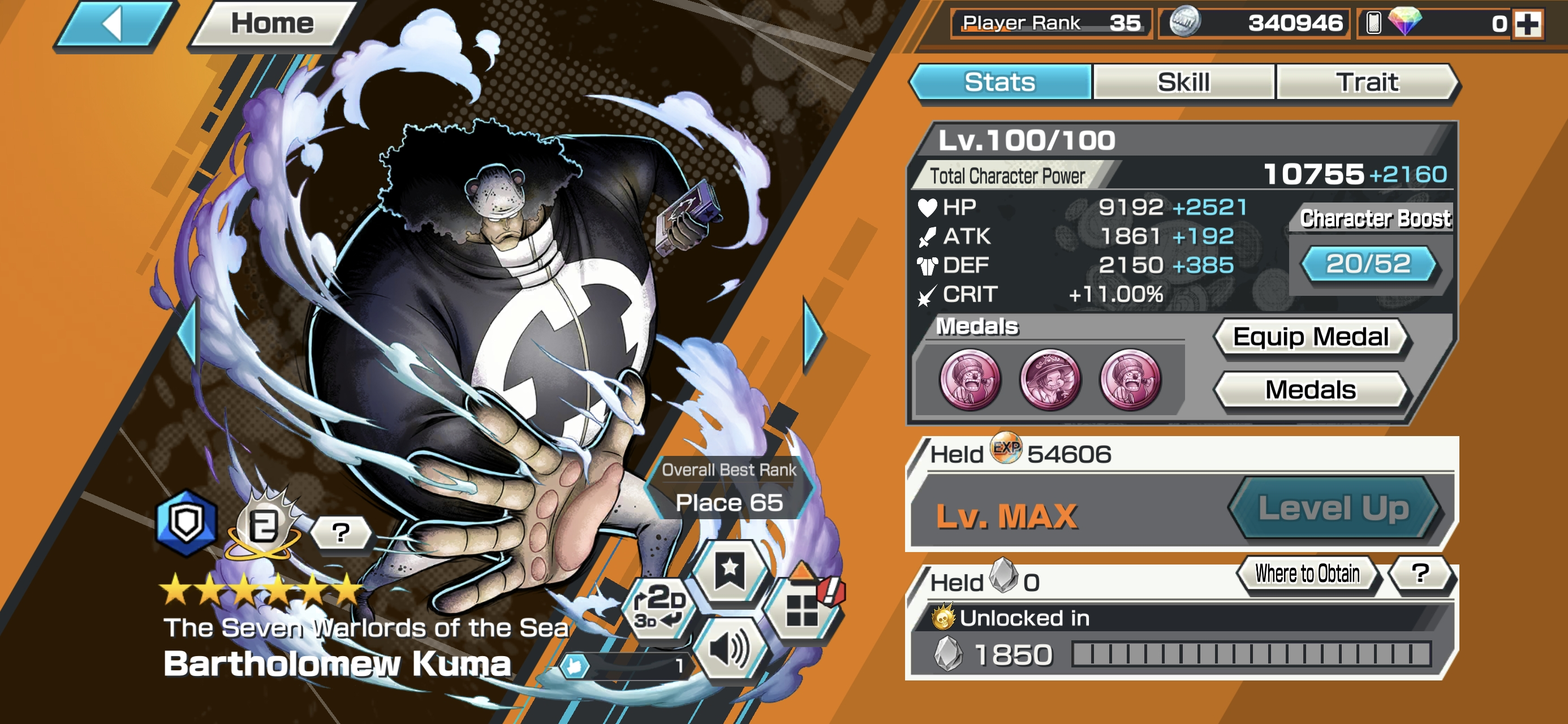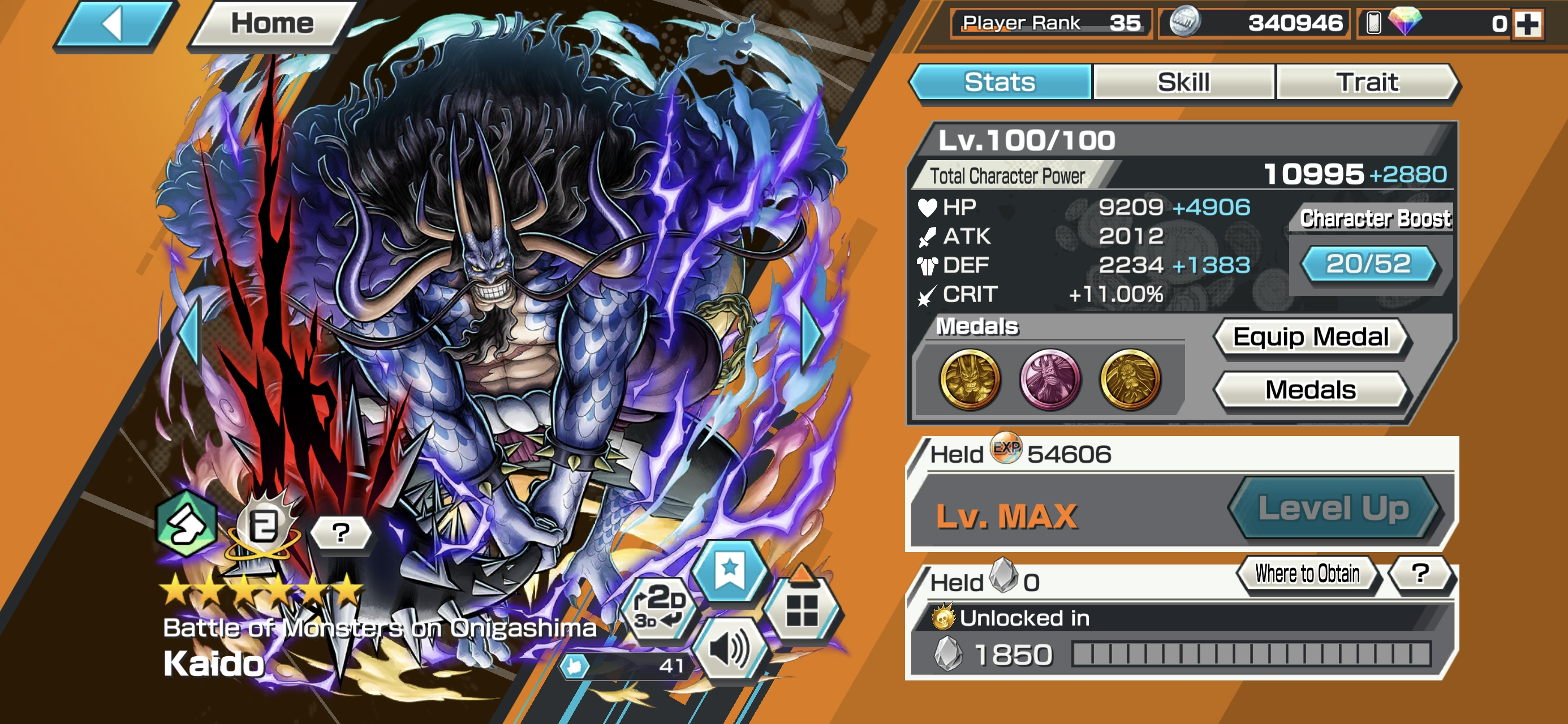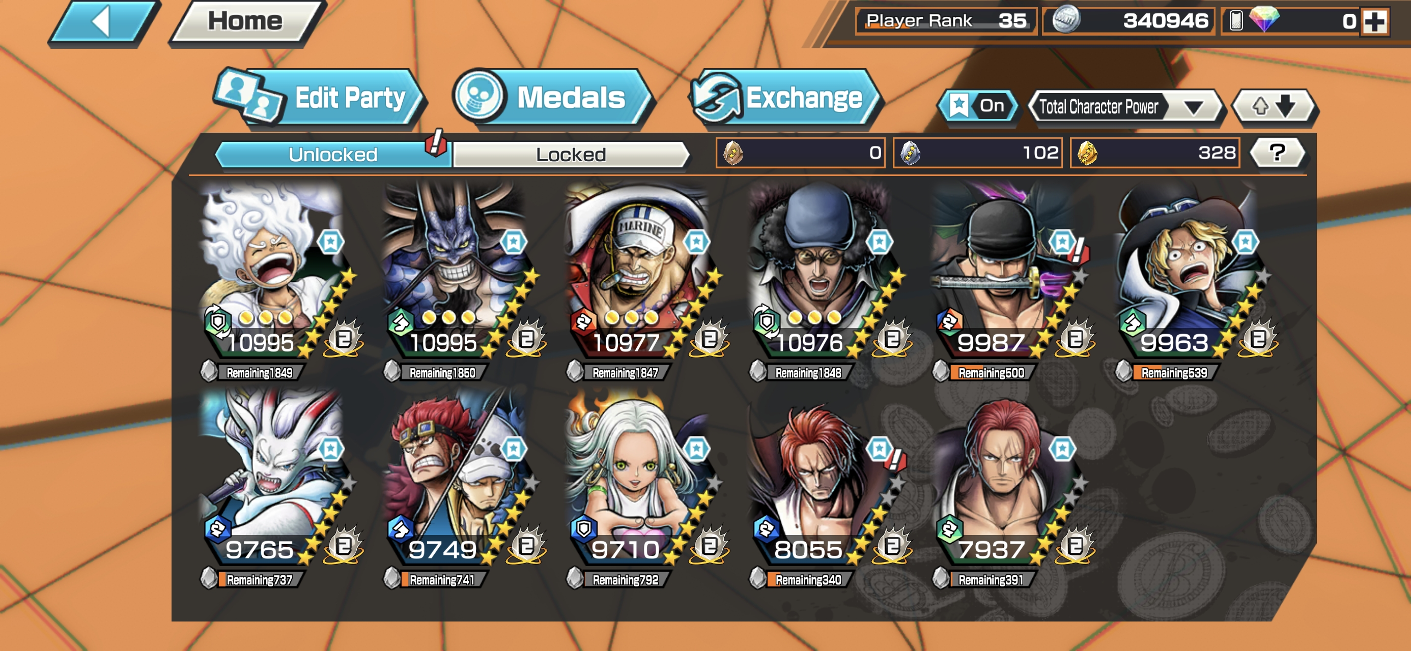 HB 12 ⸱ 11 Ex Meta 4 Max ⸱ Gear 5 Luffy Max ⸱ Kaido Max ⸱ Akainu Max- Kuzan Max ⸱ Zoro ⸱ Sabo ⸱ Yamato ⸱ Kidlaw ⸱ Ssnake ⸱ Shanks V1 V2 ⸱ Support 137 ⸱ Good Medal ⸱ Gems ⸱ Many Medal Material ⸱ B458