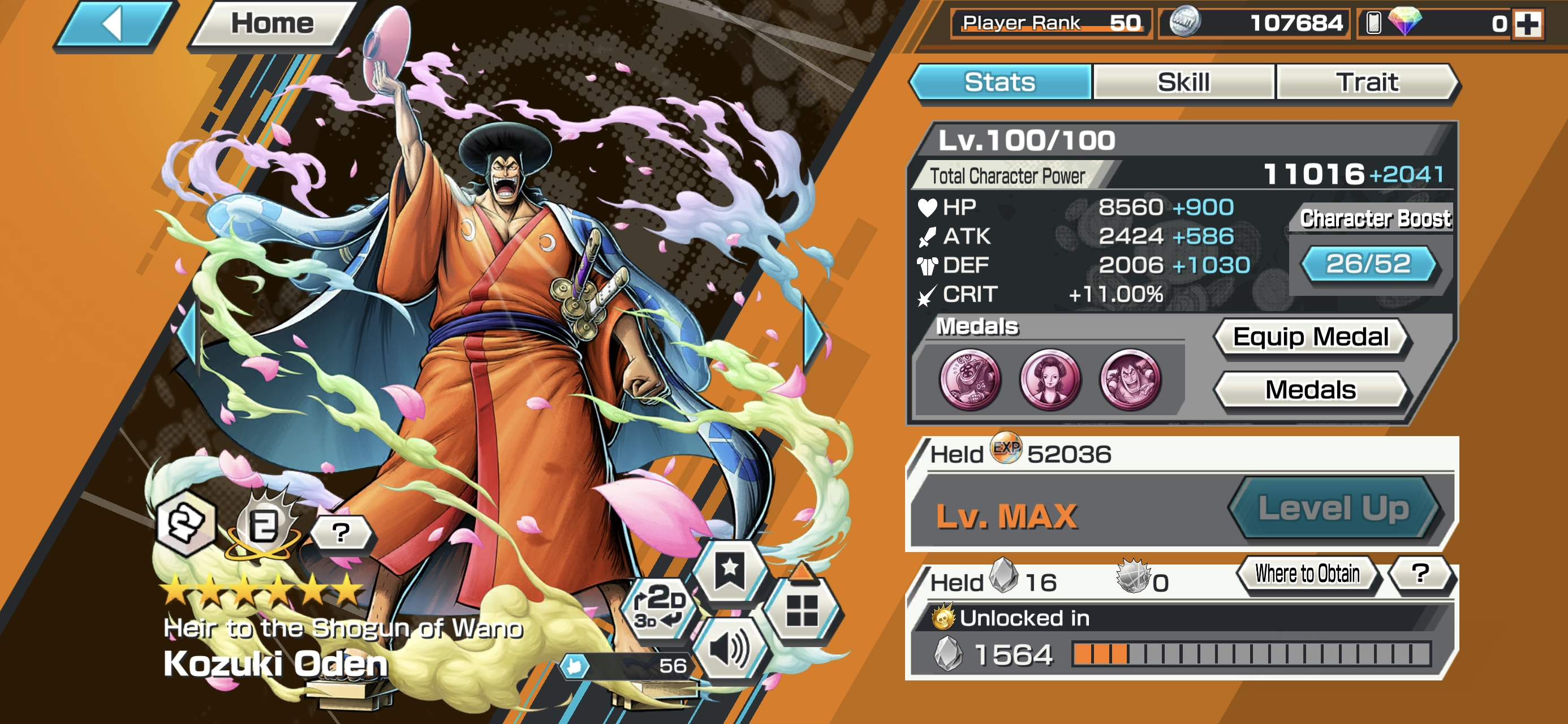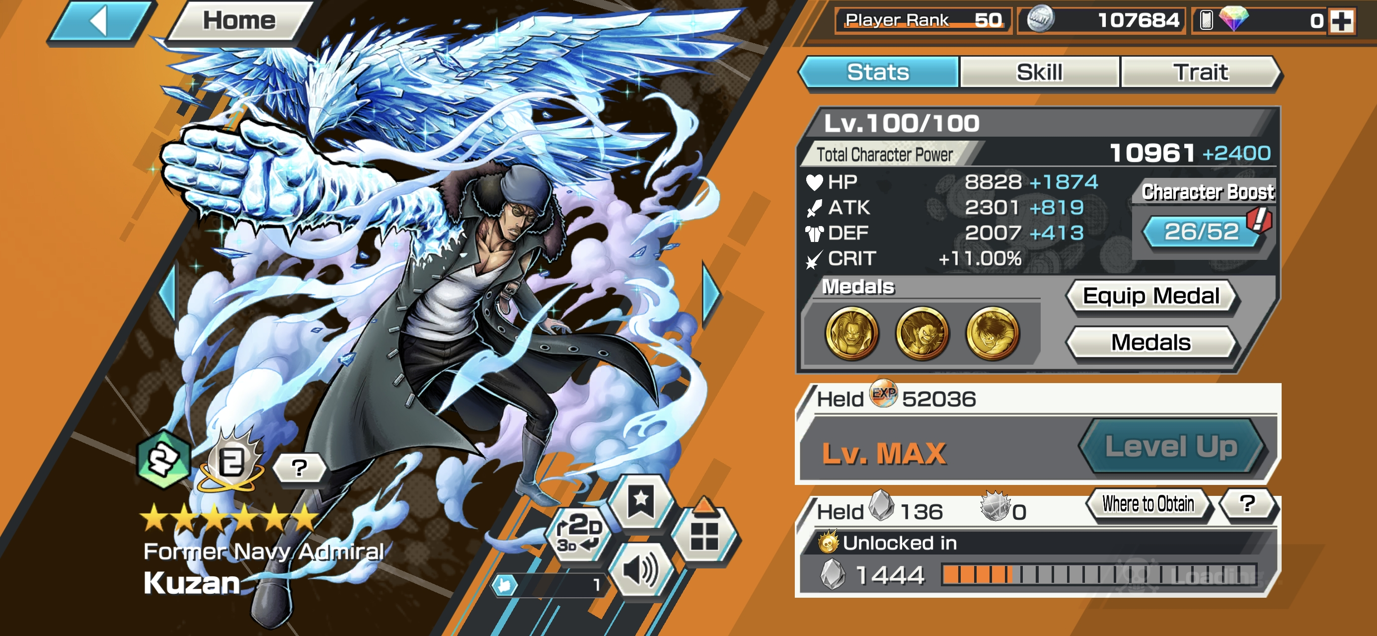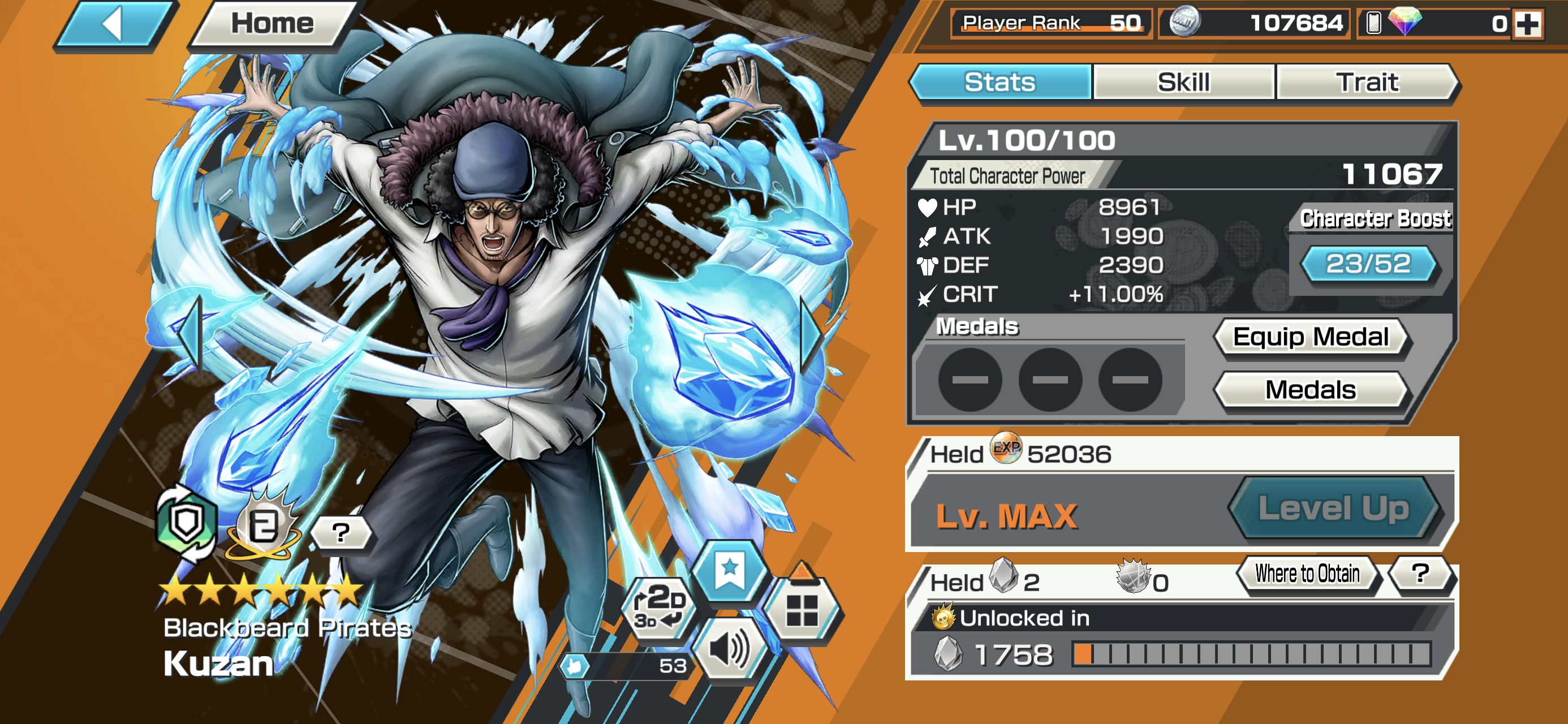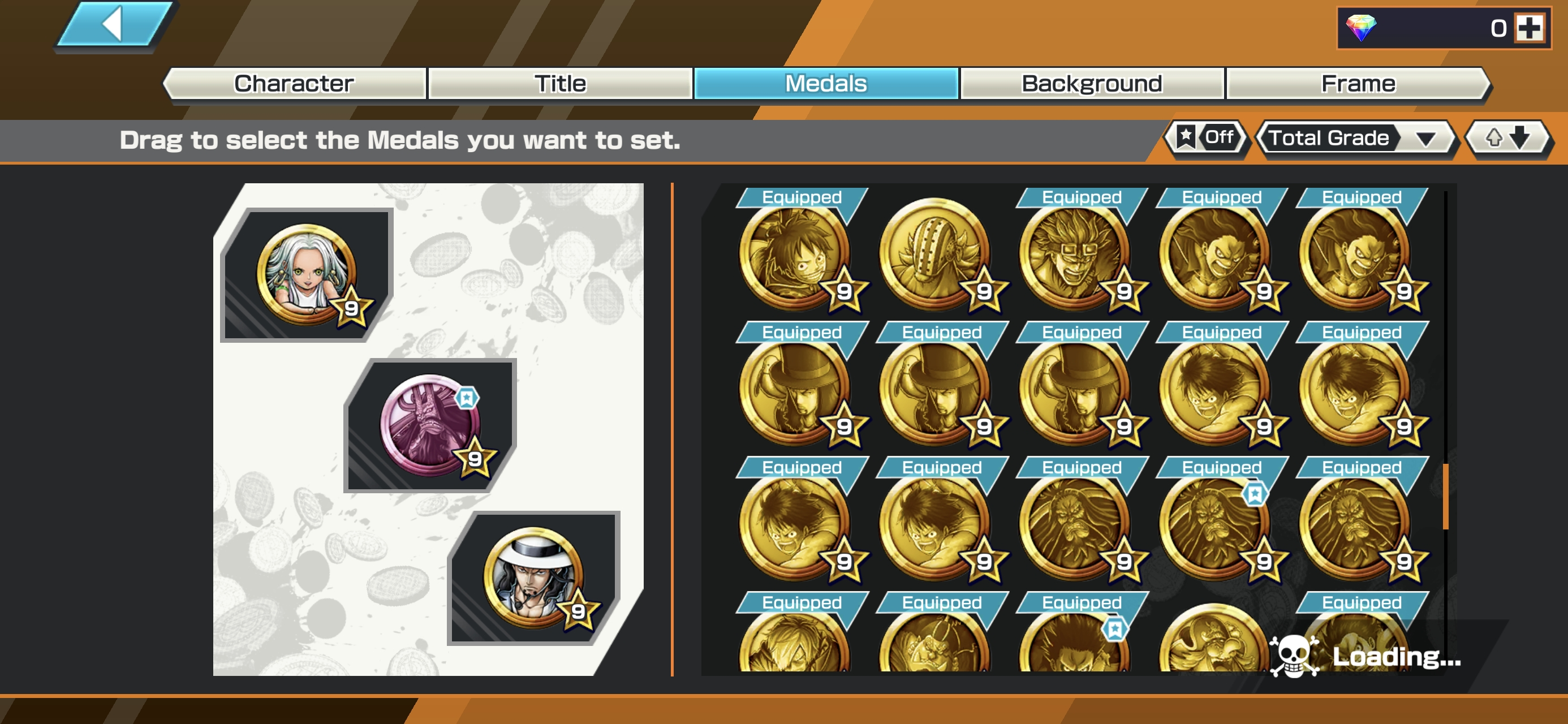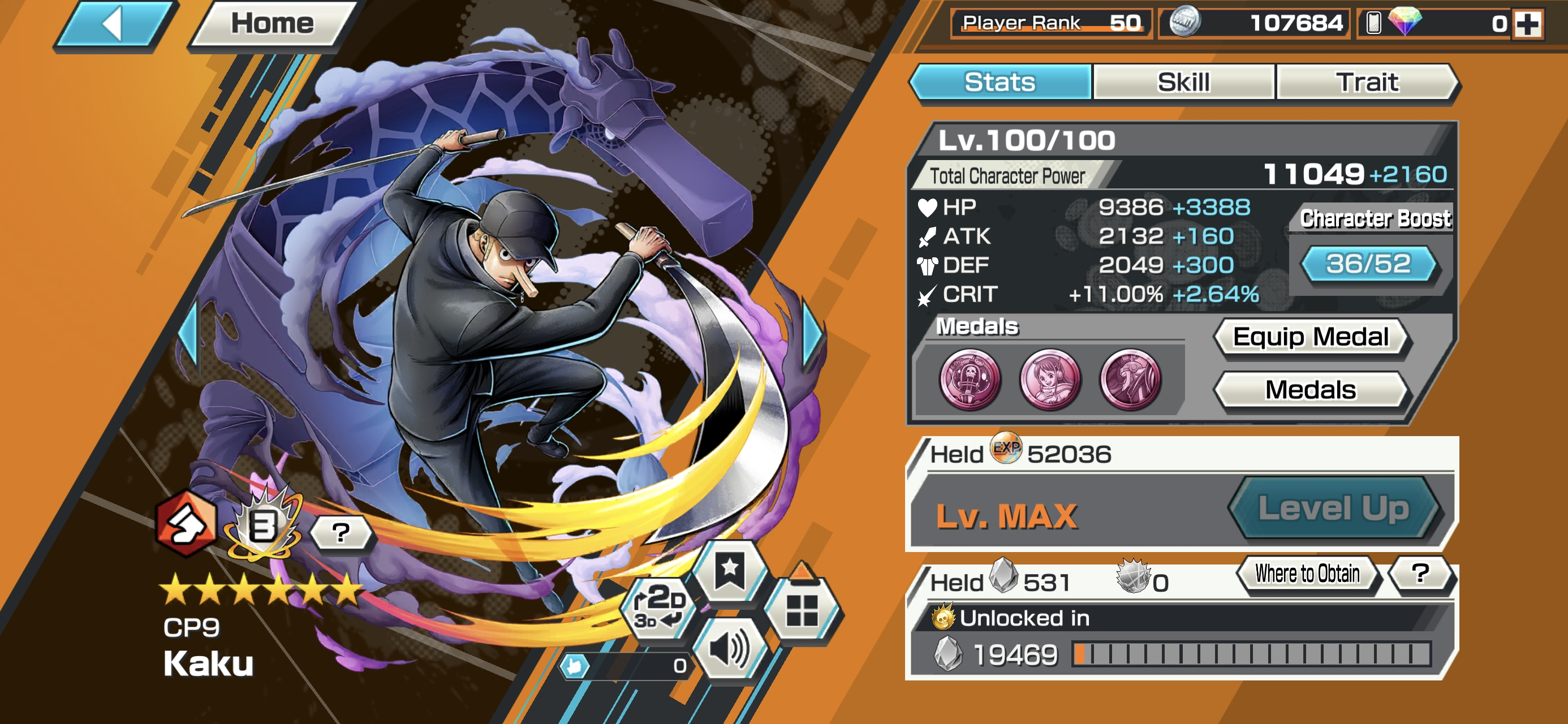 Rob Lucci Max Full Boost 3 ⸱ HB 37 ⸱ 6 Ex Meta 4 Max ⸱ Shanks Max Power 11K ⸱ Ssnake Max Power 11K ⸱ Kuzan Max Power 11K ⸱ Sabo ⸱ Roger ⸱ Support 166 ⸱ Good Medal ⸱ Gems ⸱ Many Medal Material ⸱ B472