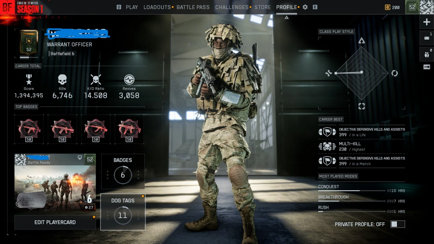 Sale π₯ Battlefield 6 π Steam Purchased π 4 meta gun maxed π₯ Rank 52 π₯ All weapons open (45) π₯ +20 character skin π₯ Full Access π₯ELITE SUPPORT (CLASS) π₯ EA Linkable