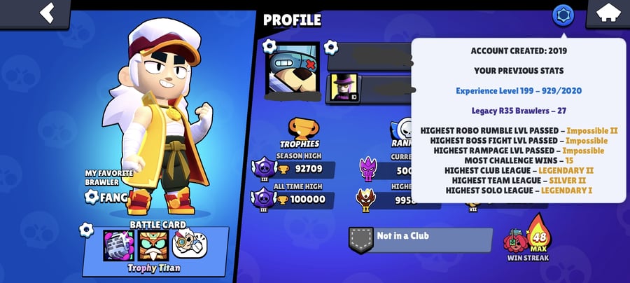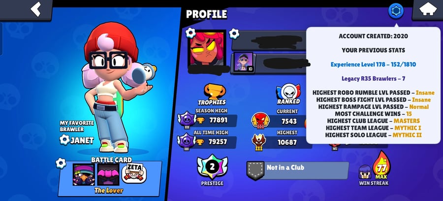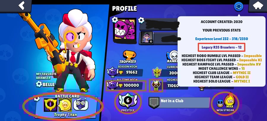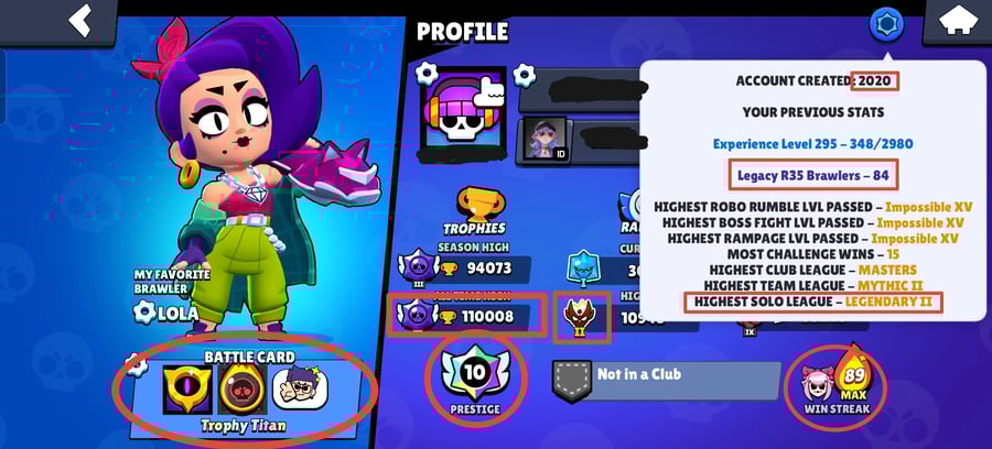 🌙 107k Trophy 🌙 6x Old Masters 🌙 10k+ Ranked Elo 🌙 2x Prestige 🌙 2x Legacy r35 🌙 Virus 8-Bit 🌙 8 Og Passes 🌙 Trixie Collete 🌙 King Lou 🌙 Mythic 2 Power league 🌙