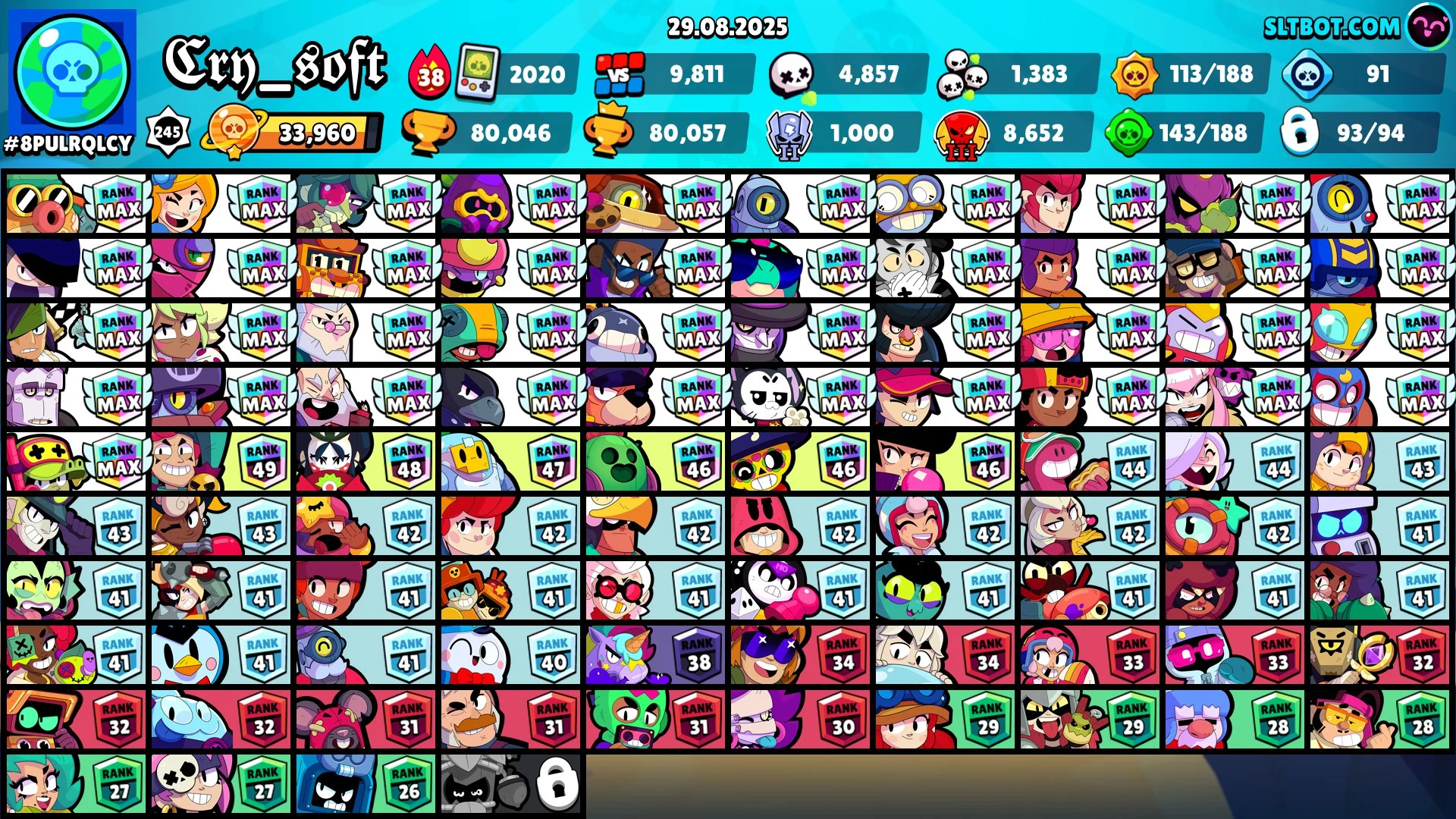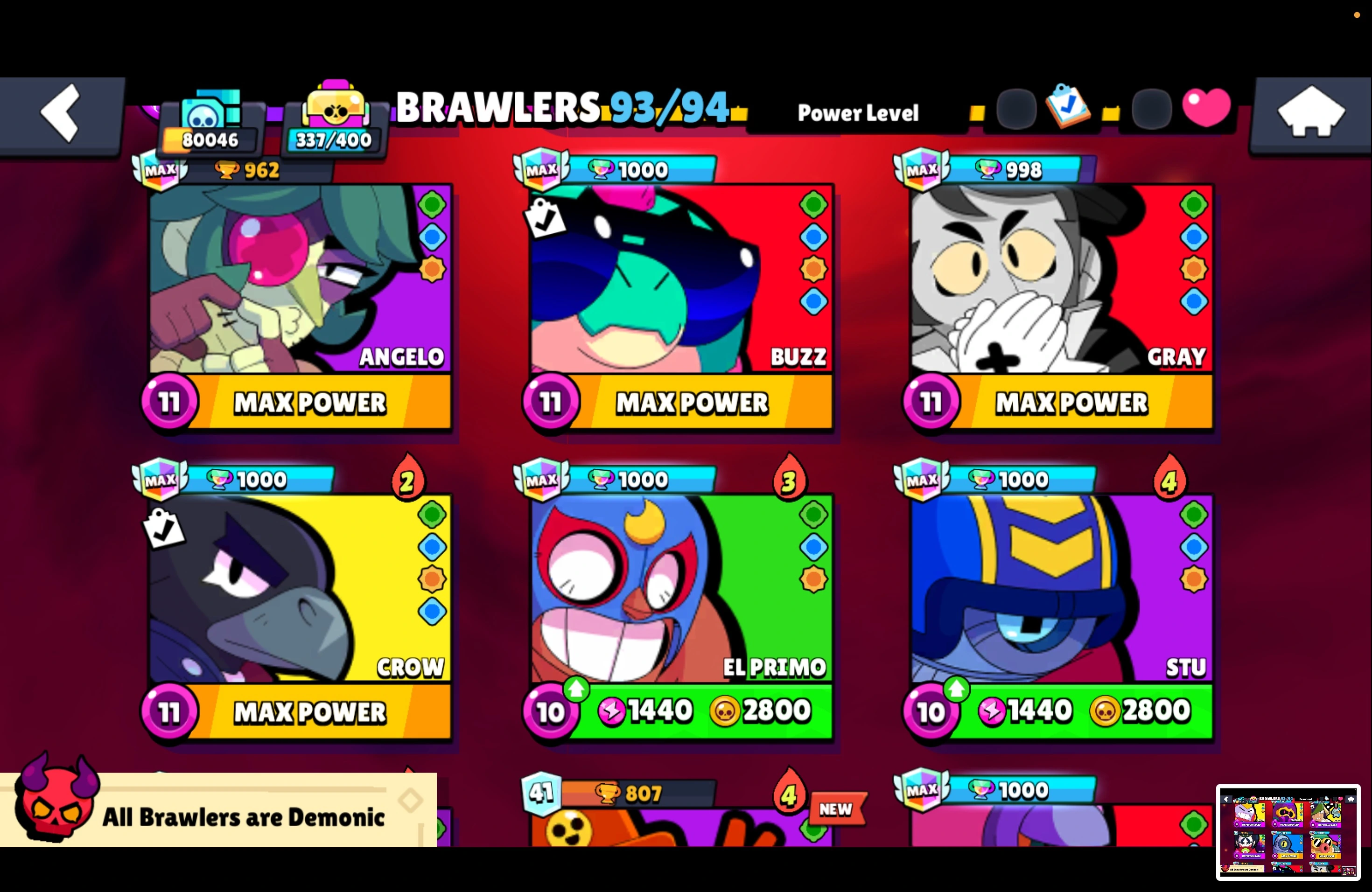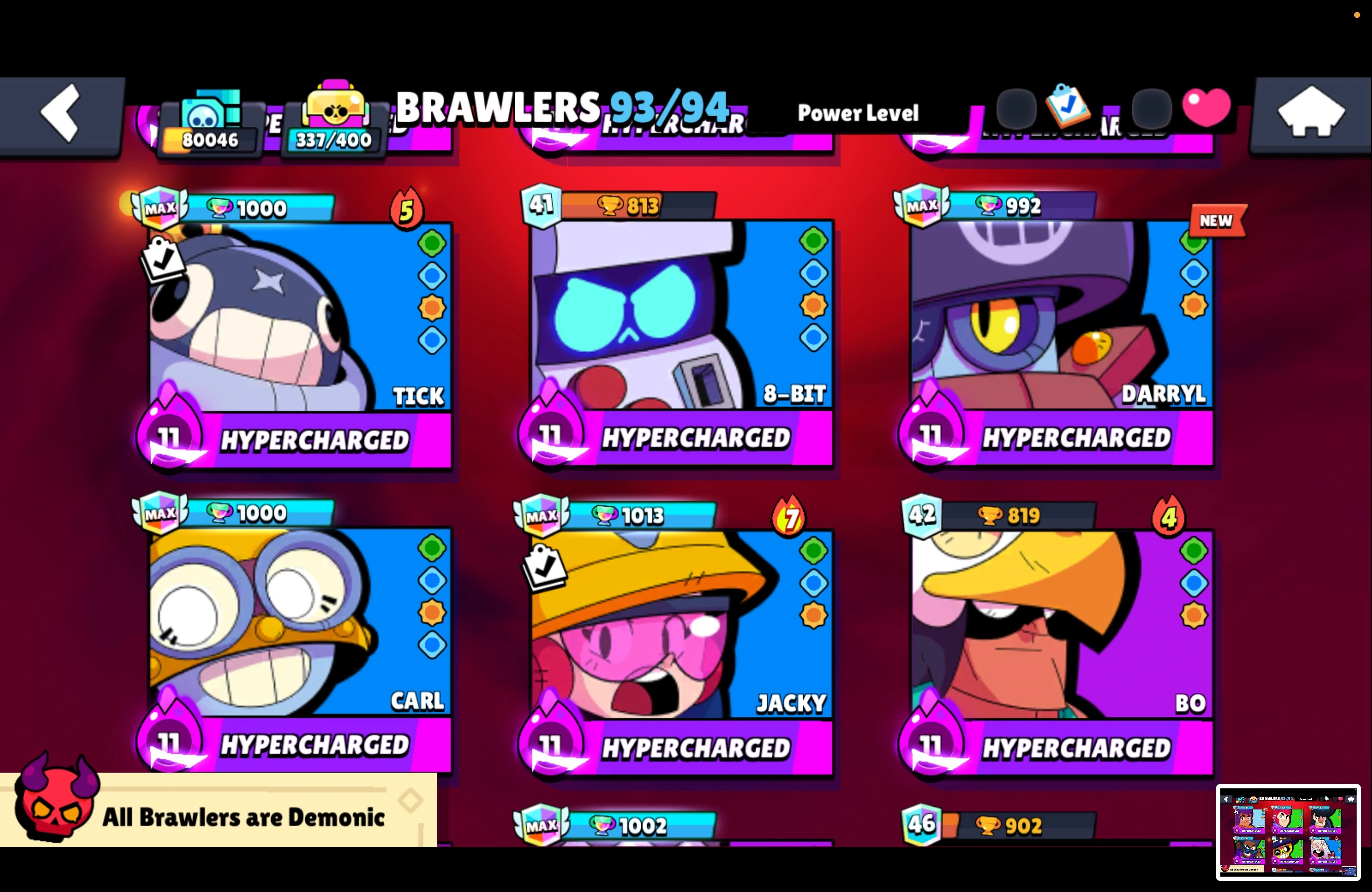 11.11 PIN ⭐ 16 TITLES ⭐ WEREWOLF LEON ⭐ 231 SKINS ⭐ 80.000 TROPHY ⭐ 93 BRAWLERS ⭐ 46 MAX ⭐ 40 HYPERCHARGED ⭐ LOADED RICO ⭐ MARIPOSA PIPER ⭐ ZEUS BROCK ⭐ KONG SURGE ⭐ KABOCHA FANG ⭐ SPIKE ⭐ LEGENDARY ⭐ MECHA LEON
