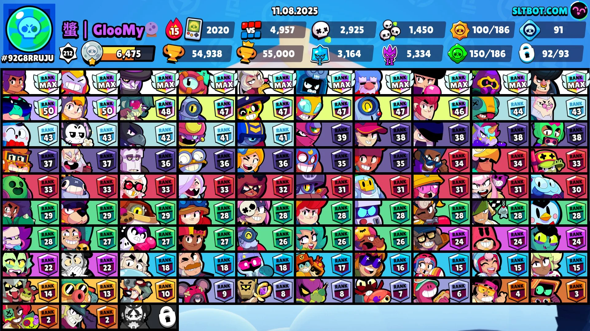 11.11 PIN ⭐ KING LOU ⭐ 216 SKINS ⭐ 54.900 TROPHY ⭐ 92 BRAWLERS ⭐ 34 MAX ⭐ 21 HYPERCHARGED ⭐ BELLE GOLDHAND ⭐ RONIN RUFFS ⭐ NINJA ASH ⭐ DIY SURGE ⭐ OCTO FANG ⭐ SPIKE ⭐ LEGENDARY ⭐ LEON