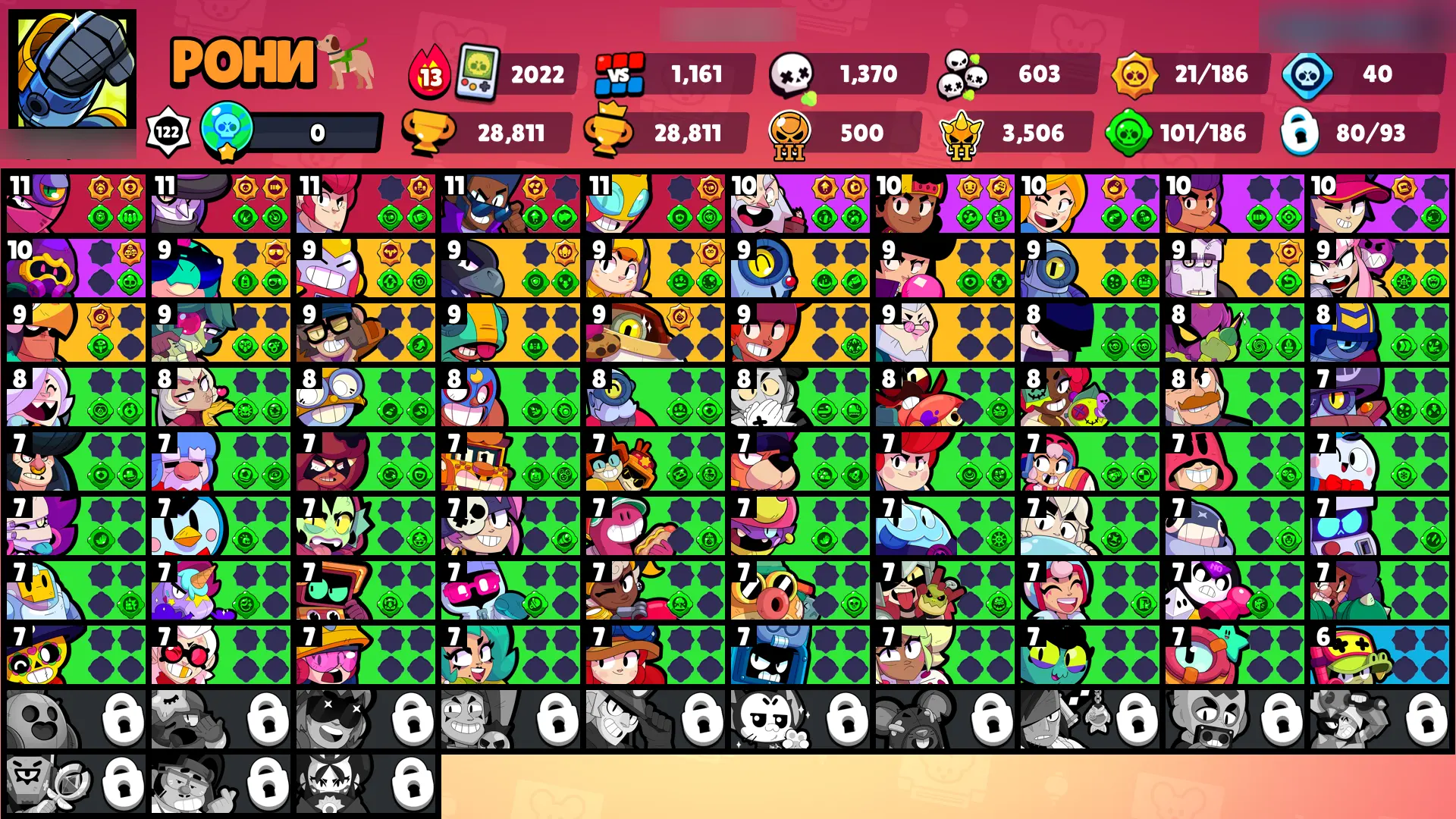123 SKINS | 28811 TROPHIES | GODZILLA BUZZ | SURGE LIGHTYEAR | SPONGEBOB EL PRIMO | WARRIOR BO | SANTA STU | IVY BELLE | GALACTIC GALE | IMPIE COLETTE | DARK CLOWN SAM | TECH MAISIE | MARAUDER MAISIE | MOON GUARDIAN HANK | TEMPEST TARA | 80 BRAWLERS