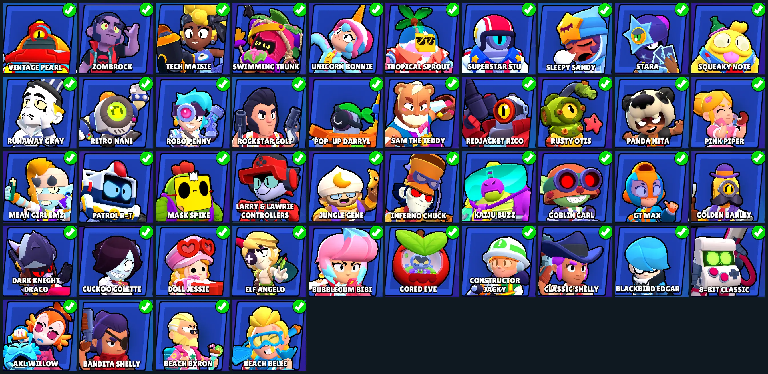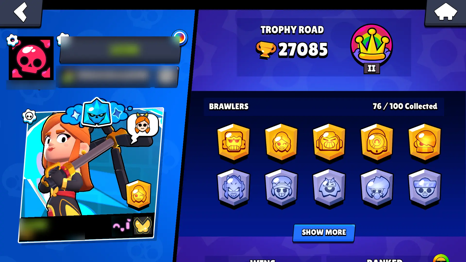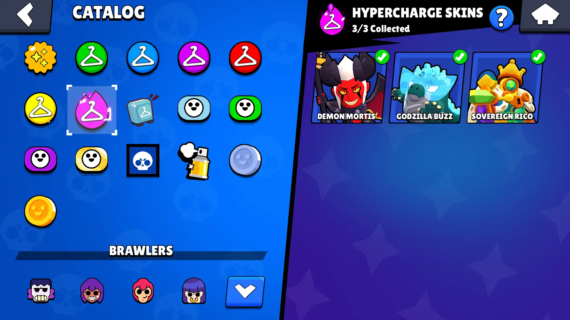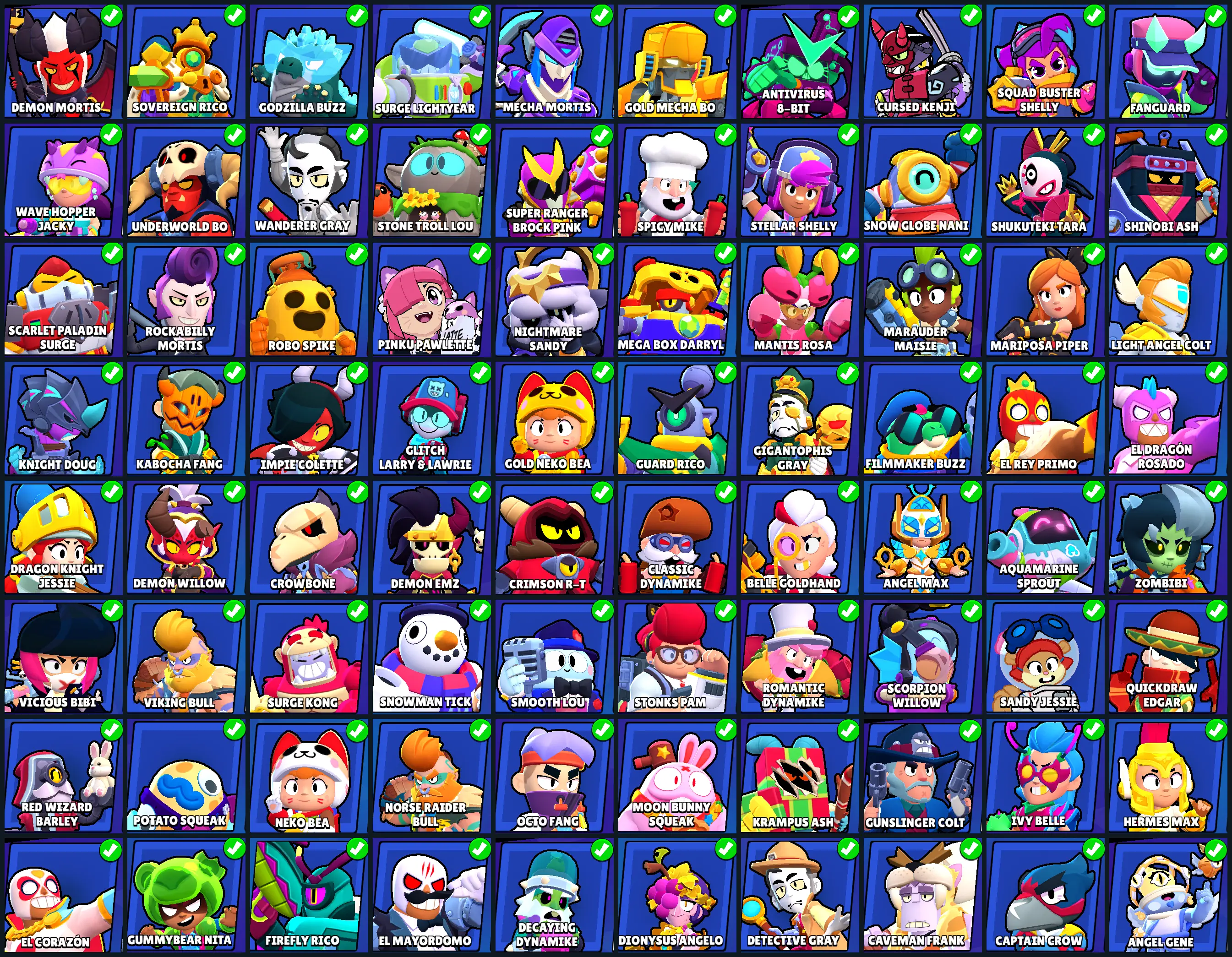 132 SKINS | 27085 TROPHIES | BELLE GOLDHAND | ANTIVIRUS 8-BIT | MECHA MORTIS | DEMON MORTIS | HERMES MAX | FILMMAKER BUZZ | GODZILLA BUZZ | SURGE LIGHTYEAR | ROCKABILLY MORTIS | SUPER RANGER BROCK PINK | SPICY MIKE | WARRIOR BO | 76 BRAWLERS