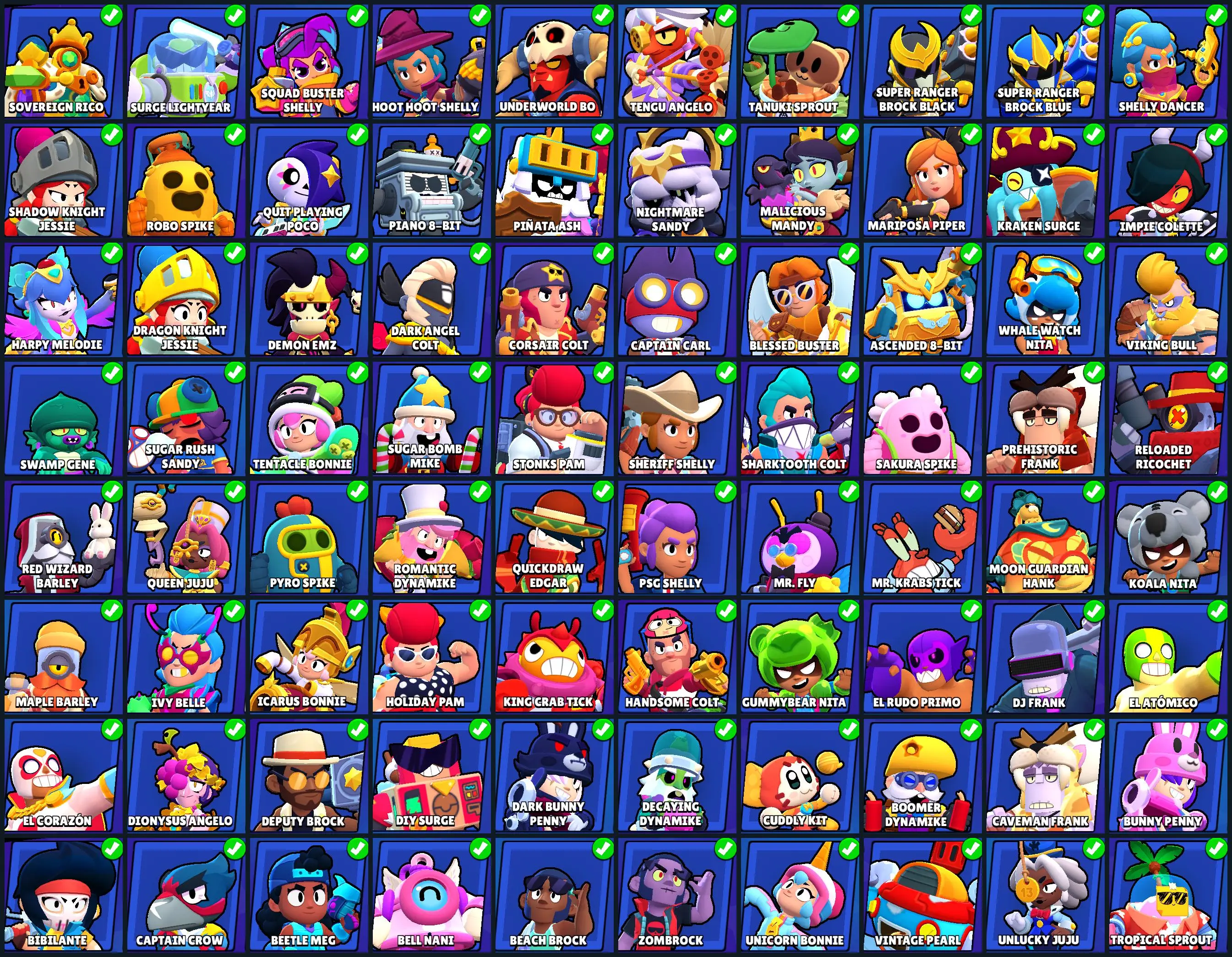 146 SKINS | 29737 TROPHIES | CORSAIR COLT | HOOT HOOT SHELLY | SURGE LIGHTYEAR | SHELLY DANCER | SUPER RANGER BROCK BLUE | SUPER RANGER BROCK BLACK | CAPTAIN CARL | WARRIOR BO | UNDERWORLD BO | PIANO 8-BIT | MARIPOSA PIPER | IVY BELLE | 79 BRAWLERS