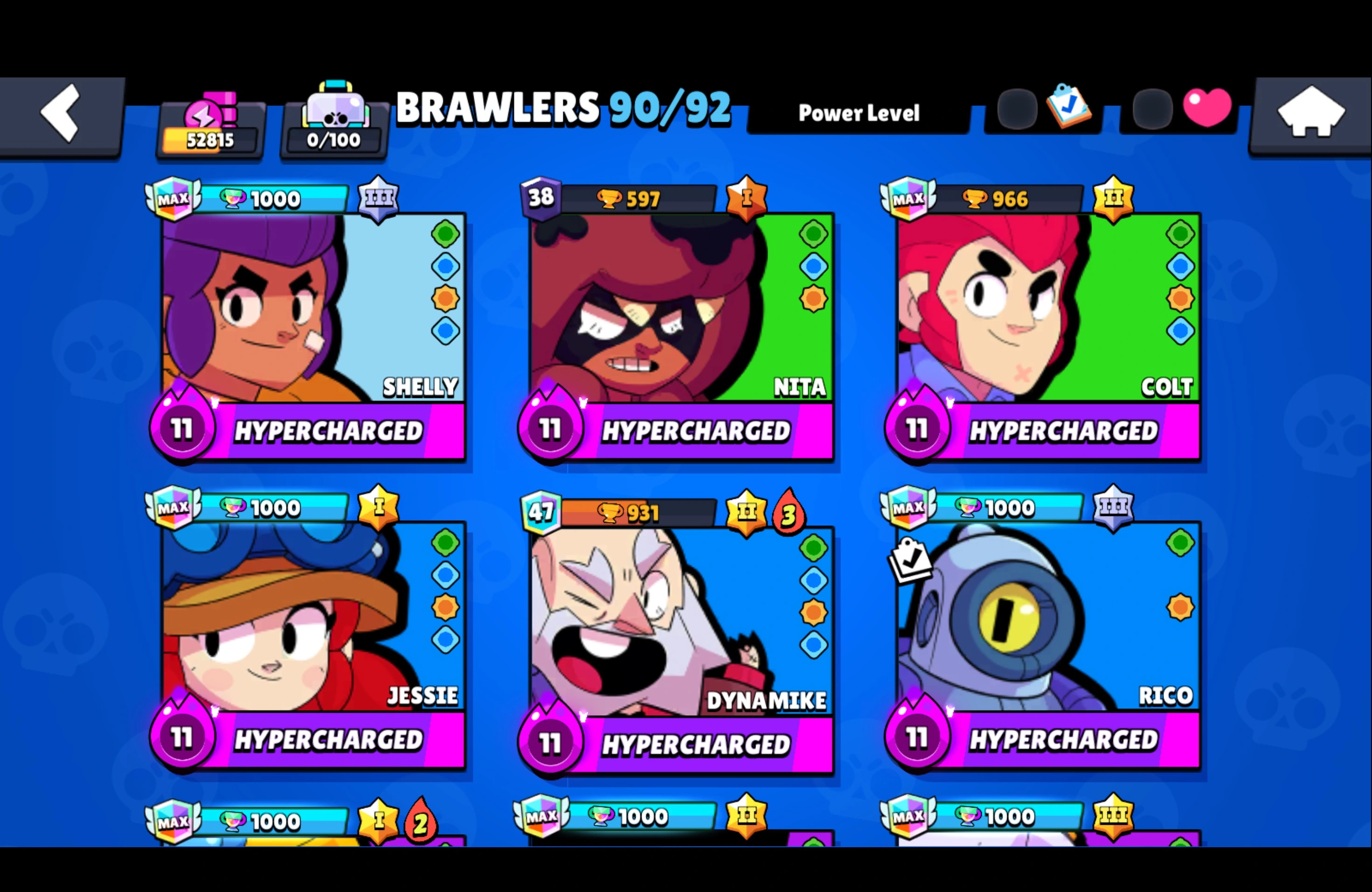 185 SKINS ⭐ 52.800 TROPHY ⭐ 90 BRAWLERS ⭐ 28 MAX ⭐ 16 HYPERCHARGED ⭐ POP PENNY ⭐ GUARD RICO ⭐ MARIPOSA PIPER ⭐ SCARLET PALADIN SURGE ⭐ FANGUARD FANG ⭐ DARK LORD SPIKE ⭐ LEGENDARY ⭐ LEON