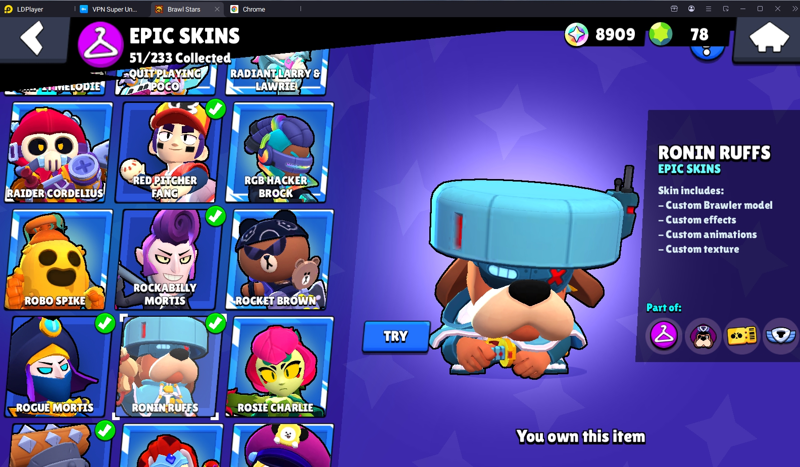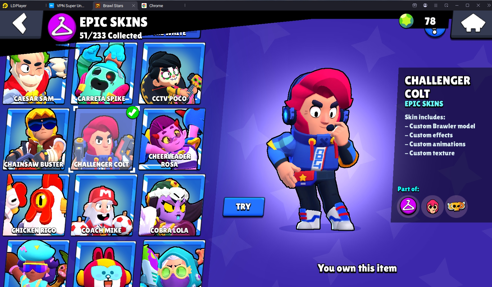198 SKINS 💯 CHALLENGER COLT 💜 7 OLD BP 💜 74.691 TROPHIES 🏆 95 BRAWLERS 🐼 23 HYPERCHARGED 🩸 47 PRESTIGE 💜 30 MAX BRAWLERS 💛 TRIXIE COLETTE 🧡 FURIOUS FANG 🧡 BORN BAD BUZZ 🧡 BELLE GOLDHAND 🧡 KING LOU 🧡 RONIN RUFFS 🧡 MECHA PALADIN SURGE 💯 60K 70K