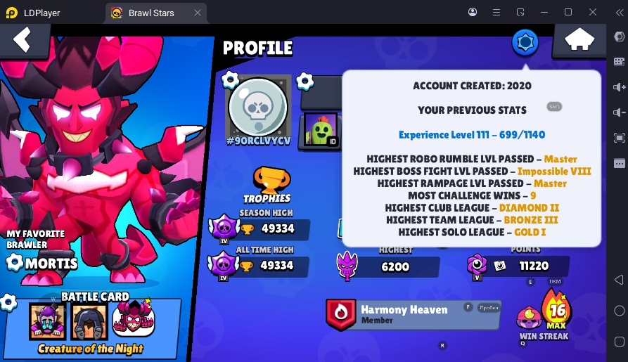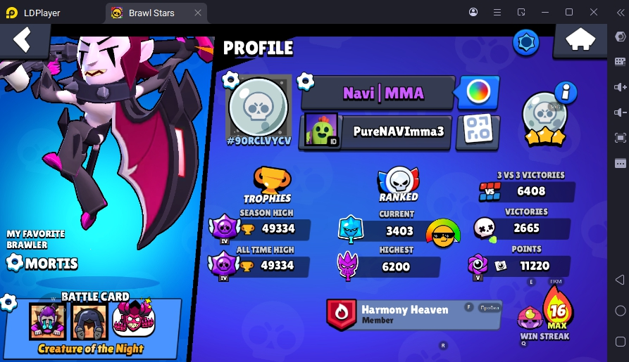 206 SKINS 💯 49.334 TROPHIES 🏆 94 BRAWLERS 🐼 20 HYPERCHARGED 🩸 23 MAX BRAWLERS 💛 REBEL LOLA 🧡 NINJA ASH 🧡 FANGUARD 🧡 CURSED KENJI 🧡 💯