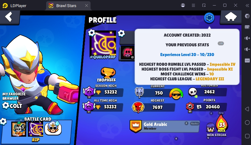 214 SKINS 💯 53.232 CUPS 🏆 85 BRAWLERS 🐼 18 HYPERCHARGED 🩸 22 MAX BRAWLERS 💛 CURSED KENJI ❤️ ROBO MIKE ❤️ JAM MASTER HANK ❤️ ELECTROID CHUCK ❤️ ULTRA DRILLER JACKY 💯