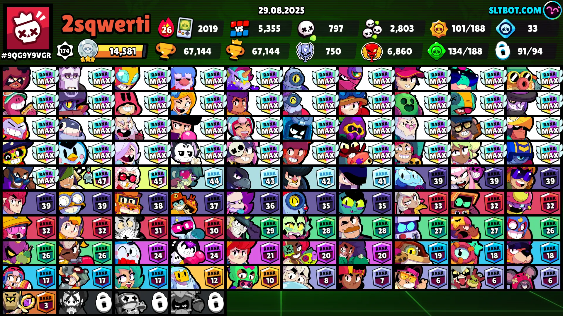❗️[30% OFF]❗️⭐ 226 SKINS ⭐ 67.100 TROPHY ⭐ 91 BRAWLERS ⭐ 34 MAXED BRAWLERS ⭐ 31 HYPERCHARGED ⭐ CRASH TEST DARRYL ⭐ CURSED KENJI ⭐ CHAINSAW BUSTER ⭐ SKELETAL SURGE ⭐ KABOCHA FANG ⭐ SPIKE ⭐ LEGENDARY ⭐ LEON