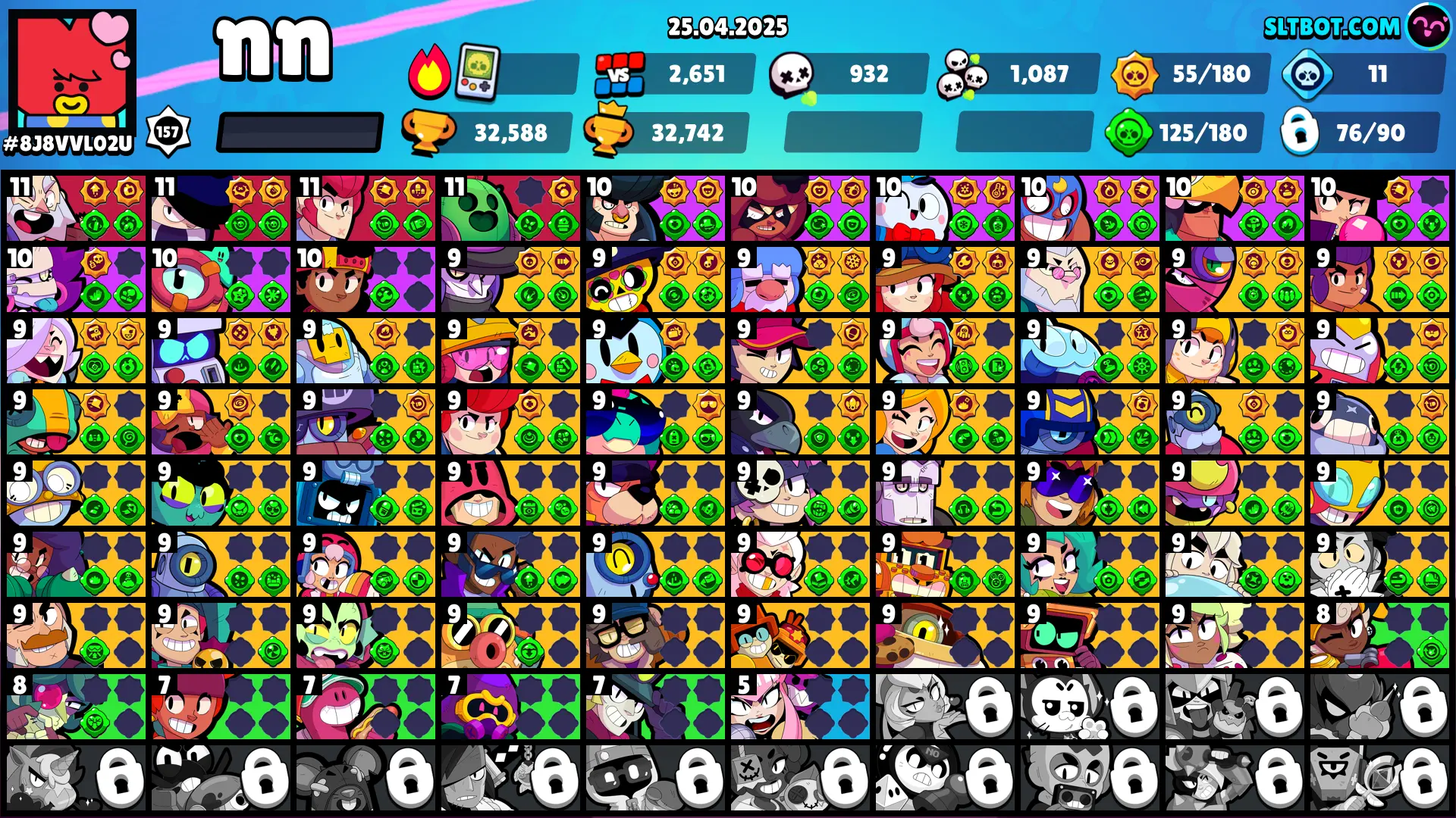 40 SKINS 🩵 32.588 TROPHIES 🏆 76 BRAWLERS 🧸 3 HYPERCHARGED 🩸 4 MAX BRAWLERS 🩷 CUPID PIPER 🩵 CLASSIC DYNAMIKE🩵 DARK LORD SPIKE 🩵 EDGAR TATA 🩵 PHARAOTIS 🩵 SPIKY EVE 🎀