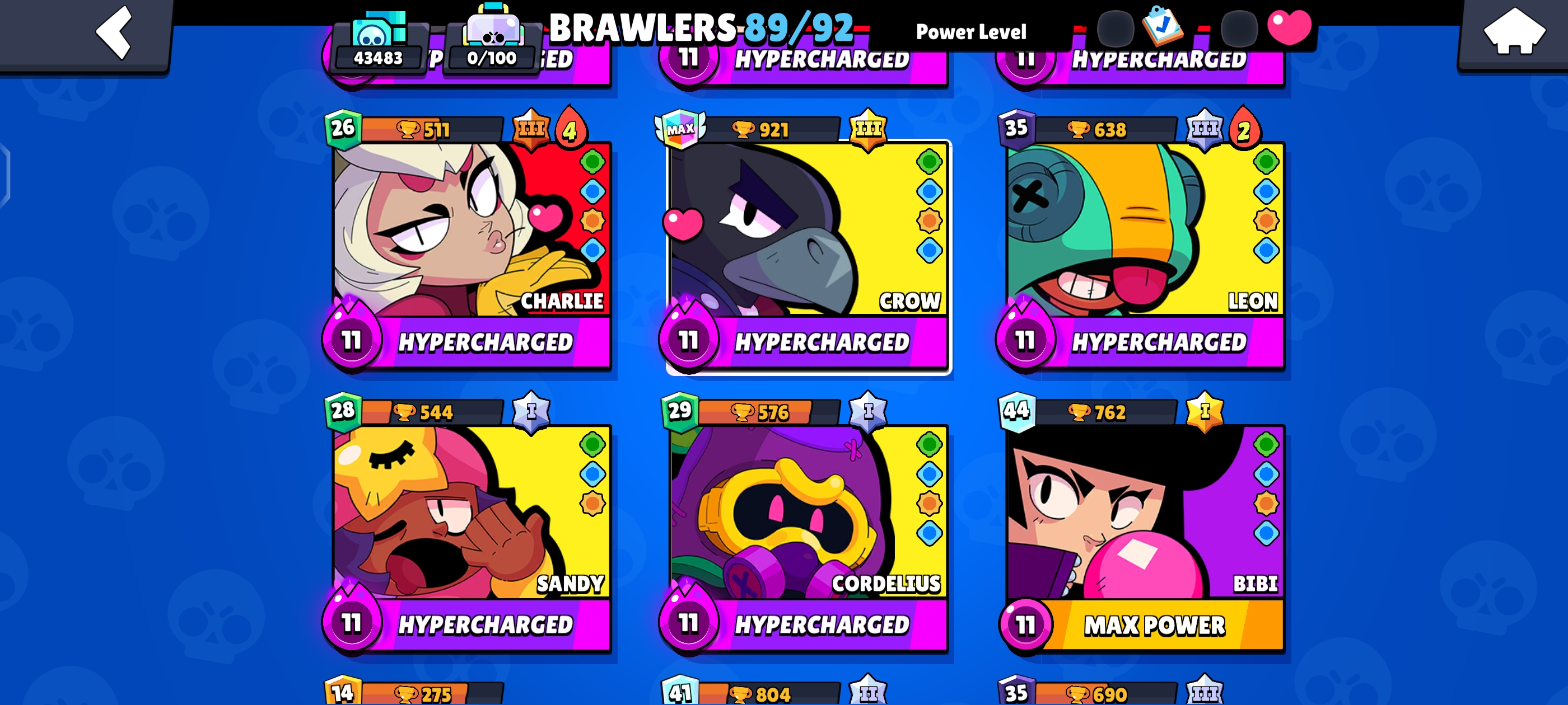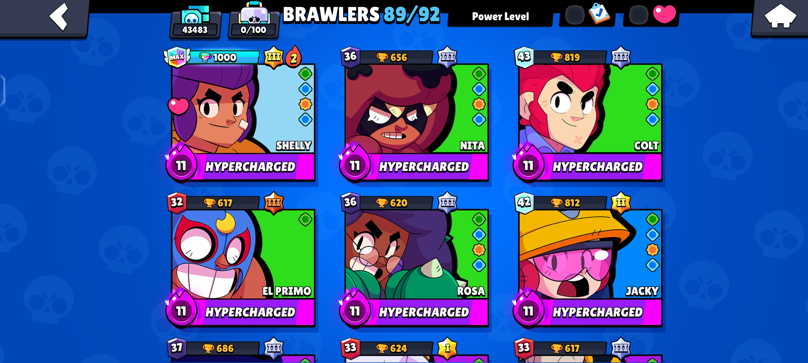 "π₯ 43K TROPHIES π | 89/92 BRAWLERS π | 11 HYPERCHARGED π₯ | 169 RARE SKINS π | 3 MAXED BRAWLERS π | XP LEVEL 69 β‘ | EXCLUSIVE ACCOUNT π₯"