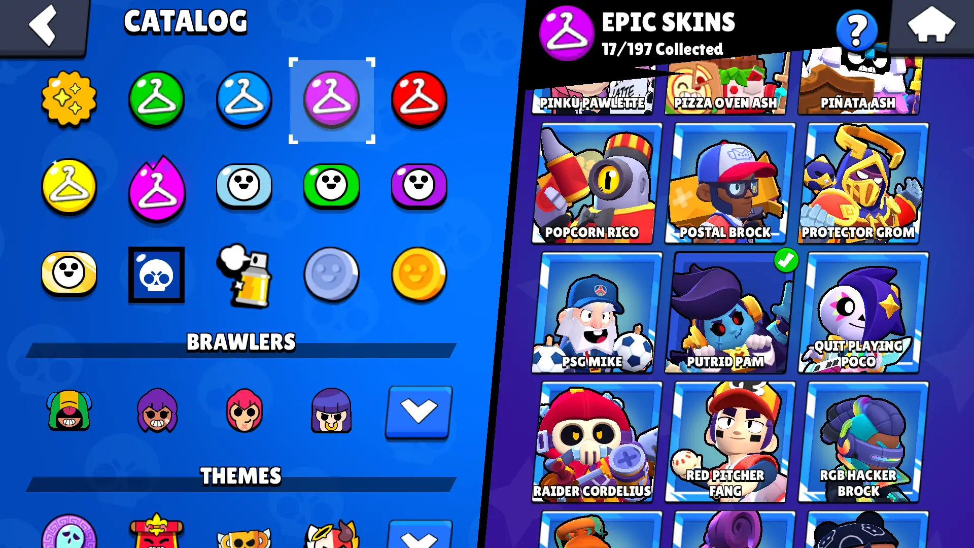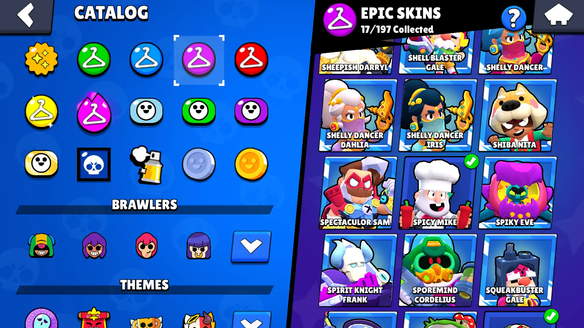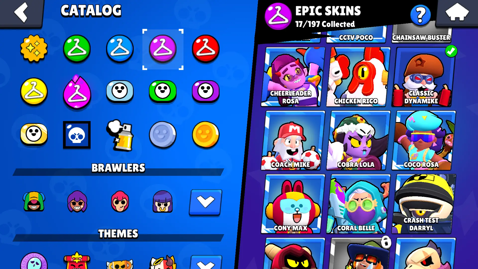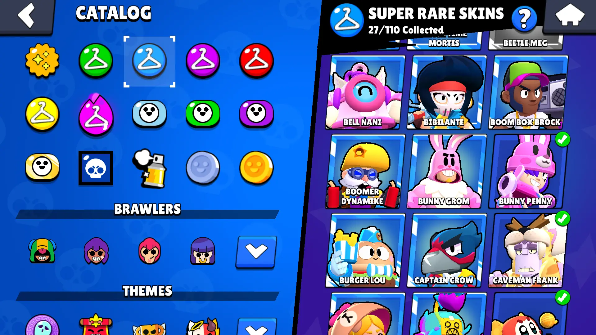 82 SKINS | 25342 TROPHIES | 8-BIT CLASSIC | ARCHVILLAIN BEA | AXL WILLOW | BAIKU EVE | BANDITA SHELLY | BARBARIAN KING BULL | BEACH BYRON | BIKER CARL | BOY SCOUT GUS | BUNNY PENNY | CAVEMAN FRANK | CLASSIC SHELLY | CONSTRUCTOR JACKY | 69 BRAWLERS