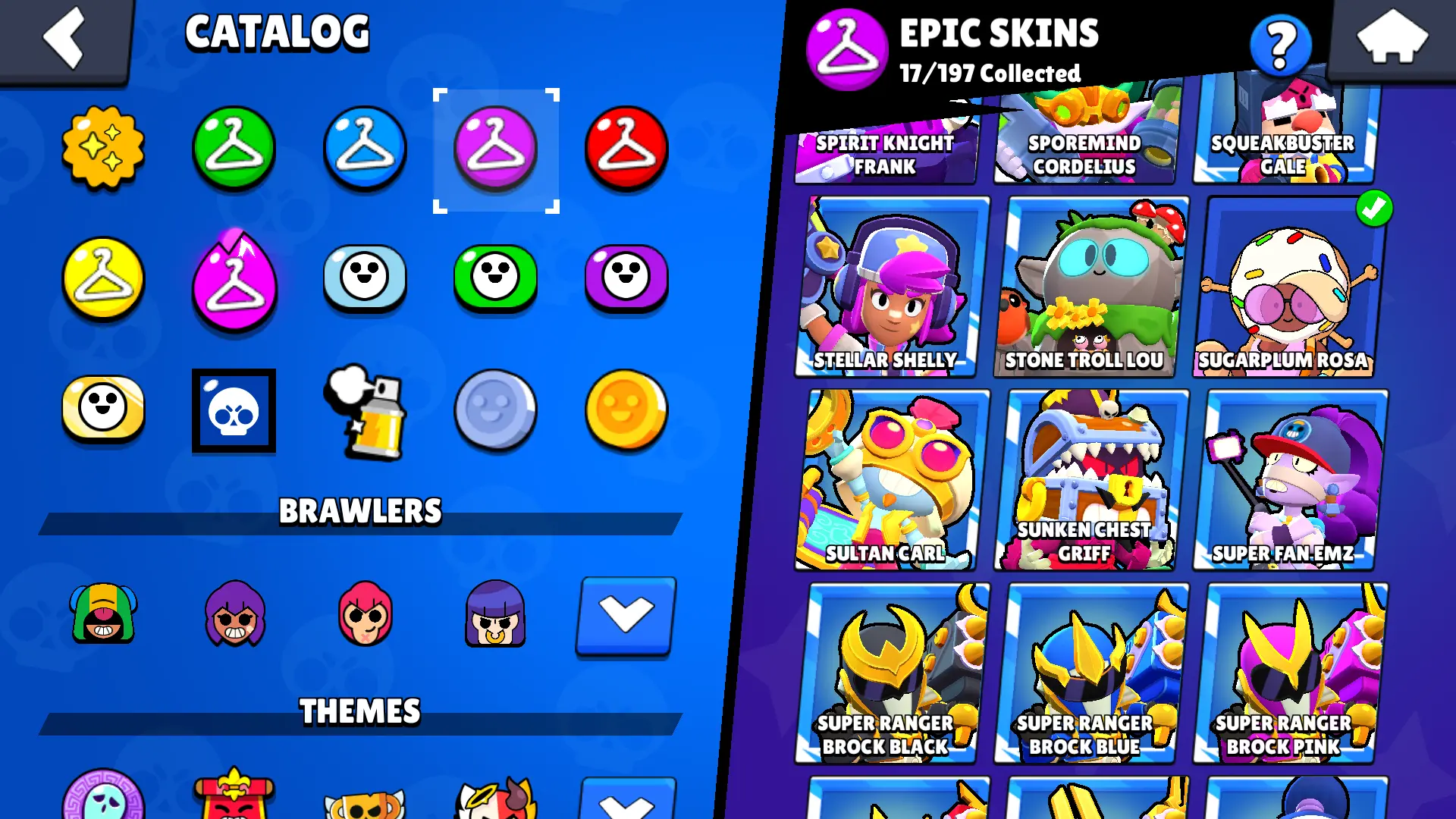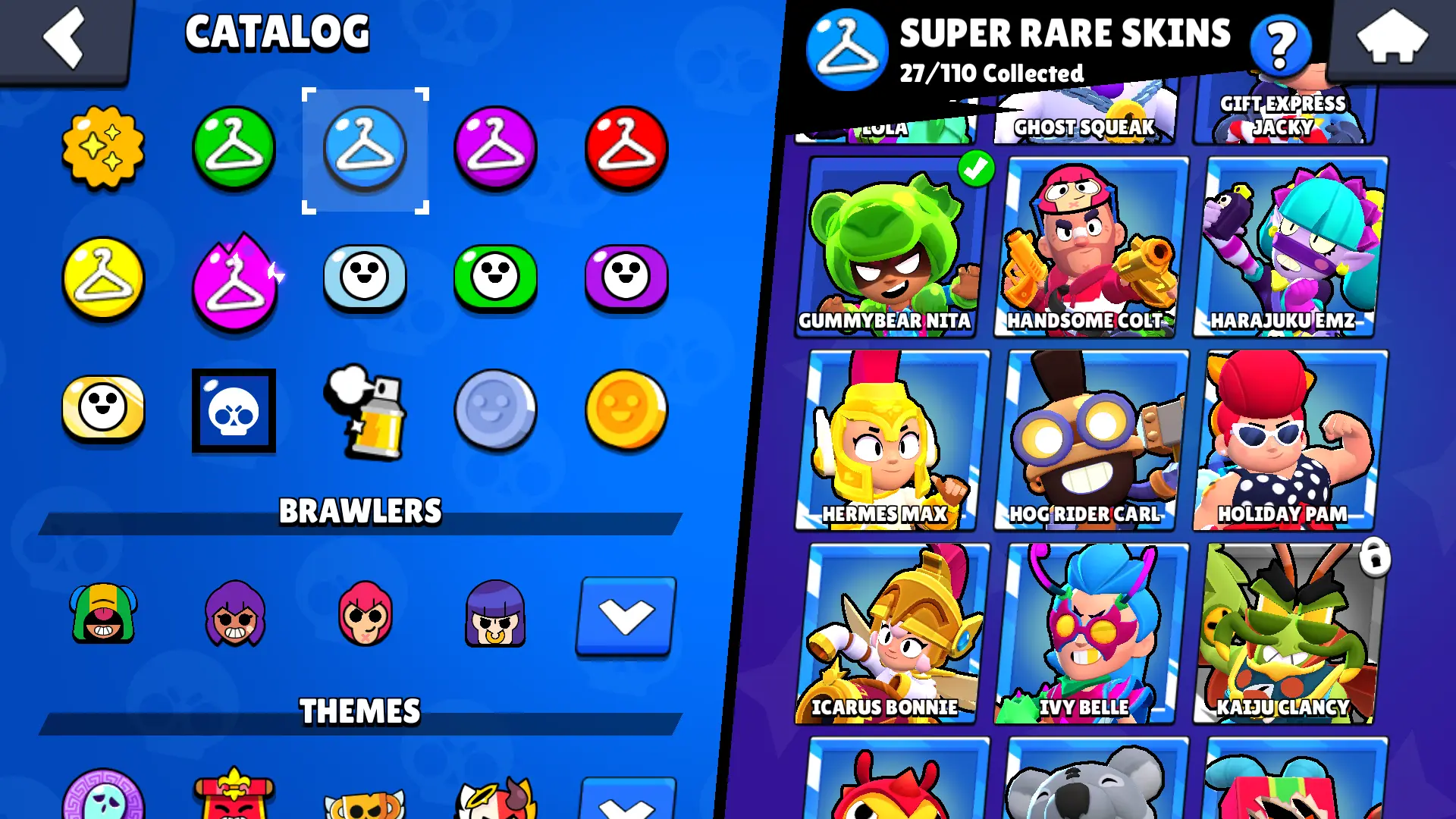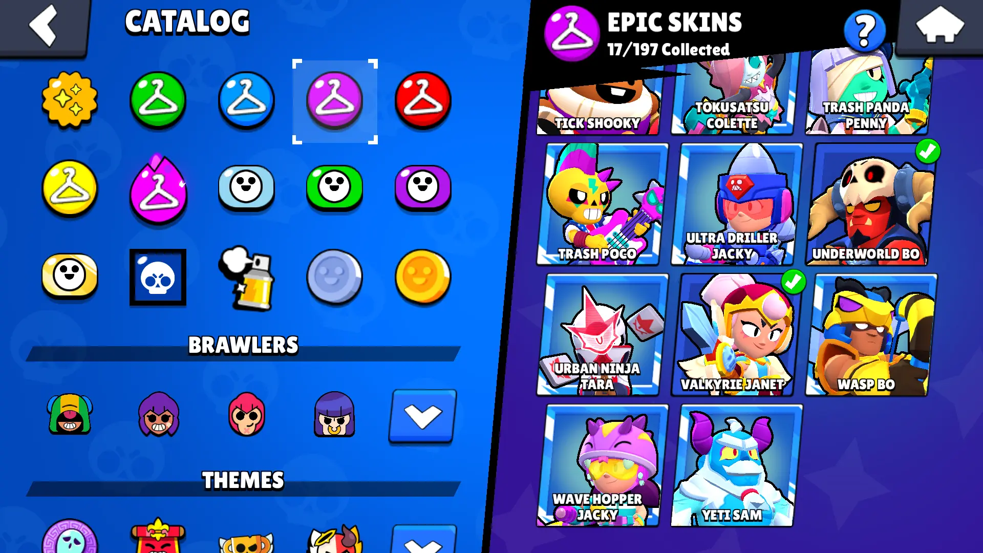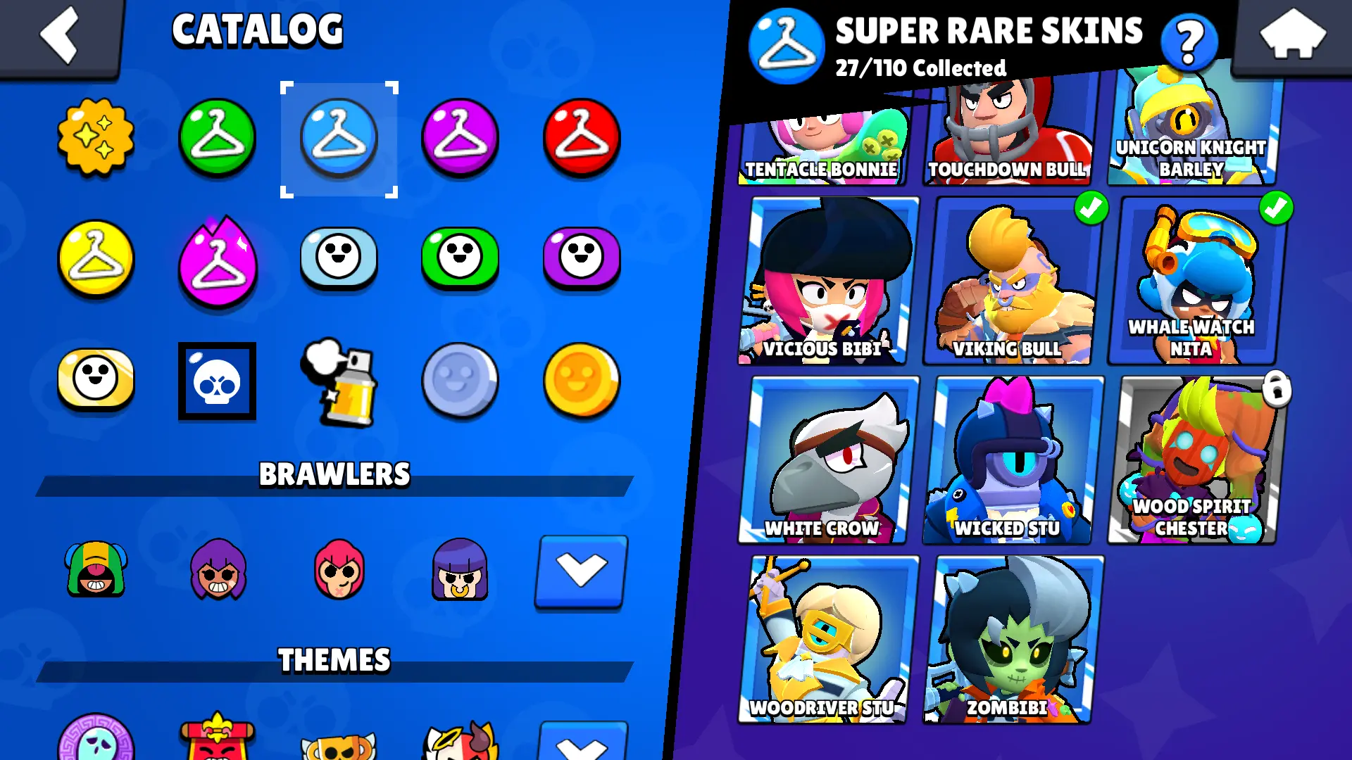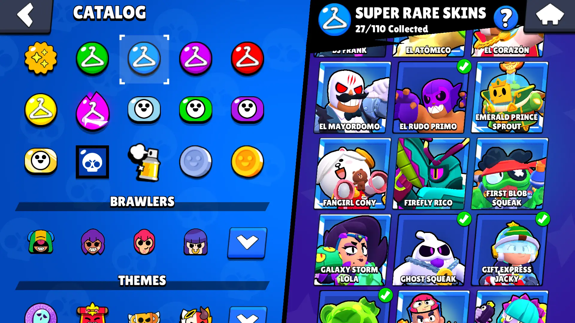 82 SKINS | 25342 TROPHIES | 8-BIT CLASSIC | ARCHVILLAIN BEA | AXL WILLOW | BAIKU EVE | BANDITA SHELLY | BARBARIAN KING BULL | BEACH BYRON | BIKER CARL | BOY SCOUT GUS | BUNNY PENNY | CAVEMAN FRANK | CLASSIC SHELLY | CONSTRUCTOR JACKY | 69 BRAWLERS