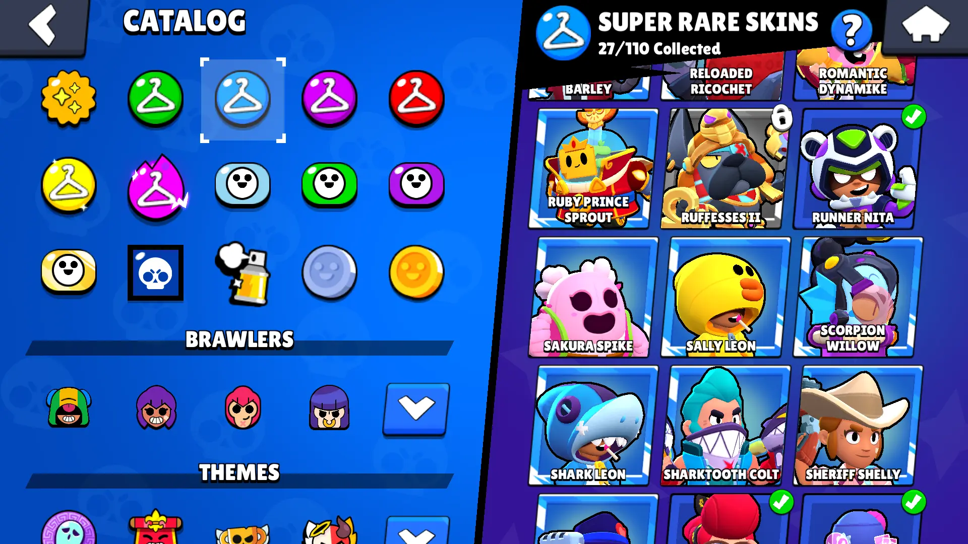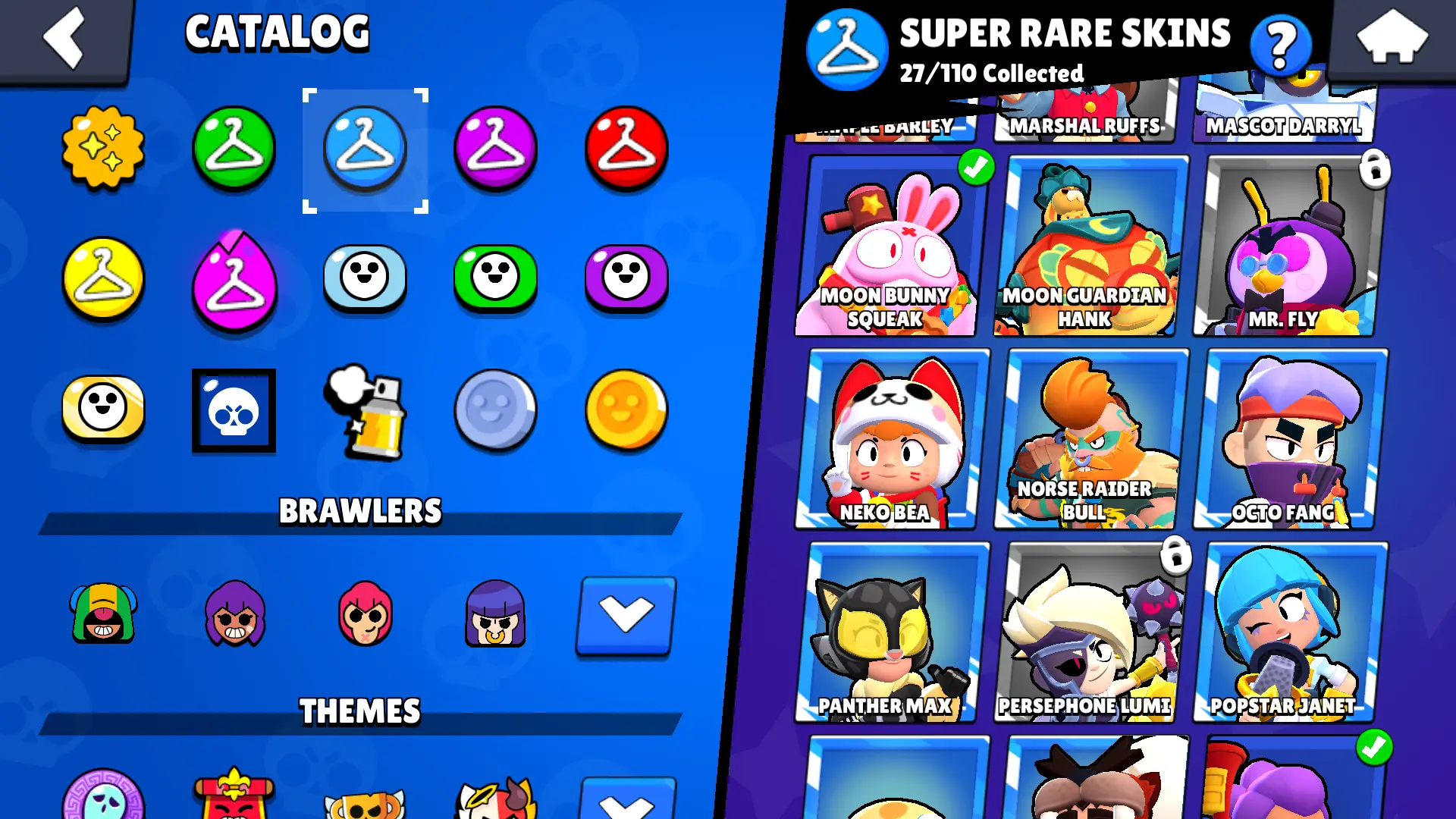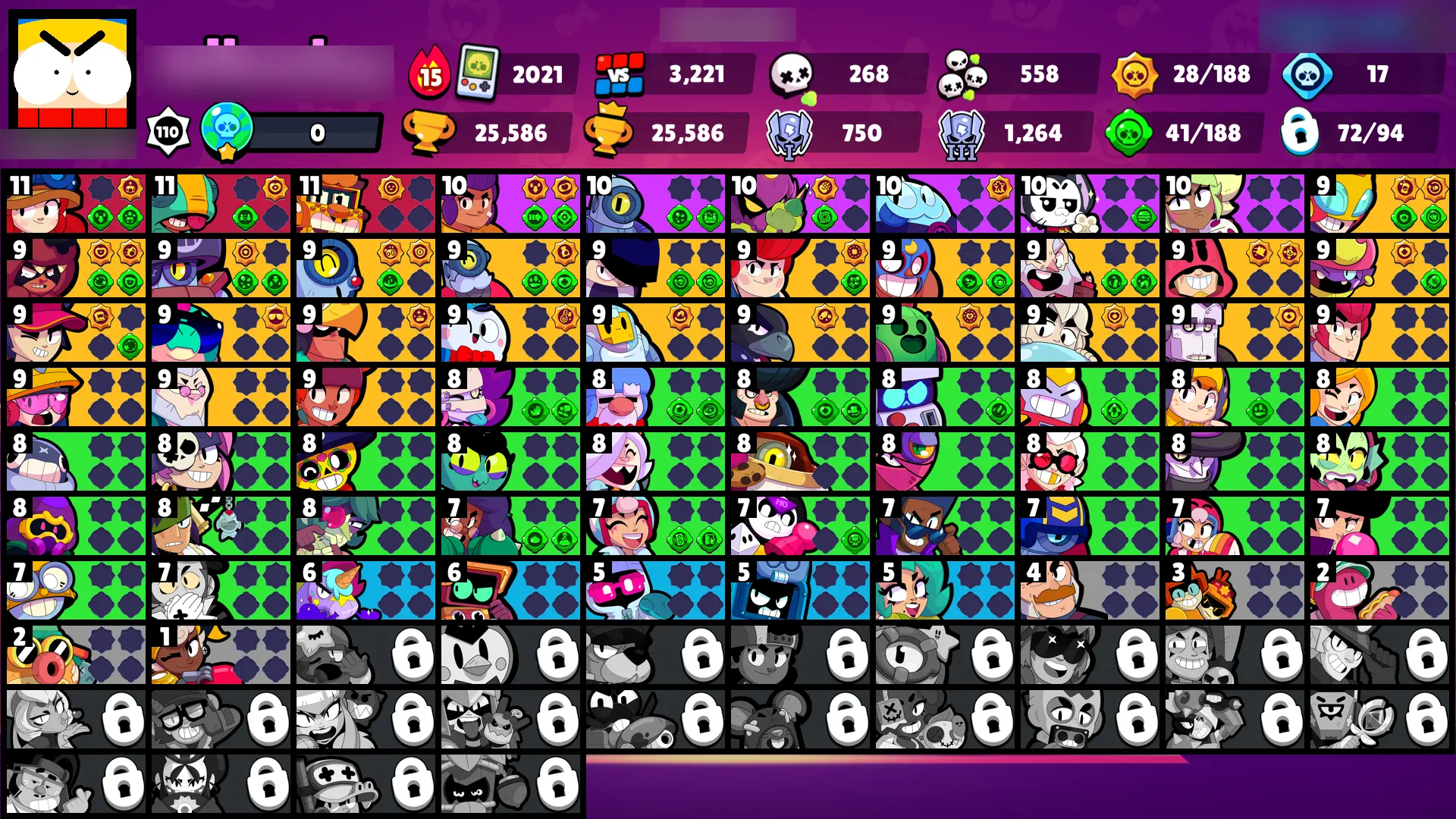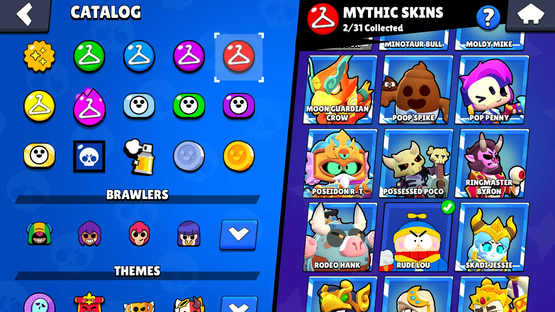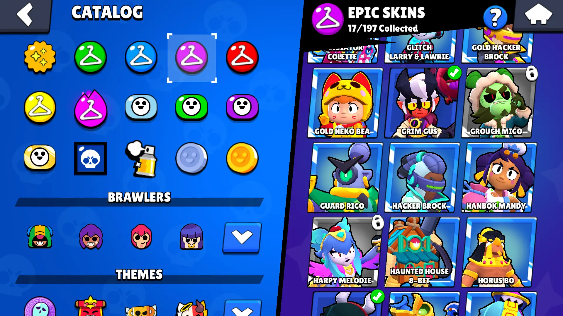 82 SKINS | 25342 TROPHIES | 8-BIT CLASSIC | ARCHVILLAIN BEA | AXL WILLOW | BAIKU EVE | BANDITA SHELLY | BARBARIAN KING BULL | BEACH BYRON | BIKER CARL | BOY SCOUT GUS | BUNNY PENNY | CAVEMAN FRANK | CLASSIC SHELLY | CONSTRUCTOR JACKY | 69 BRAWLERS