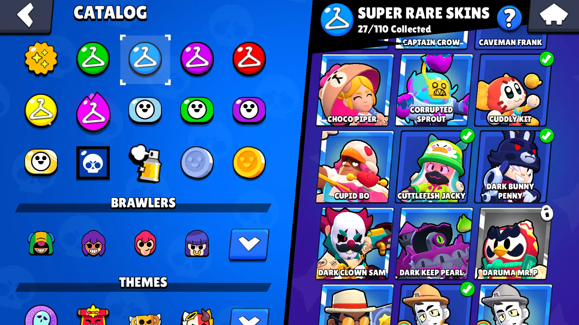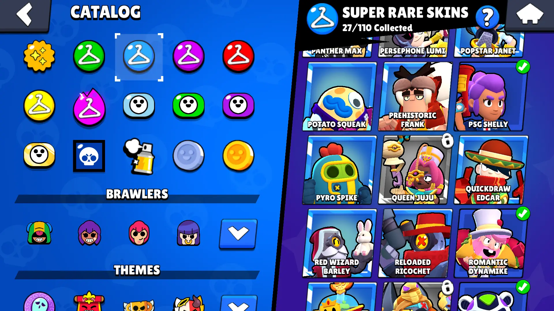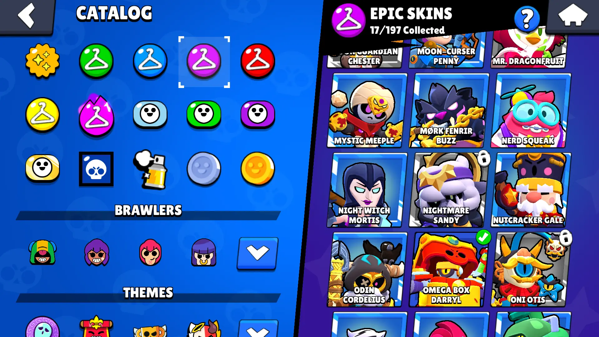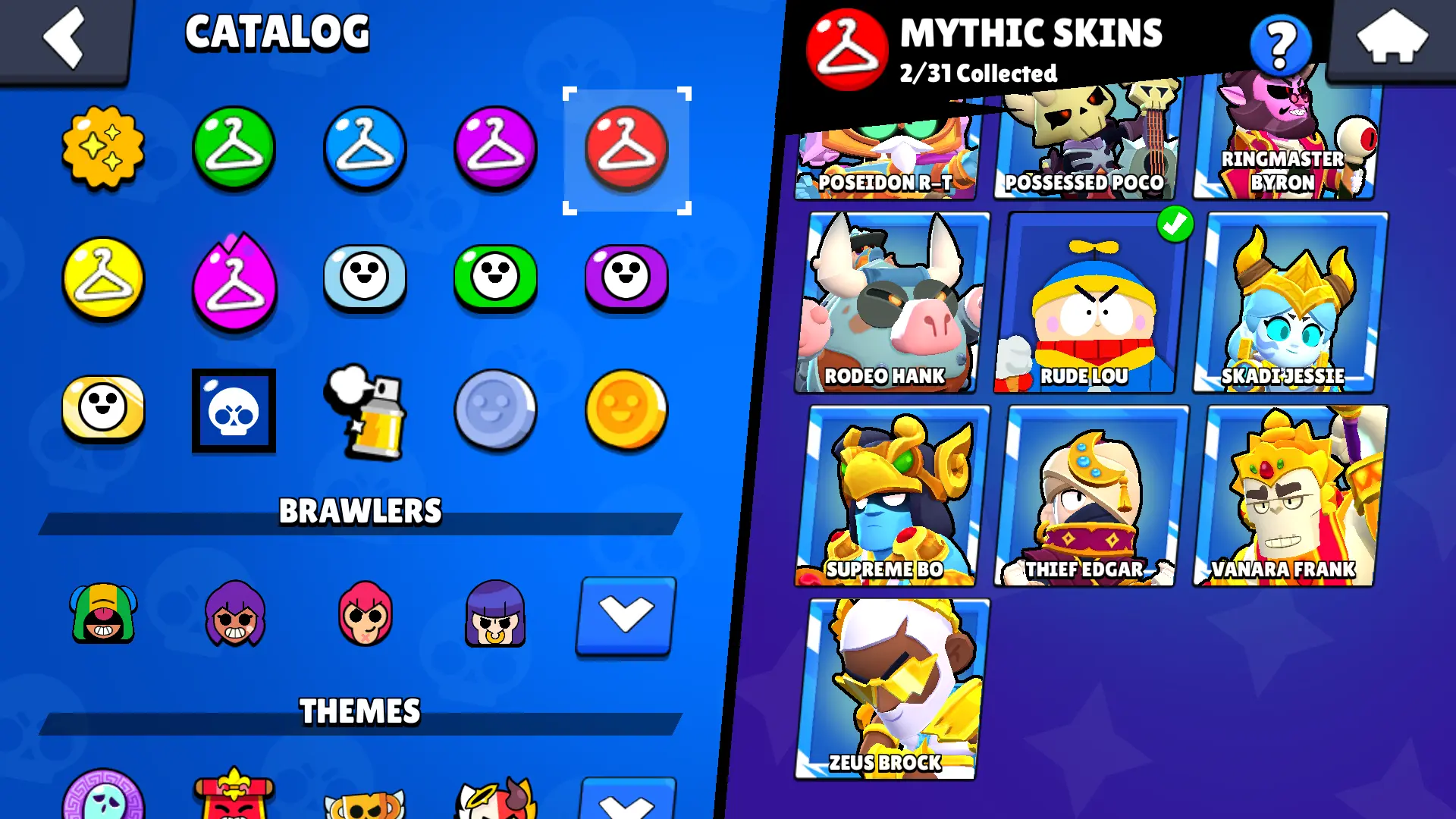 82 SKINS | 25342 TROPHIES | 8-BIT CLASSIC | ARCHVILLAIN BEA | AXL WILLOW | BAIKU EVE | BANDITA SHELLY | BARBARIAN KING BULL | BEACH BYRON | BIKER CARL | BOY SCOUT GUS | BUNNY PENNY | CAVEMAN FRANK | CLASSIC SHELLY | CONSTRUCTOR JACKY | 69 BRAWLERS