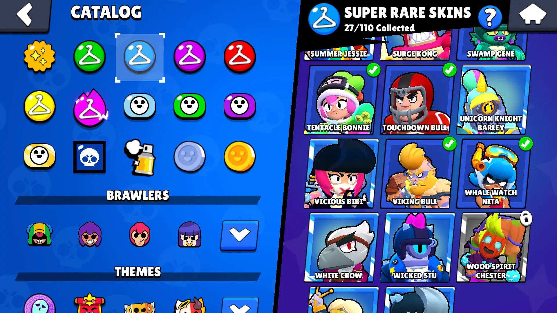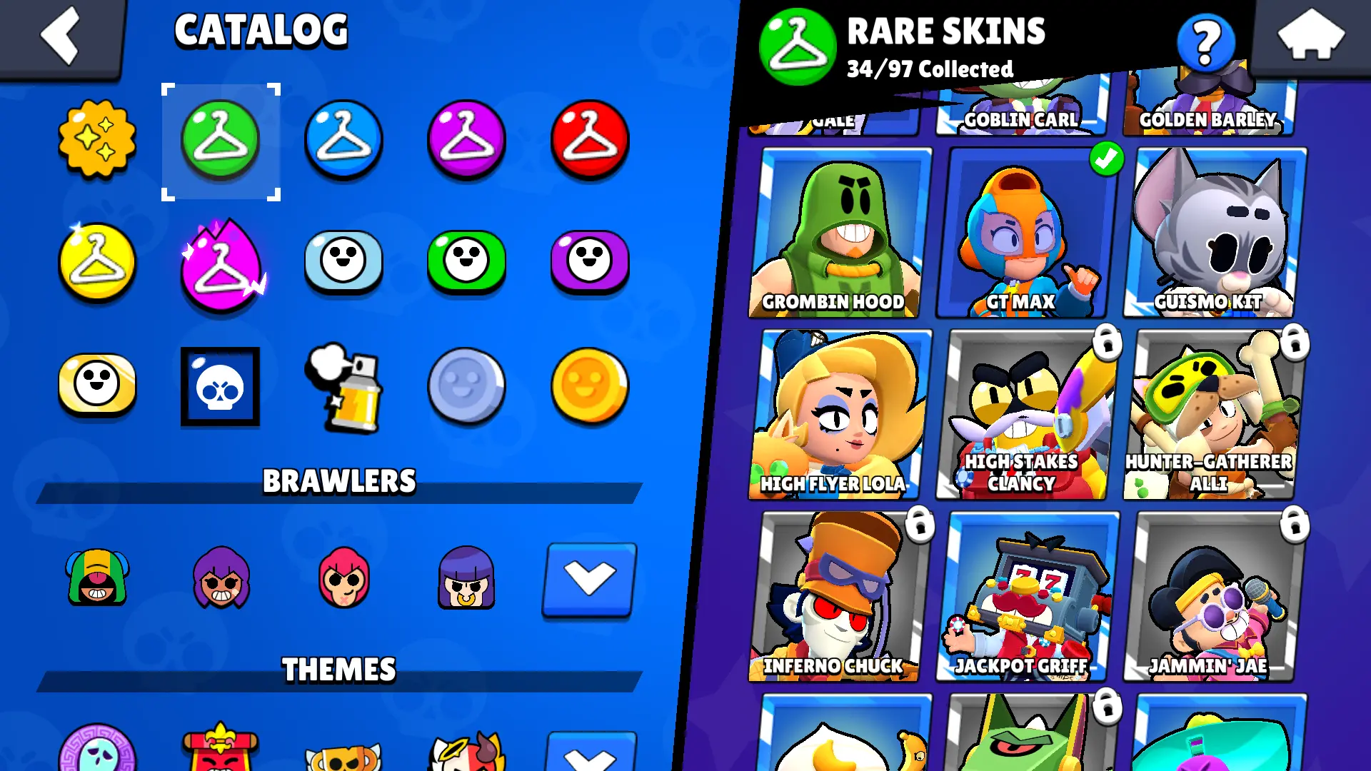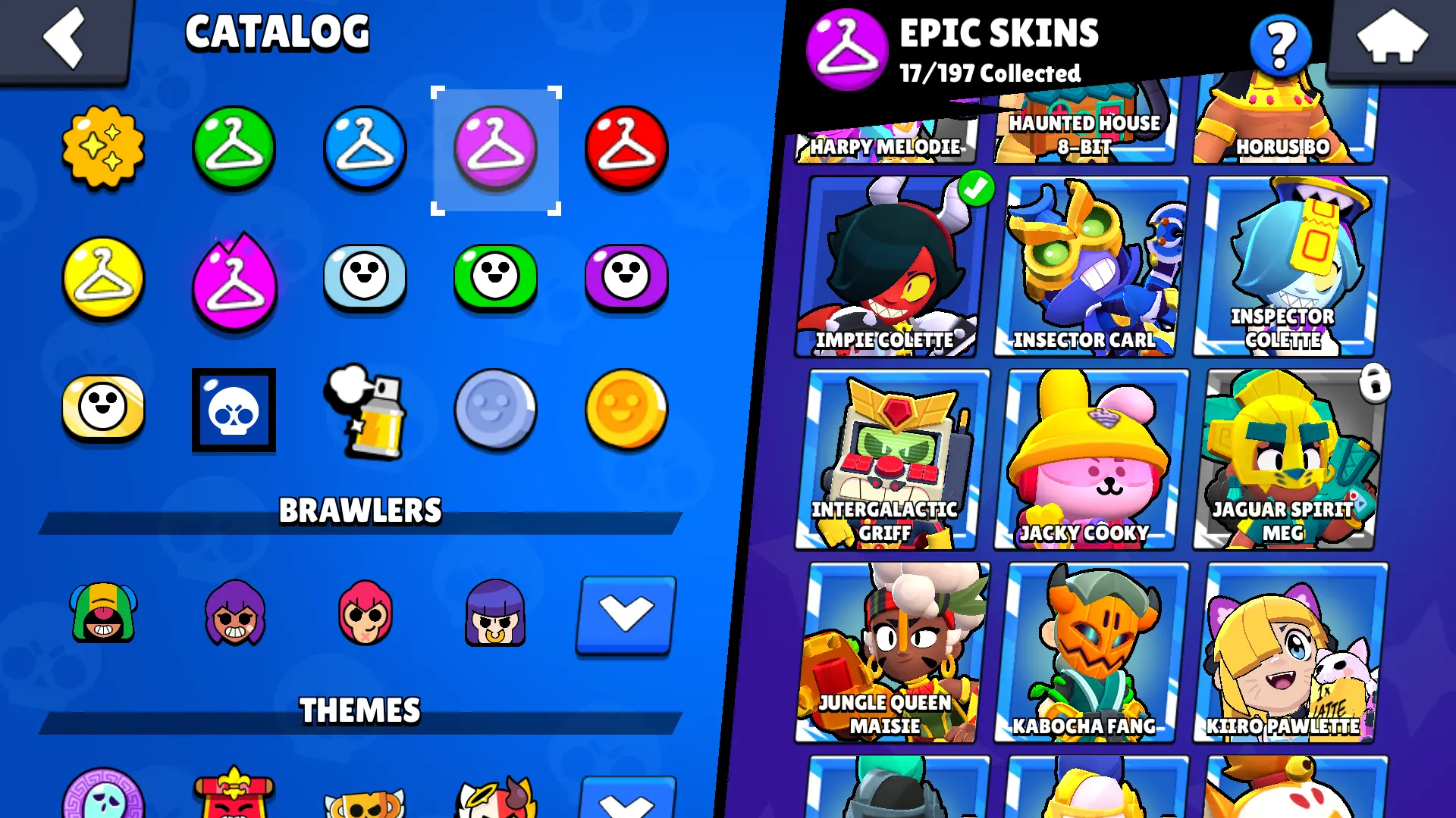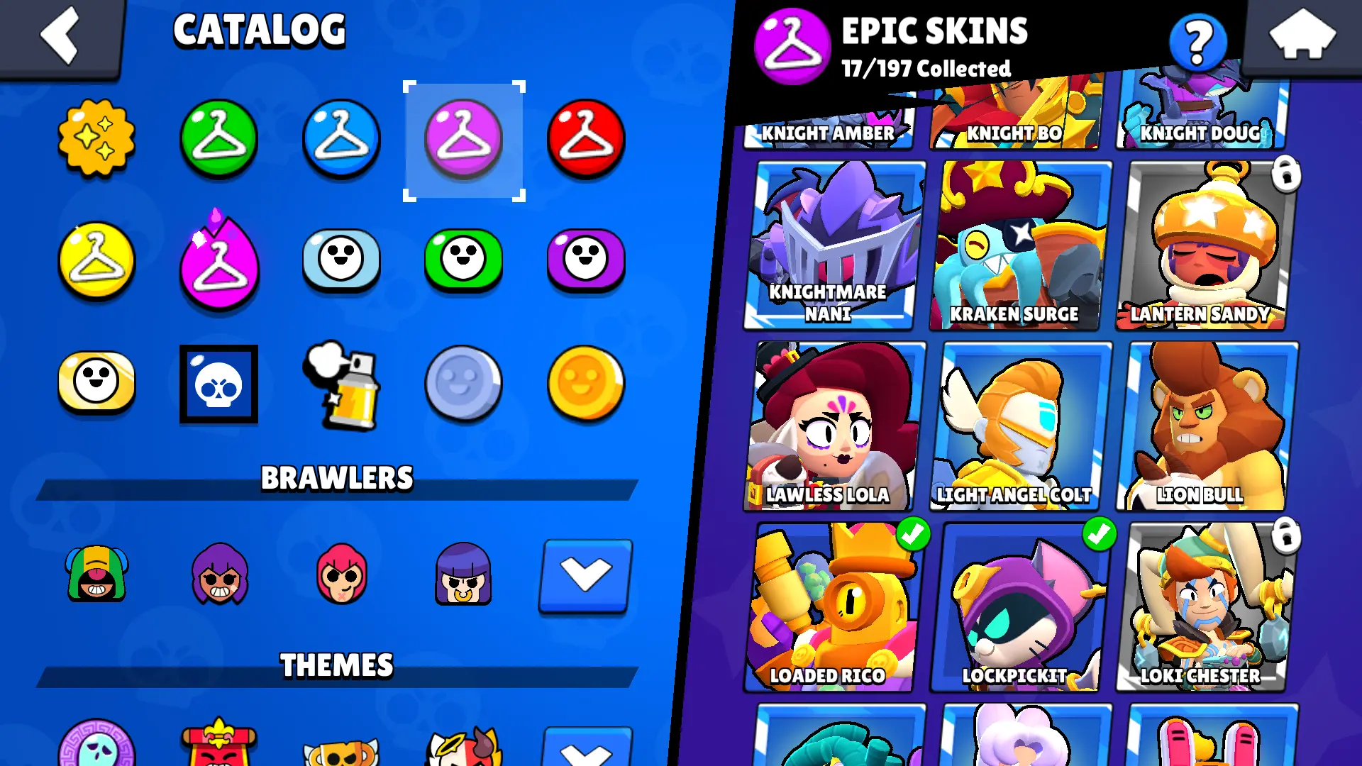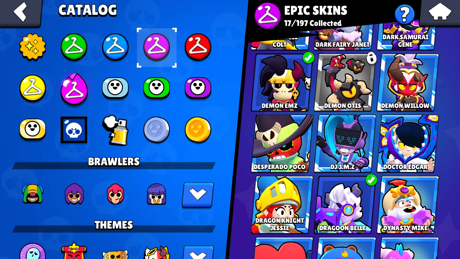 82 SKINS | 25342 TROPHIES | 8-BIT CLASSIC | ARCHVILLAIN BEA | AXL WILLOW | BAIKU EVE | BANDITA SHELLY | BARBARIAN KING BULL | BEACH BYRON | BIKER CARL | BOY SCOUT GUS | BUNNY PENNY | CAVEMAN FRANK | CLASSIC SHELLY | CONSTRUCTOR JACKY | 69 BRAWLERS