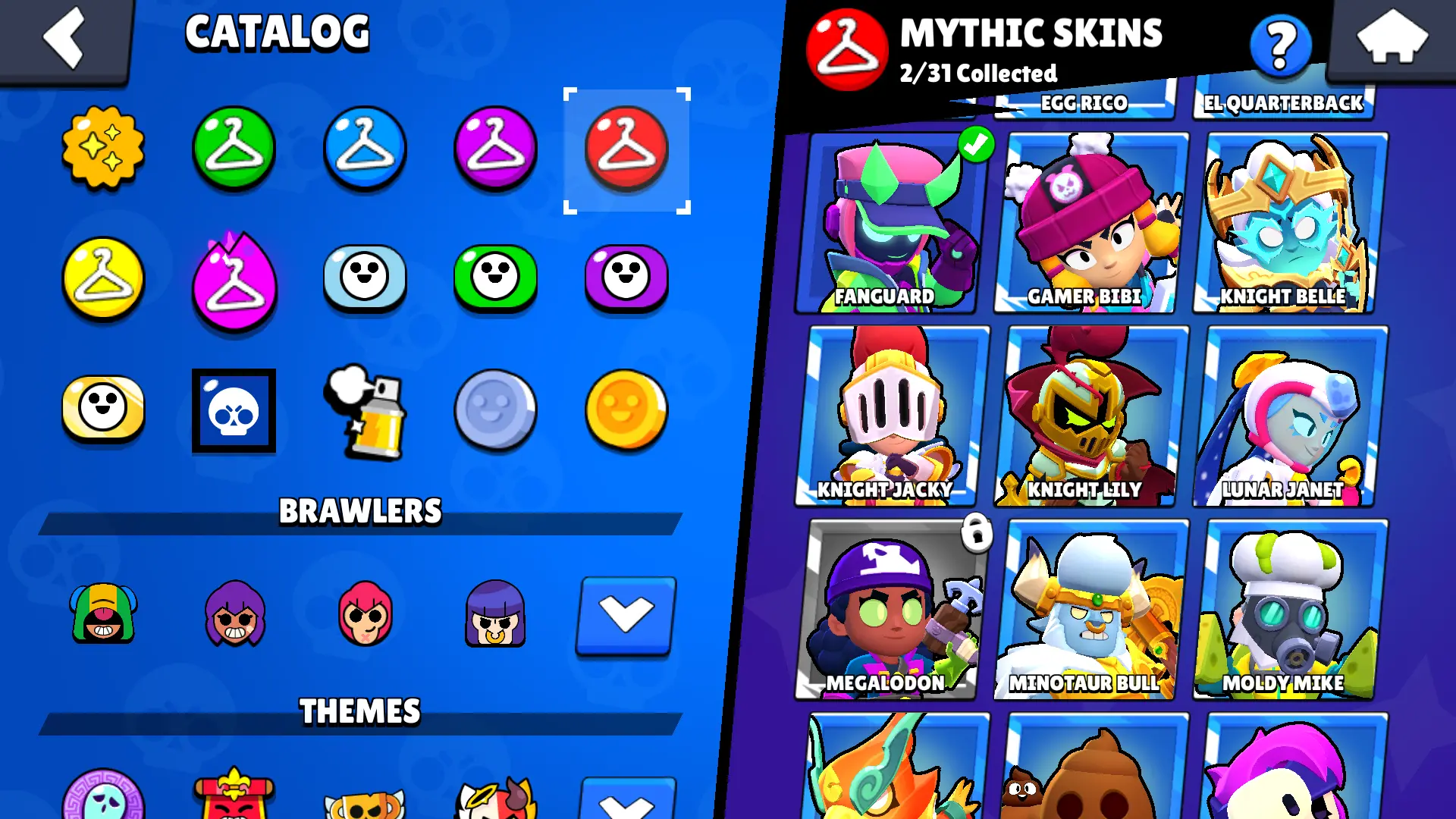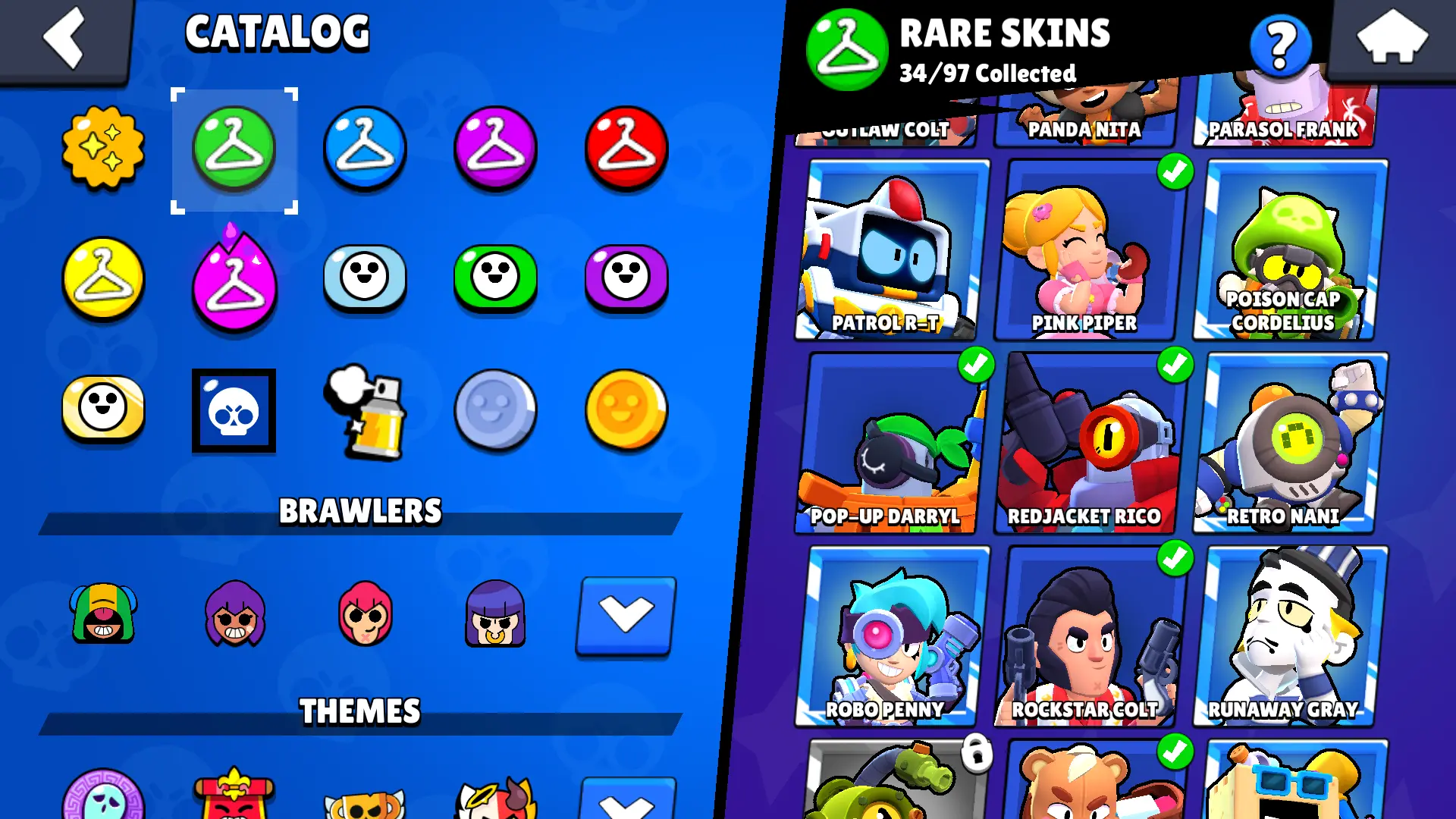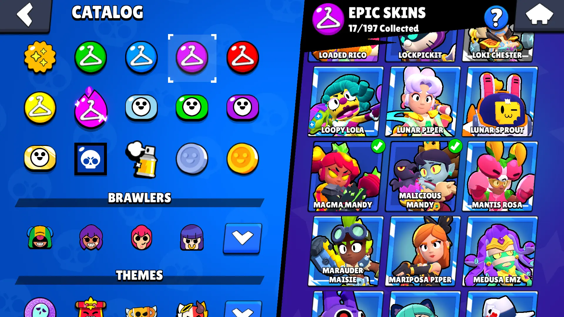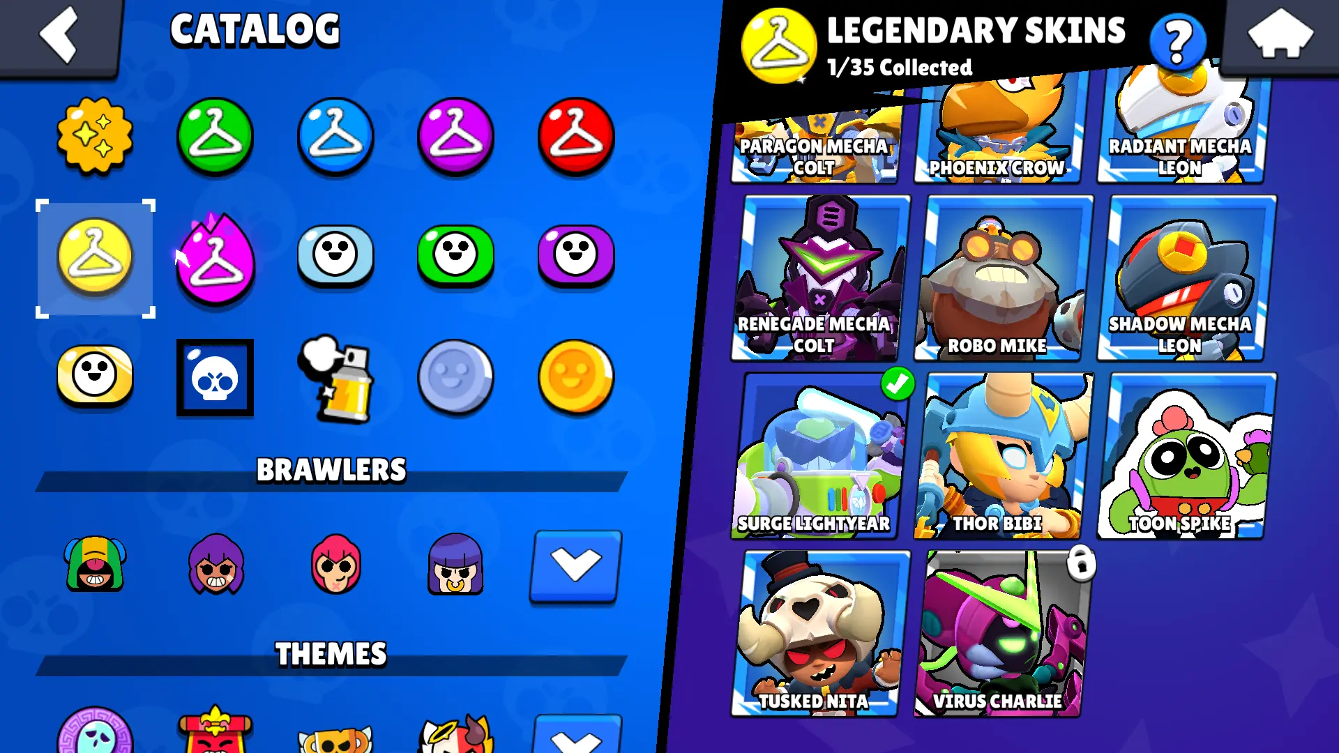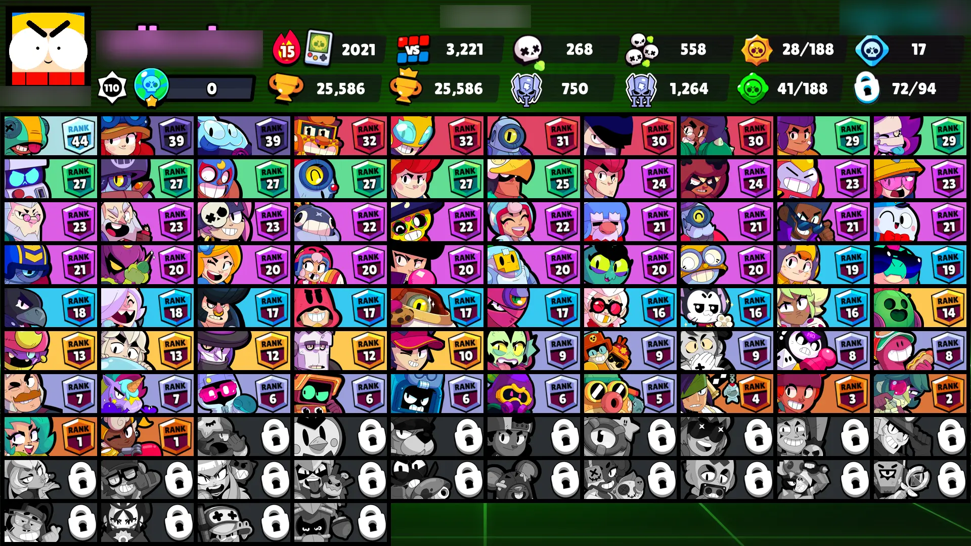 82 SKINS | 25342 TROPHIES | 8-BIT CLASSIC | ARCHVILLAIN BEA | AXL WILLOW | BAIKU EVE | BANDITA SHELLY | BARBARIAN KING BULL | BEACH BYRON | BIKER CARL | BOY SCOUT GUS | BUNNY PENNY | CAVEMAN FRANK | CLASSIC SHELLY | CONSTRUCTOR JACKY | 69 BRAWLERS