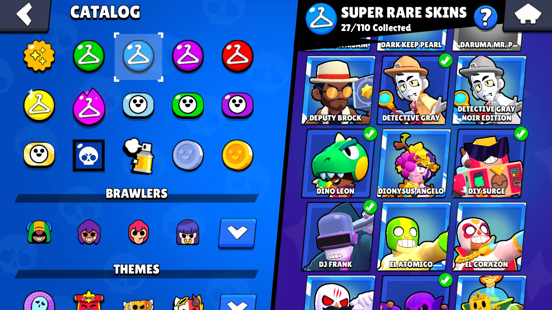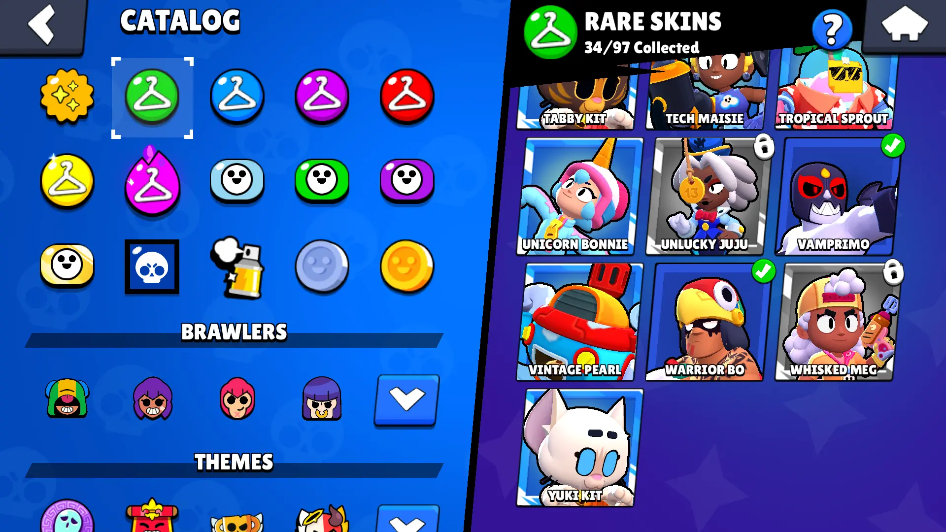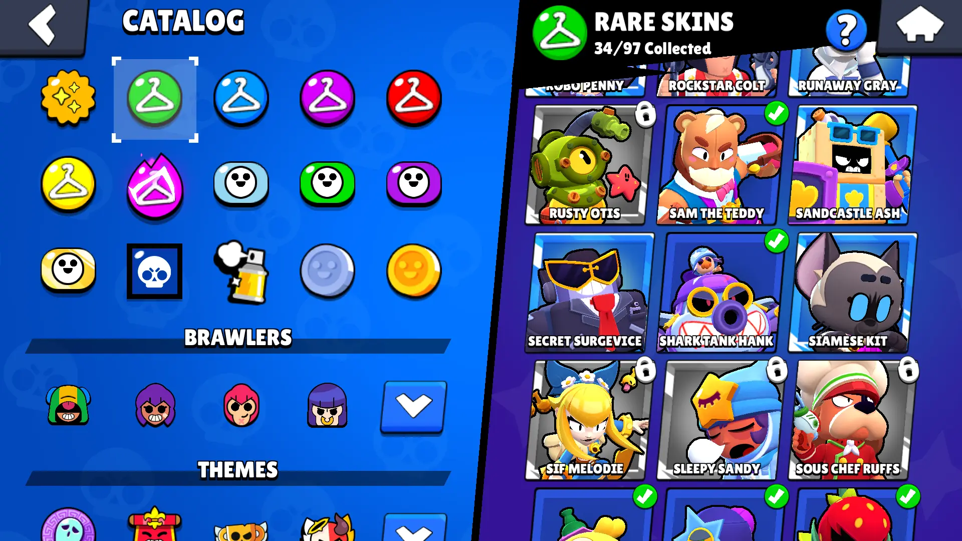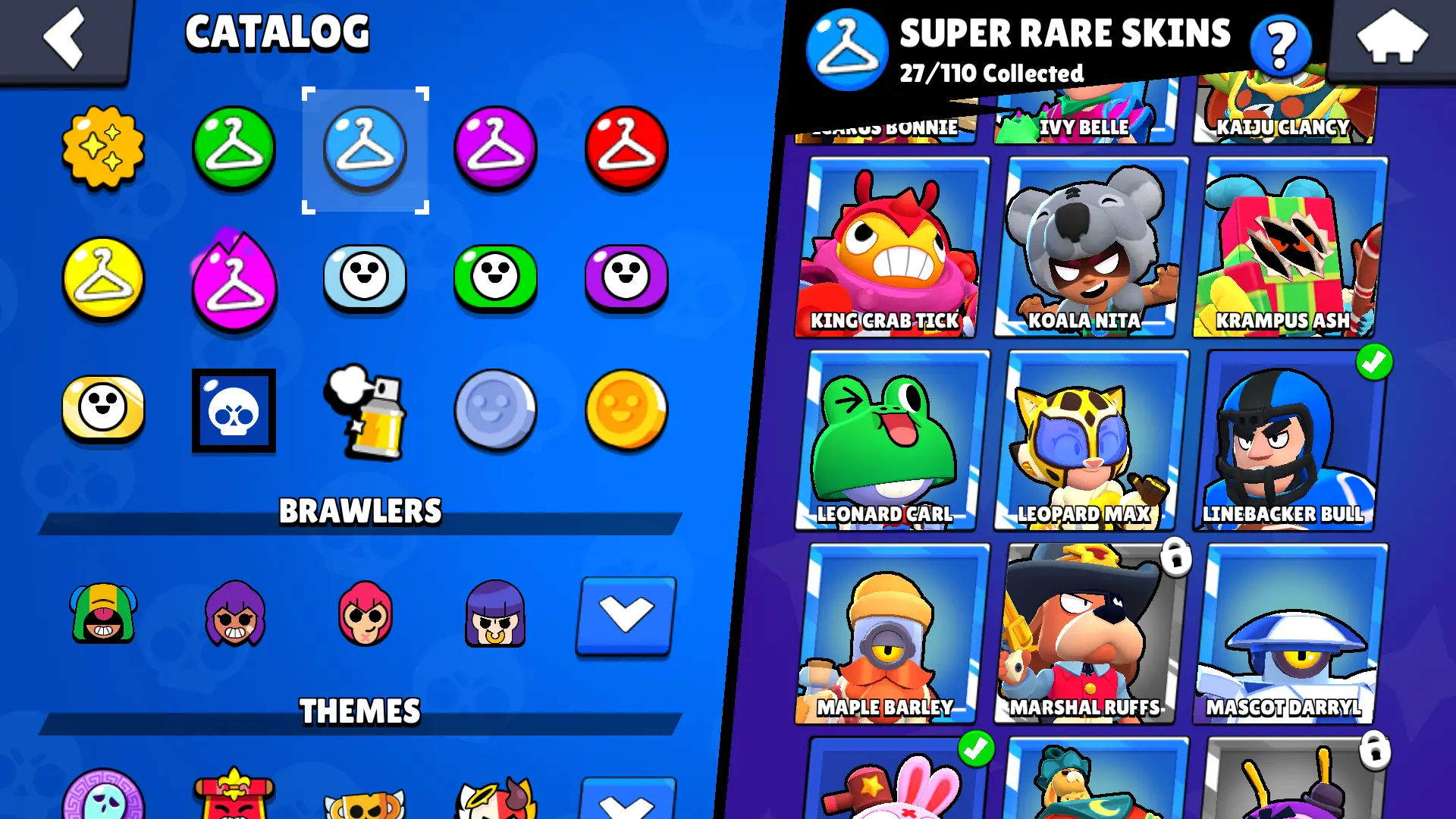 82 SKINS | 25342 TROPHIES | 8-BIT CLASSIC | ARCHVILLAIN BEA | AXL WILLOW | BAIKU EVE | BANDITA SHELLY | BARBARIAN KING BULL | BEACH BYRON | BIKER CARL | BOY SCOUT GUS | BUNNY PENNY | CAVEMAN FRANK | CLASSIC SHELLY | CONSTRUCTOR JACKY | 69 BRAWLERS