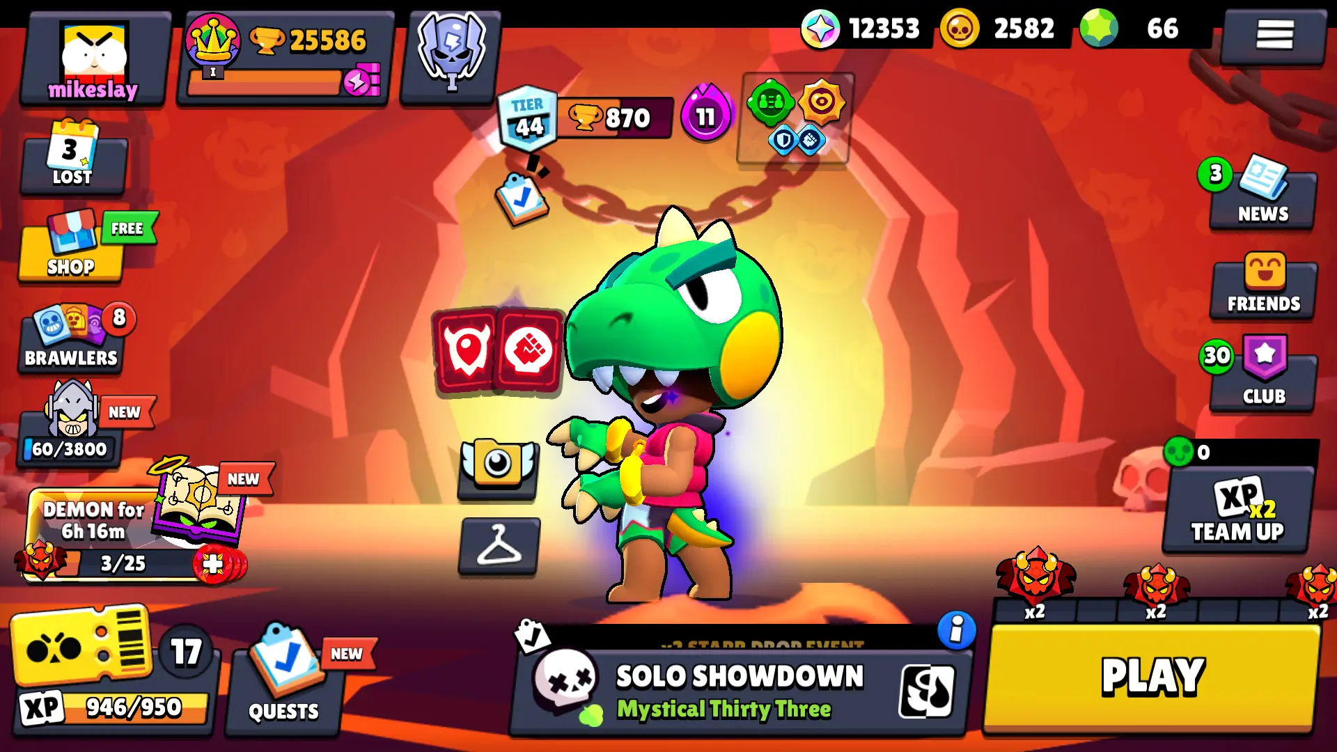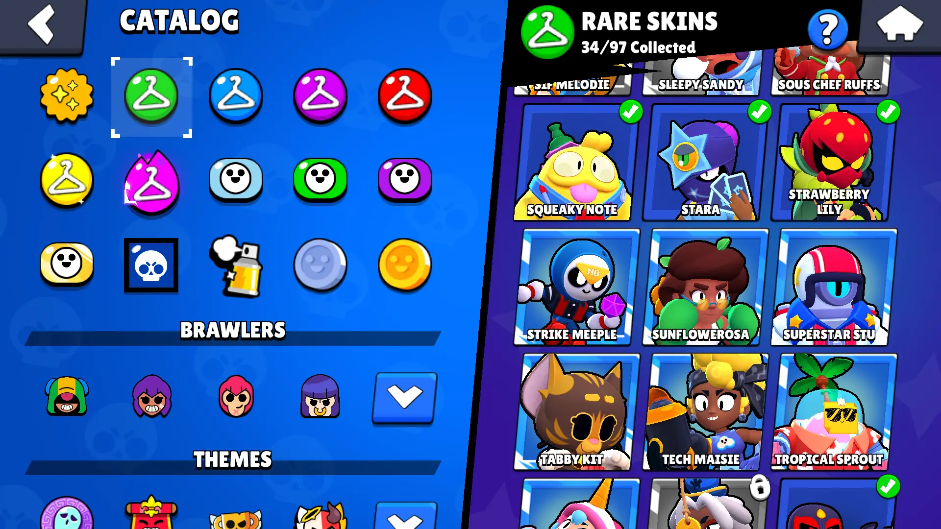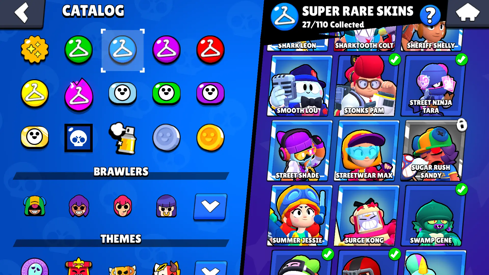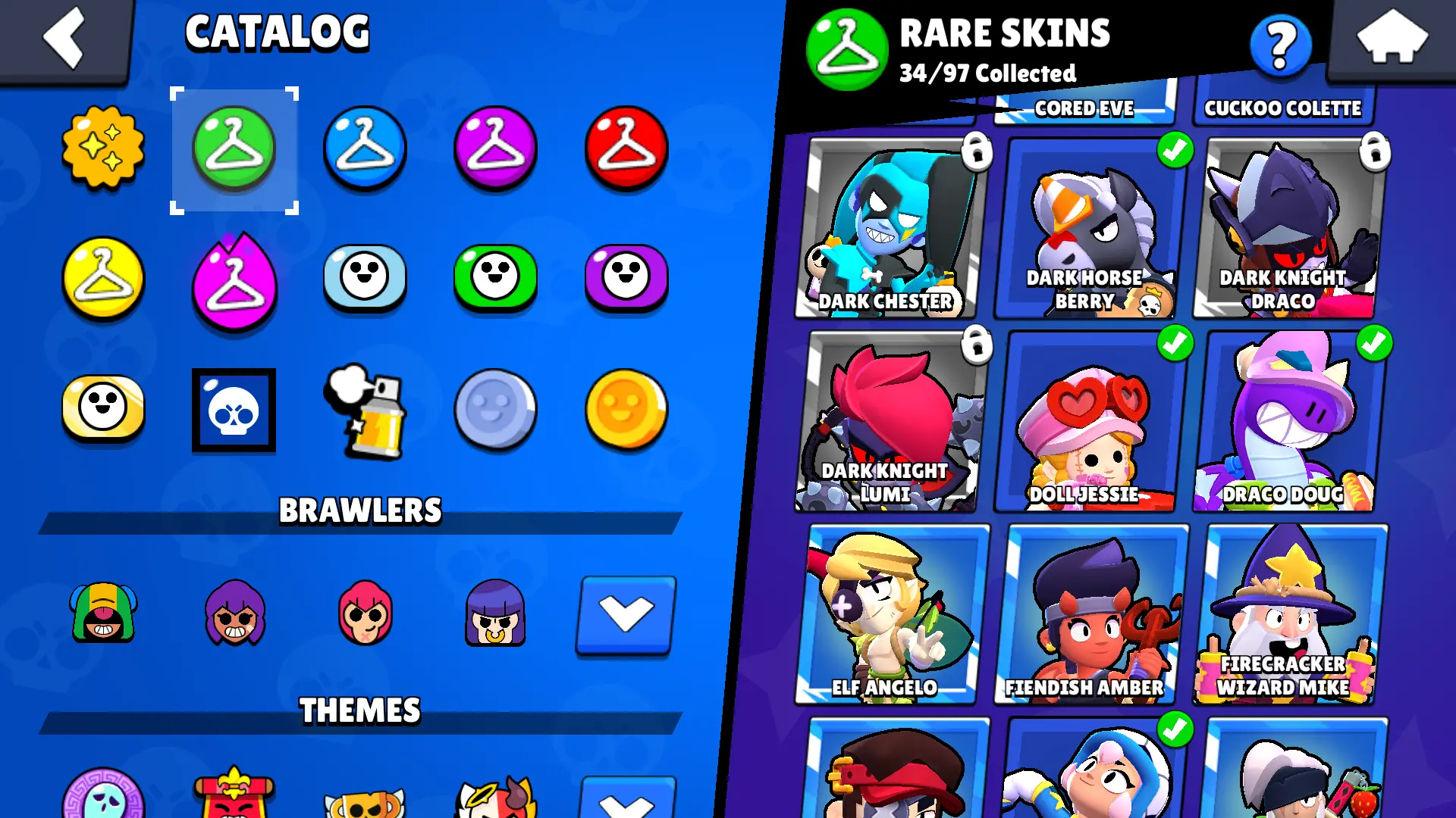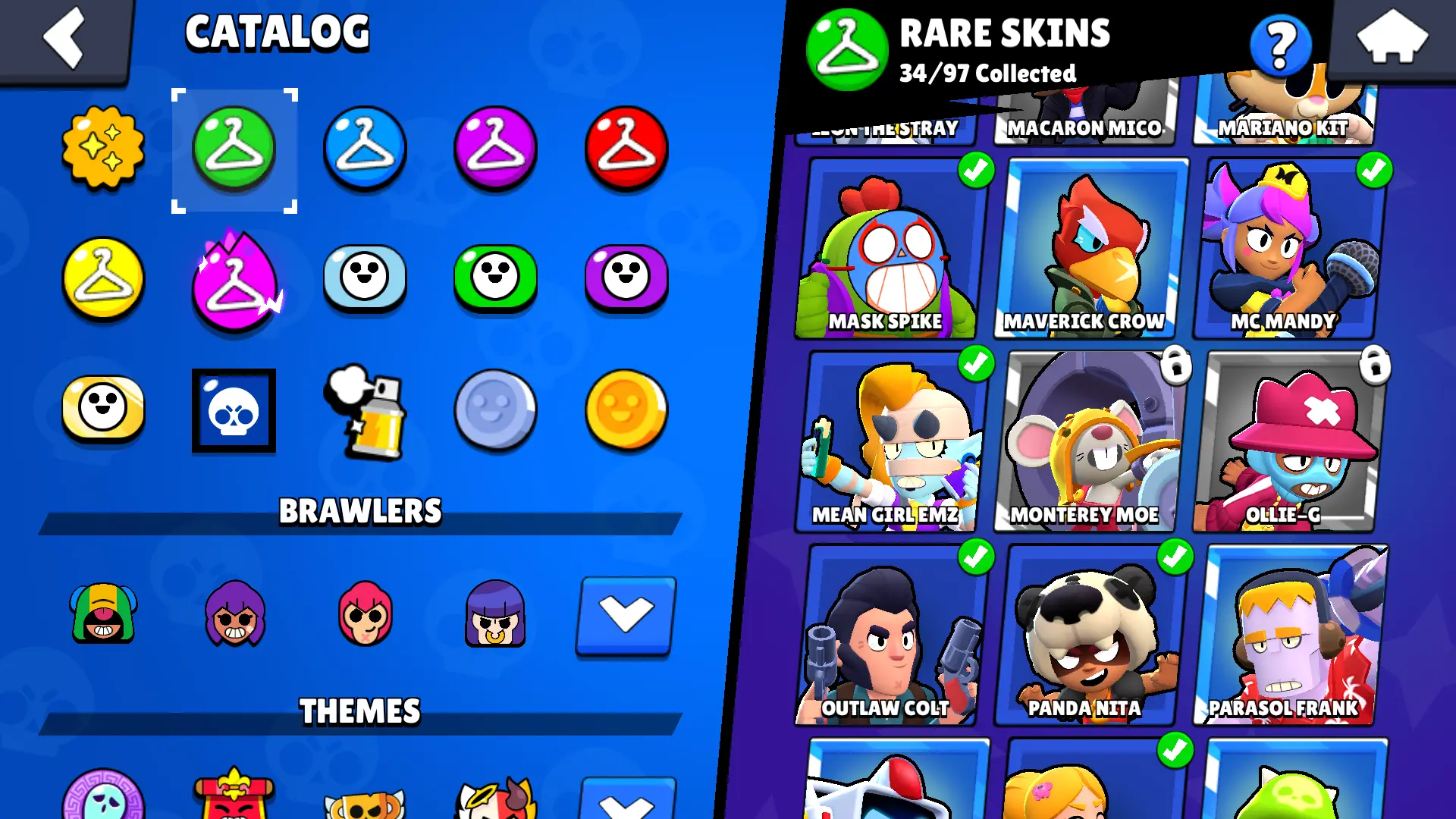 82 SKINS | 25342 TROPHIES | 8-BIT CLASSIC | ARCHVILLAIN BEA | AXL WILLOW | BAIKU EVE | BANDITA SHELLY | BARBARIAN KING BULL | BEACH BYRON | BIKER CARL | BOY SCOUT GUS | BUNNY PENNY | CAVEMAN FRANK | CLASSIC SHELLY | CONSTRUCTOR JACKY | 69 BRAWLERS