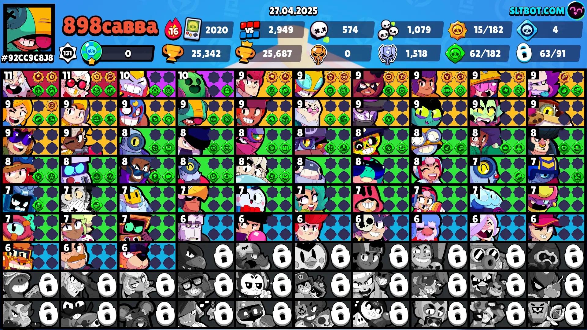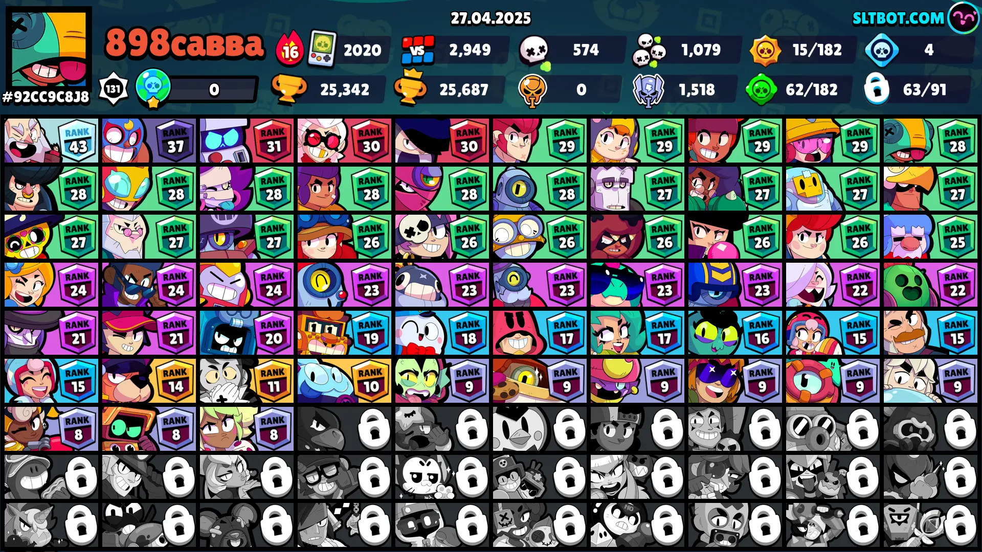 35 SKINS 🩵 25.342 TROPHIES 🏆 63 BRAWLERS 🧸 HYPERCHARGED 🩸 2 MAX BRAWLERS 🩷 BELLE GOLDHAND 🩵 CLASSIC SHELLY🩵 GUNSLINGER COLT 🩵 DESPERADO POCO 🩵 BIKER CARL 🩵 VALKYRIE JANET 🎀