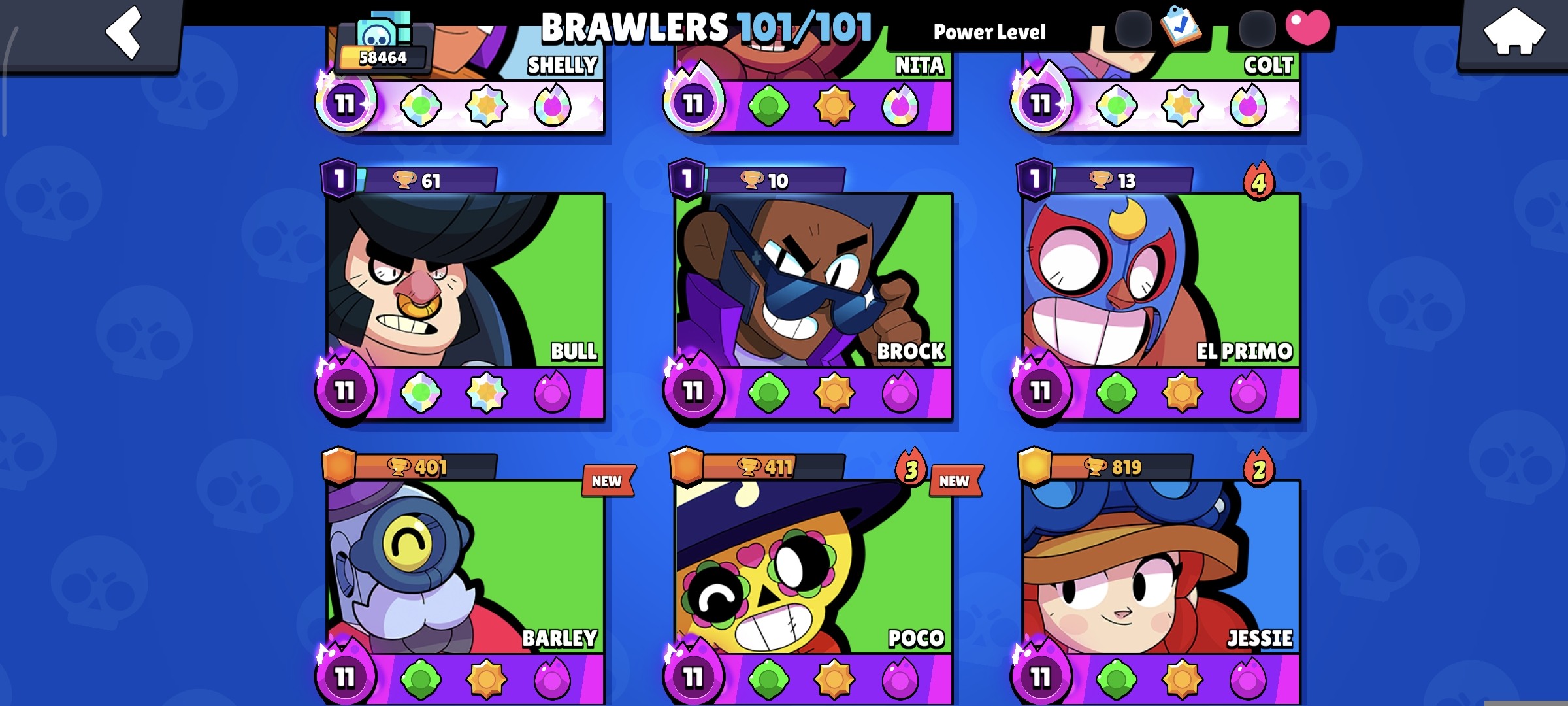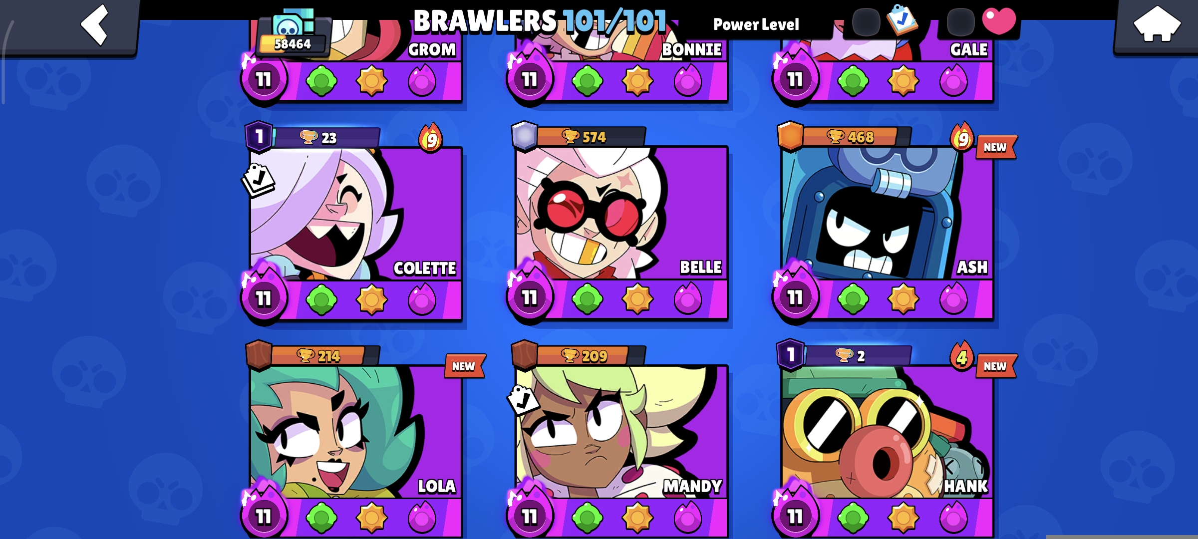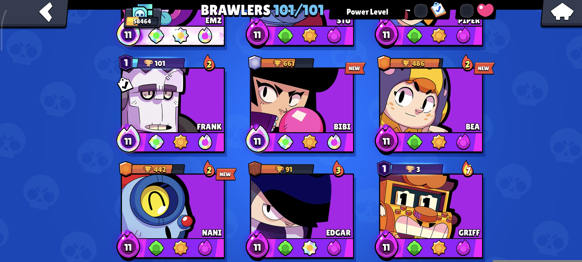 BS Account Allmost Max 🥶 Trophy 58464 🥶 Max Brawlers 89 🥶 HC 88 🥶 Brawlers 101/101 🥶 Skins 440+ 🥶 Change name on 🥶 guaranteed Account 🥶