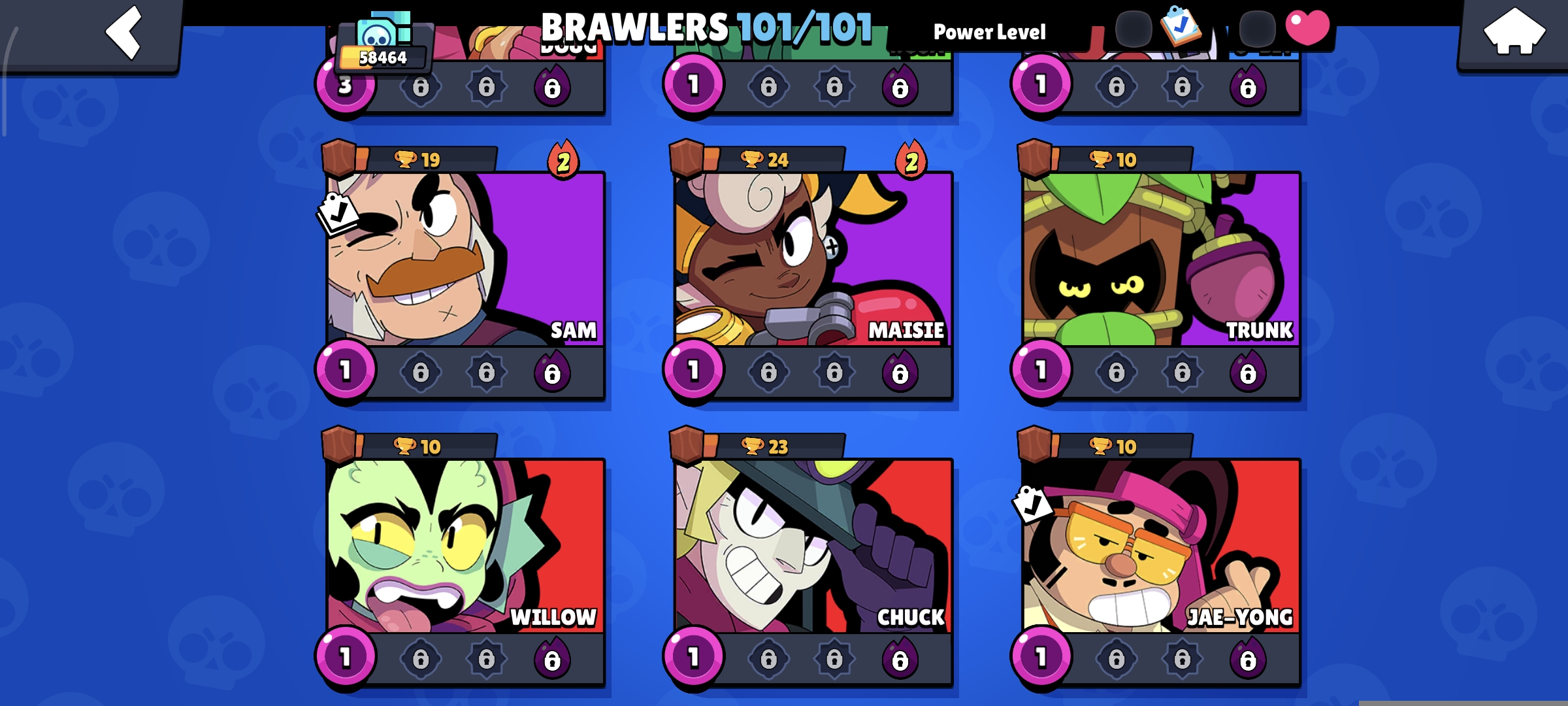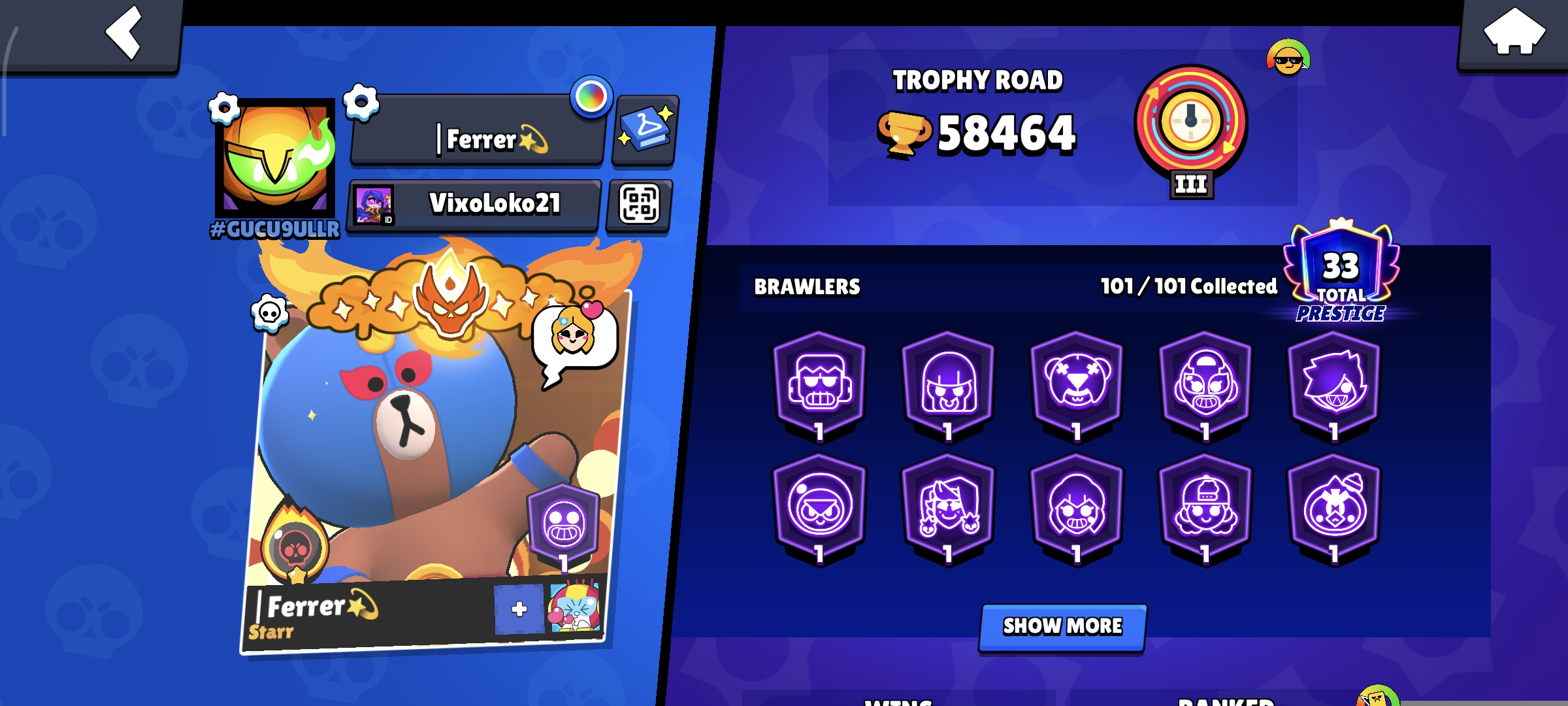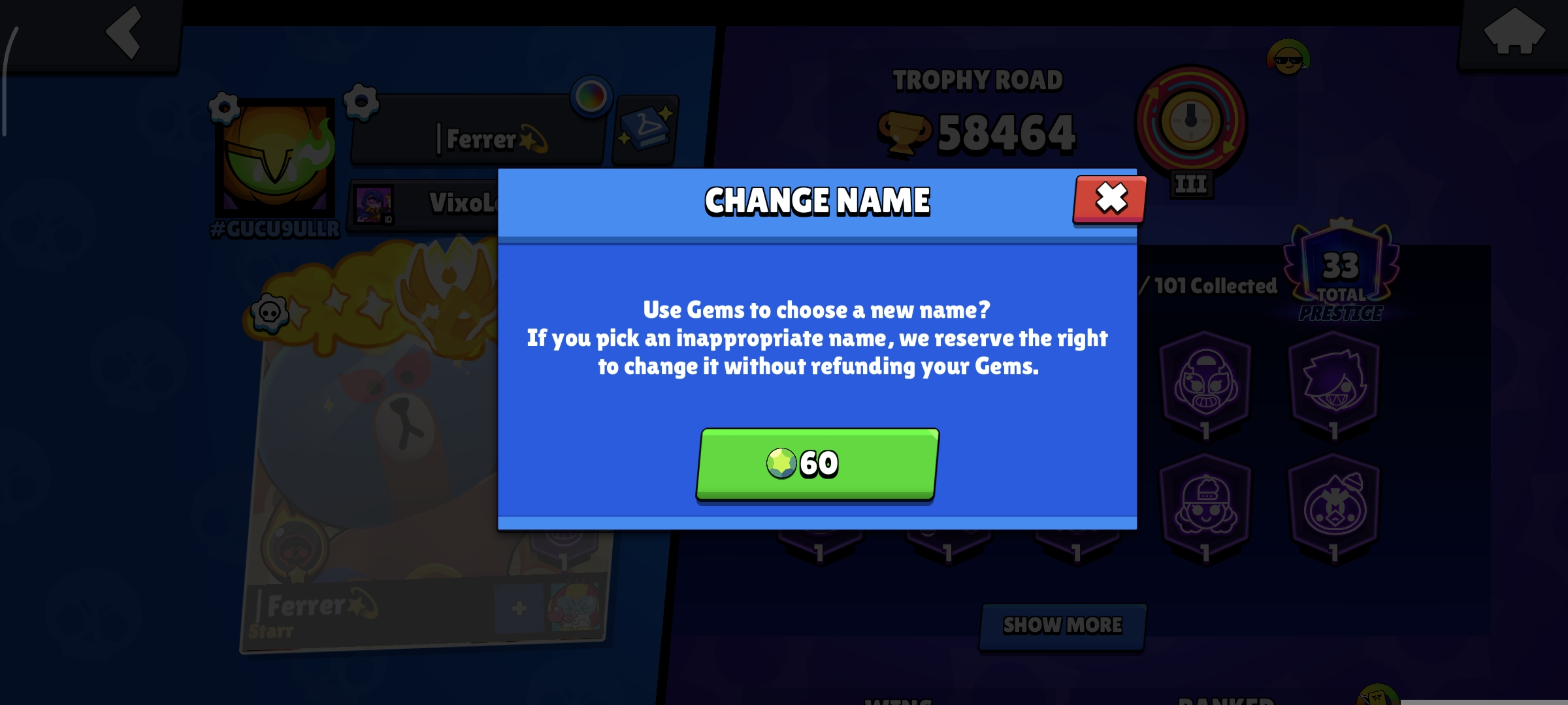 BS Account Allmost Max 🥶 Trophy 58464 🥶 Max Brawlers 89 🥶 HC 88 🥶 Brawlers 101/101 🥶 Skins 440+ 🥶 Change name on 🥶 guaranteed Account 🥶