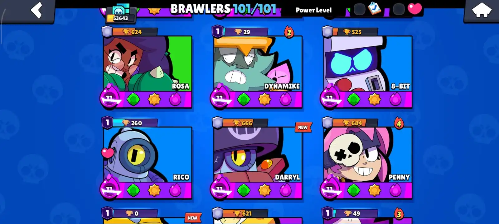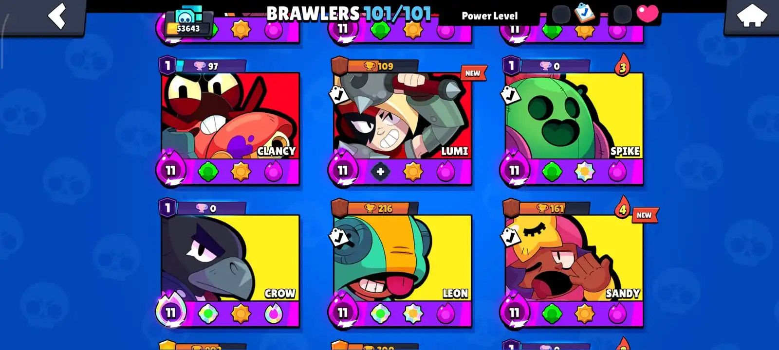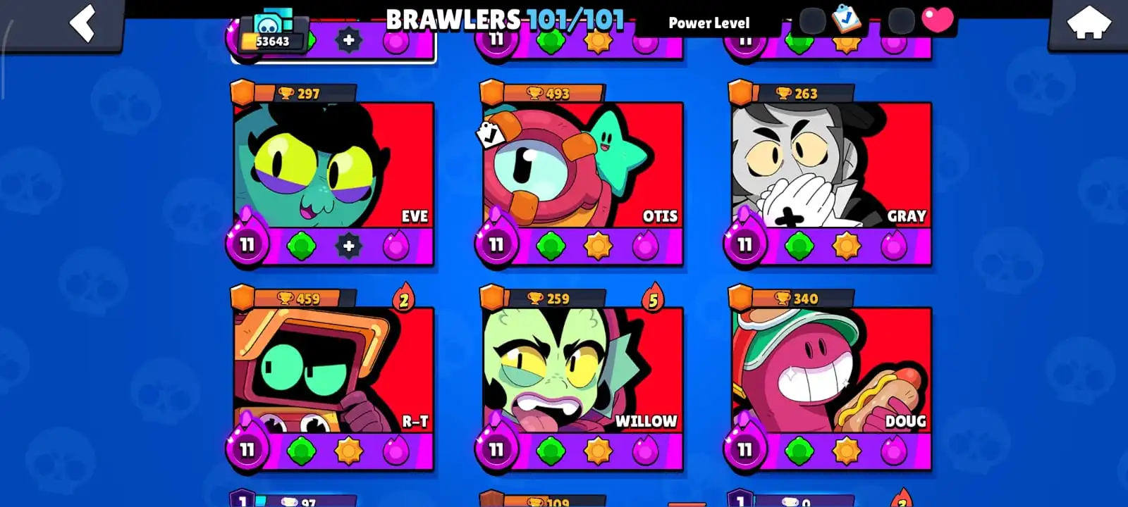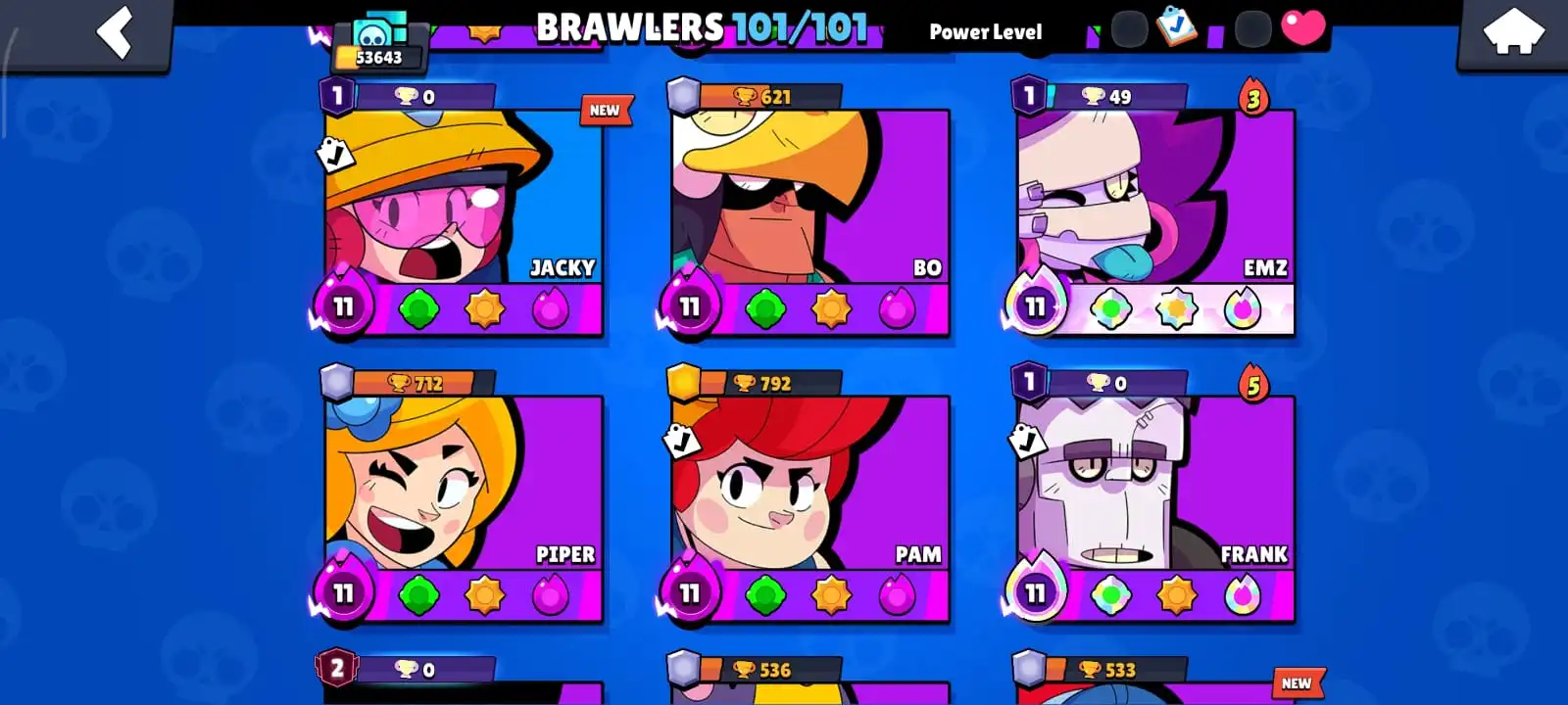 cheapest🔥74 max brawl🔥55 hypercharged🔥382 skins🔥trophy 53643🔥full access account🔥