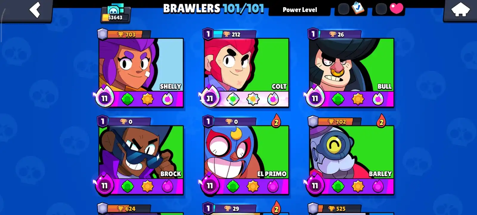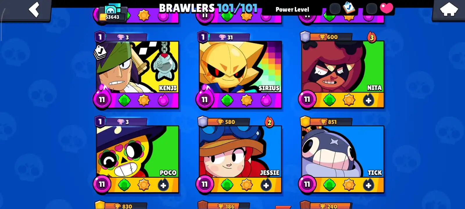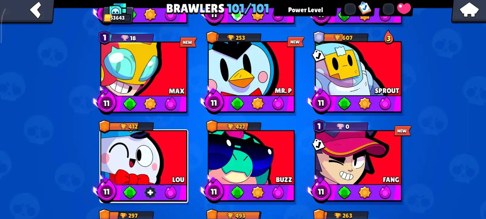 cheapest🔥74 max brawl🔥55 hypercharged🔥382 skins🔥trophy 53643🔥full access account🔥