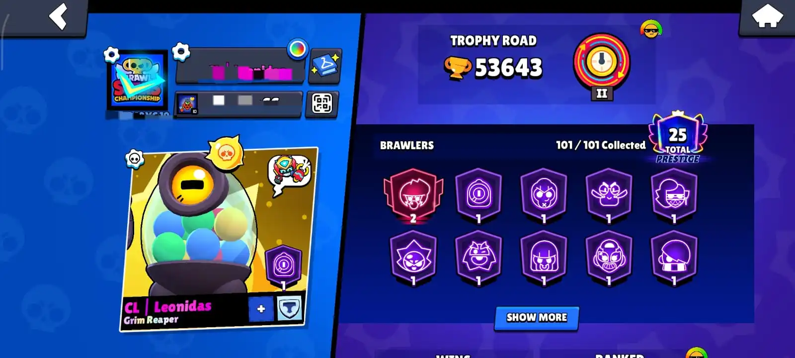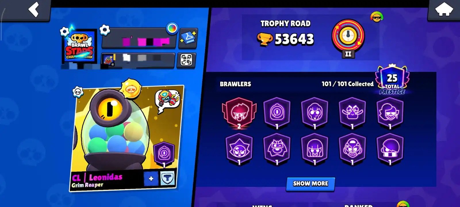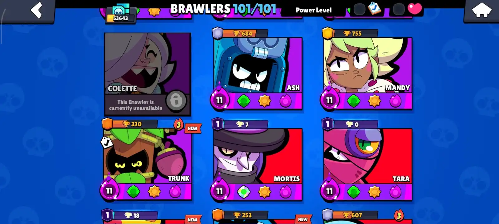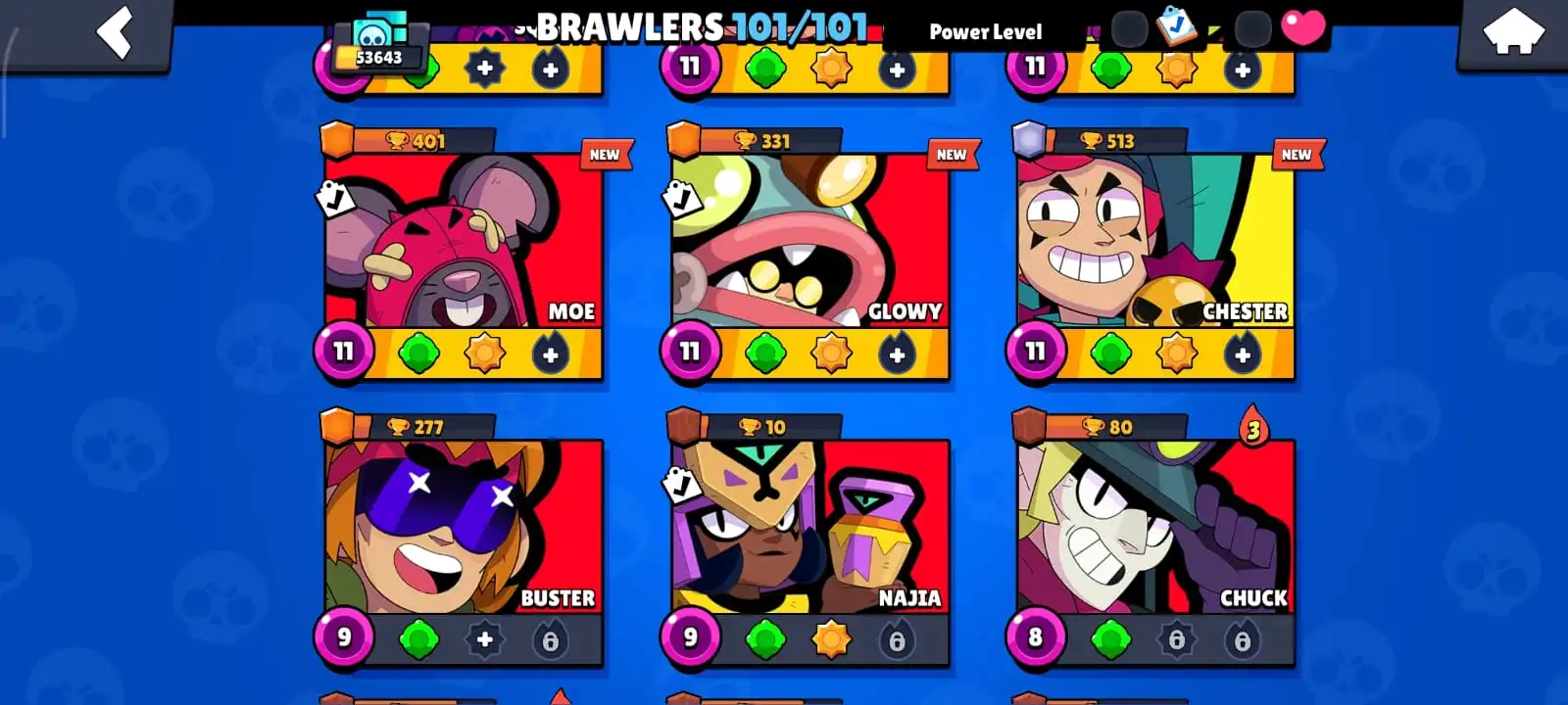 cheapest🔥74 max brawl🔥55 hypercharged🔥382 skins🔥trophy 53643🔥full access account🔥