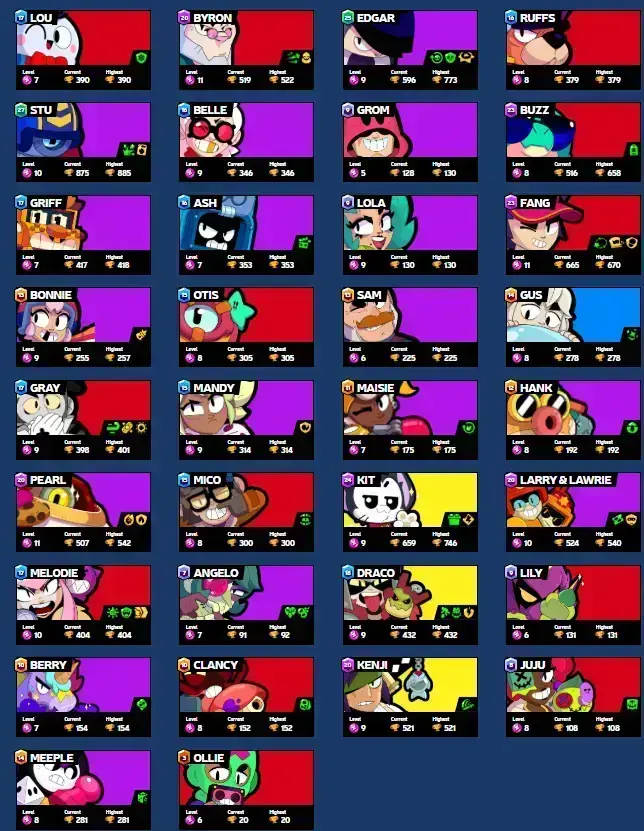 GEMS SPENT 7571 | 6 MAX LVL BRAWLERS | 89 SKINS | KNIGHT MARE NANI | KITBOXER | INSPECTOR COLETTE | FEROCIOUS FANG | ELDR FENRIR BUZZ | DEMON EMZ | DEMON OTIS | BORN BAD BUZZ | PINKU PAWLETTE | RUI SHOU NITA | SUPER RANGER BROCK(B