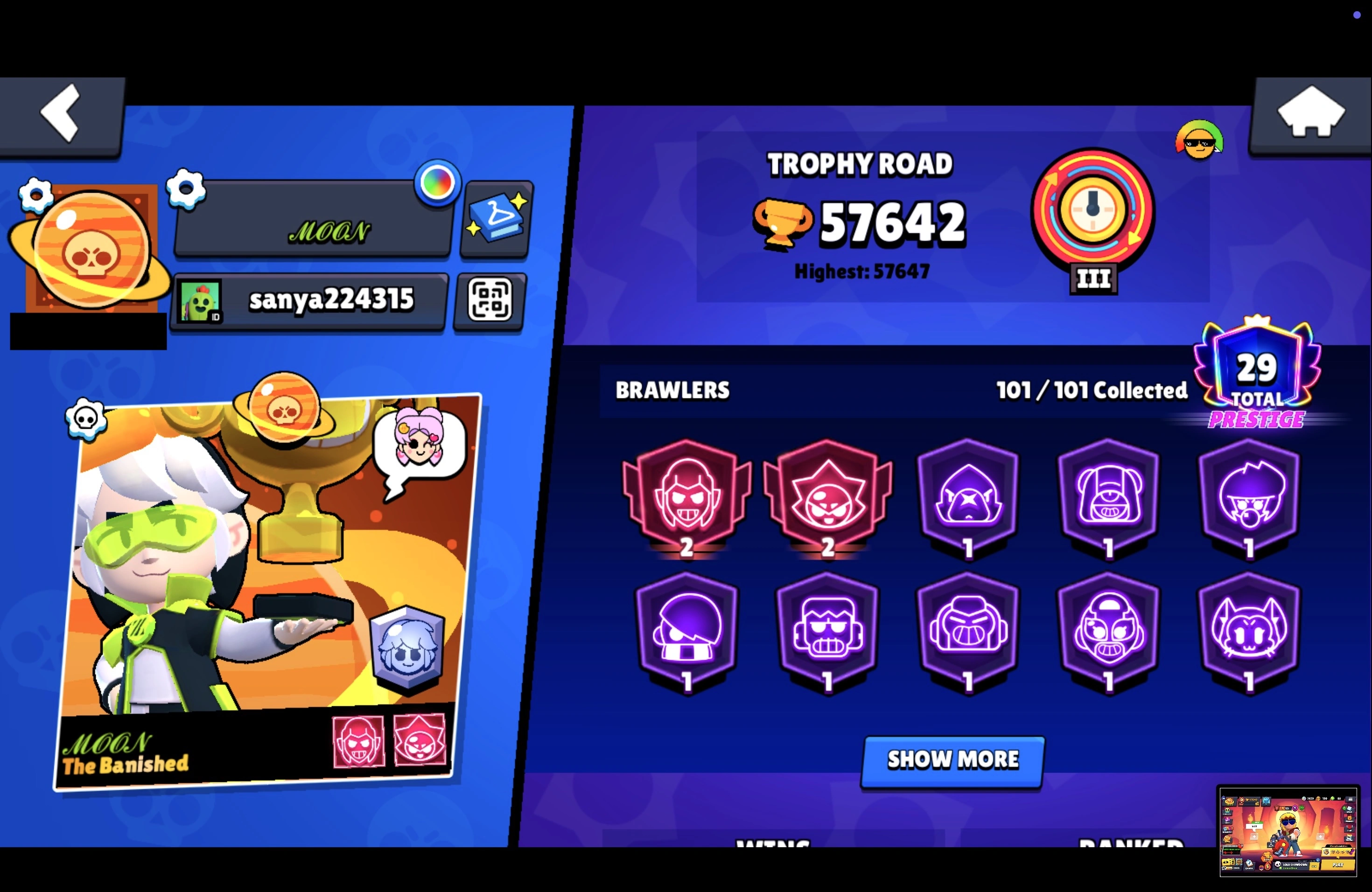 MORTIS ⸱ SIRIUS 2 PRESTIGE ⭐ 333 SKINS ⭐ 57.600 TROPHY ⭐ 101 BRAWLERS ⭐ 32 HYPERCHARGED ⭐ 35 MAXED BRAWLERS ⭐ 29 PRESTIGE ⭐ 21 BUFFIES ⭐ CHAINSAW BUSTER ⭐ DARK LORD SPIKE ⭐ CORSAIR COLT ⭐ LUNAR PIPER ⭐ MIDORI PAWLETTE ⭐ LEGENDARY ⭐ 50K