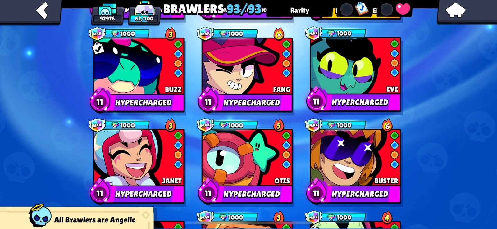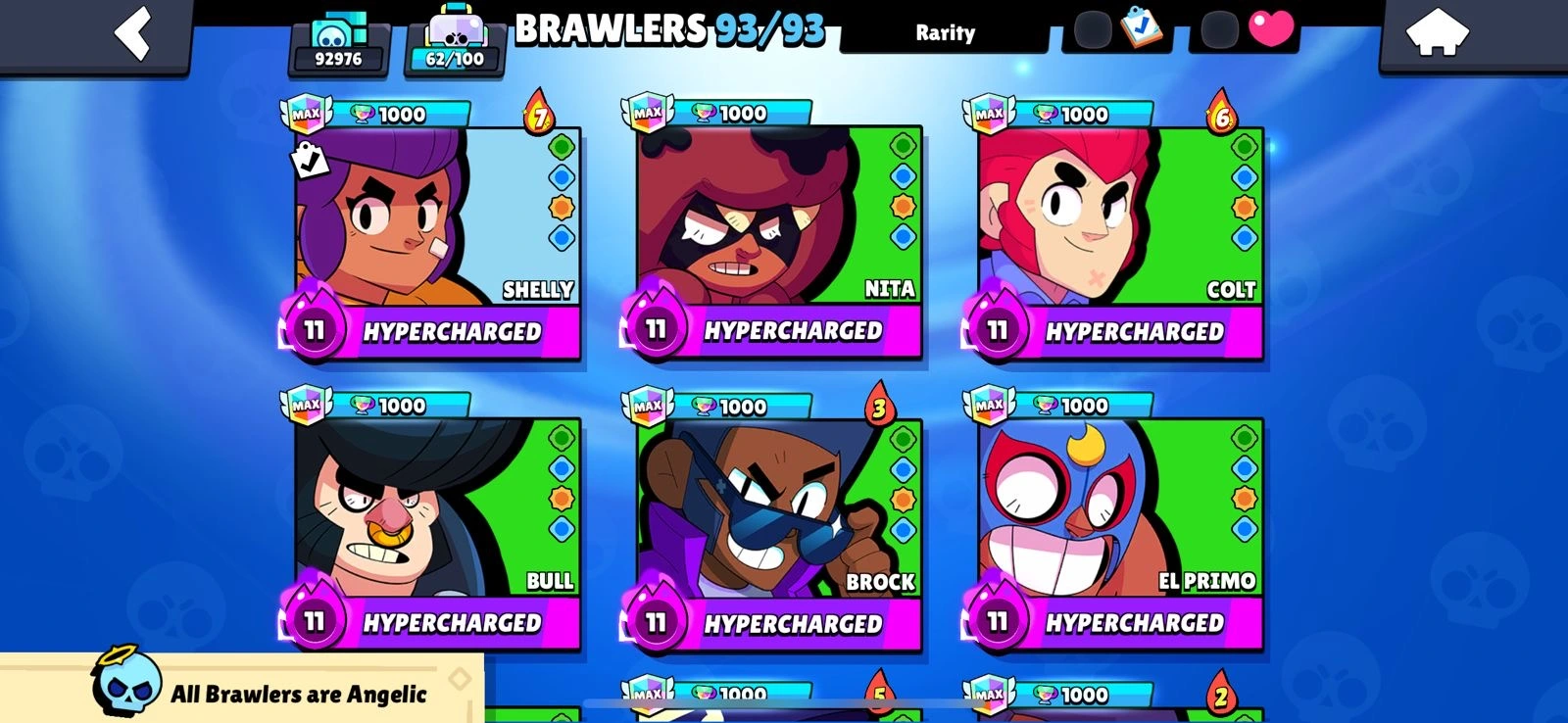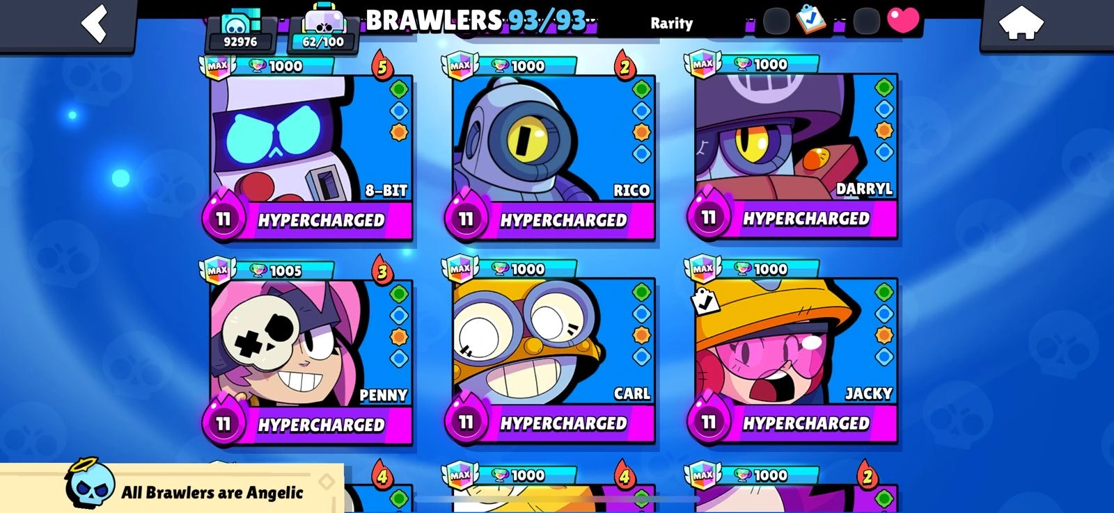 Rarest 🔥BS Allmaxeed 100%🔥Max Brawlers🔥Max Hypercharge🔥93K Trophies🔥250+ Skins🔥Acces Full🔥Cheapest and Safe Accountt