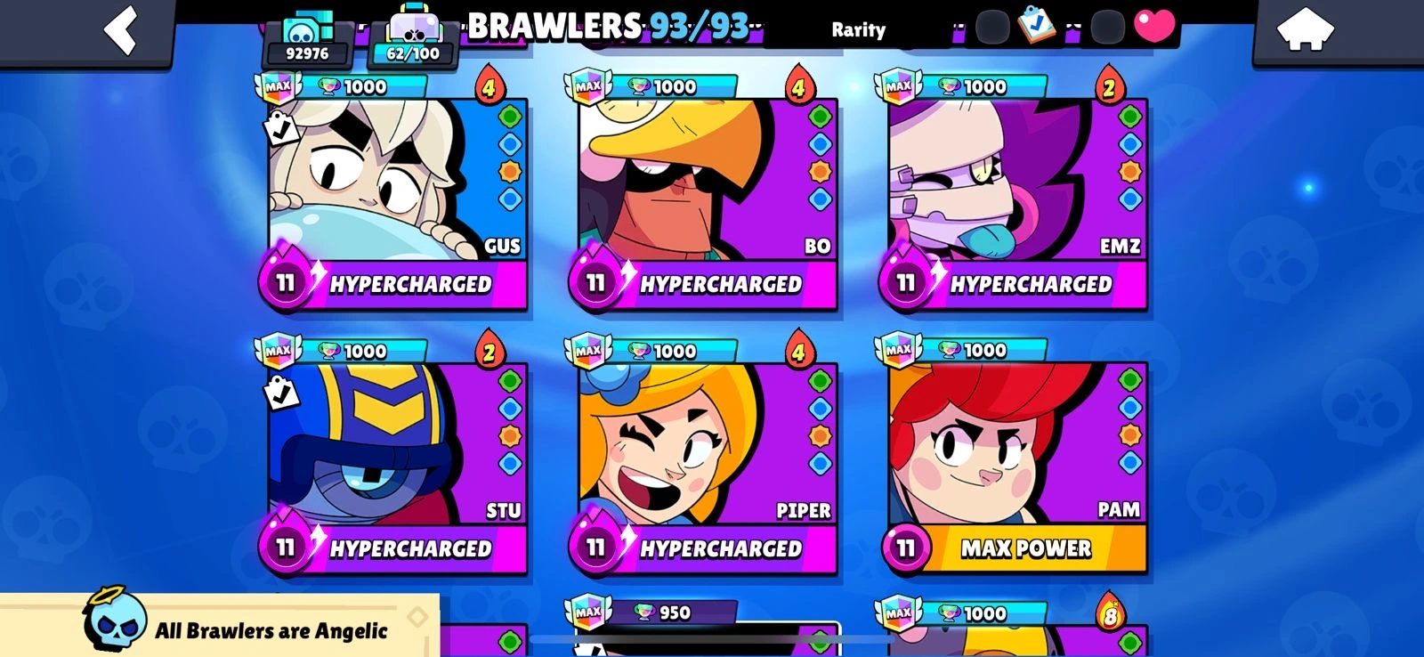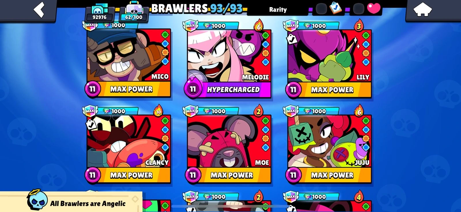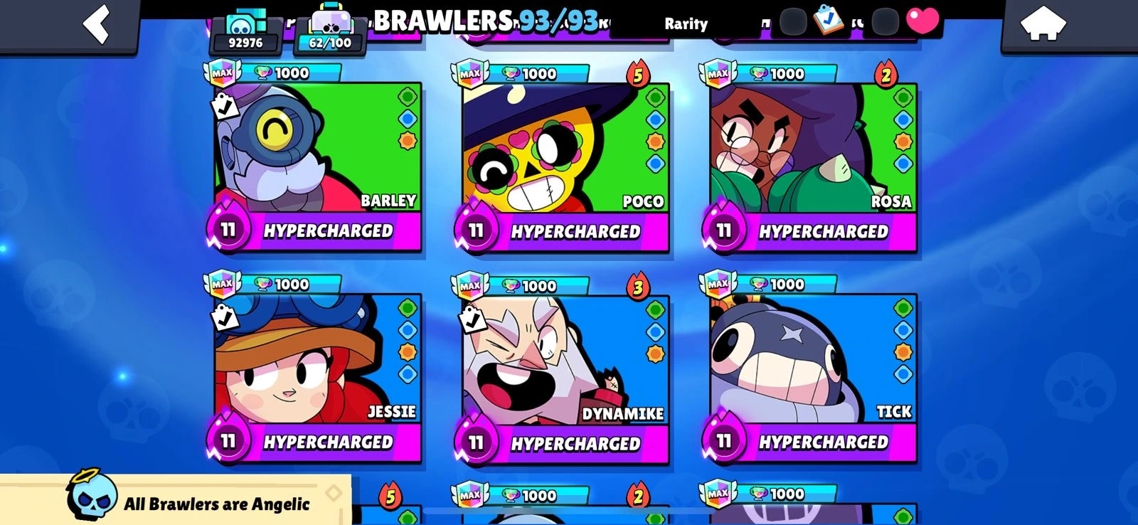 Rarest 🔥BS Allmaxeed 100%🔥Max Brawlers🔥Max Hypercharge🔥93K Trophies🔥250+ Skins🔥Acces Full🔥Cheapest and Safe Accountt