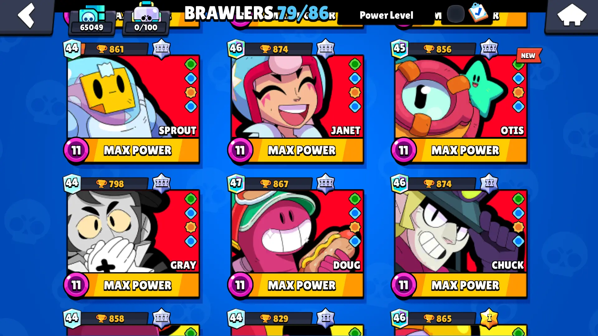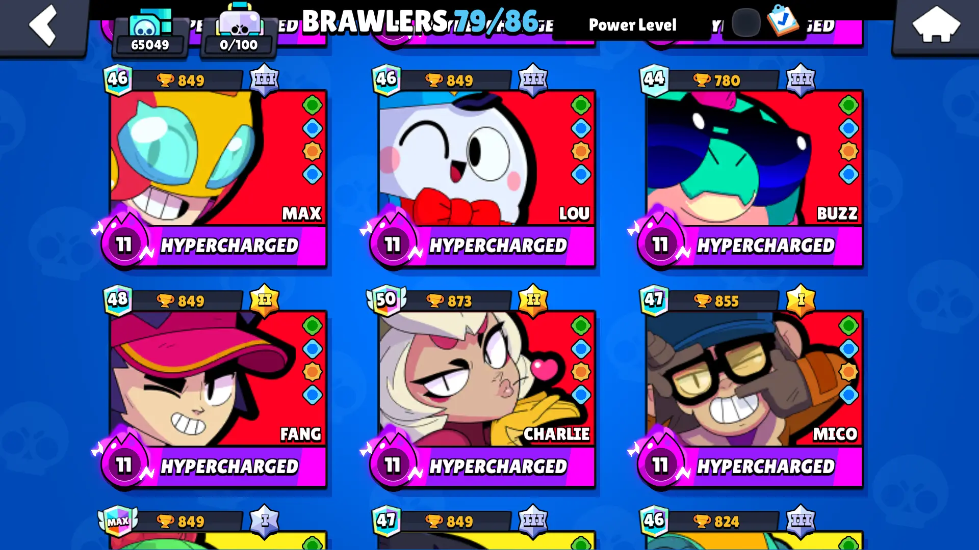 🔥 Saturnian Fame II 🏆 Masters banner 🏆 65000 Trophies 🔥 80/85 Brawlers 🔥 El Primo main!! ⭐ All El primo Skins ⭐ 52 MAXED Brawlers ⭐ XP 247 ⭐ 22 Hypercharged 🔒 Full Mail Access ⭐ 65K 🏆 Gunslinger Colt!!!
